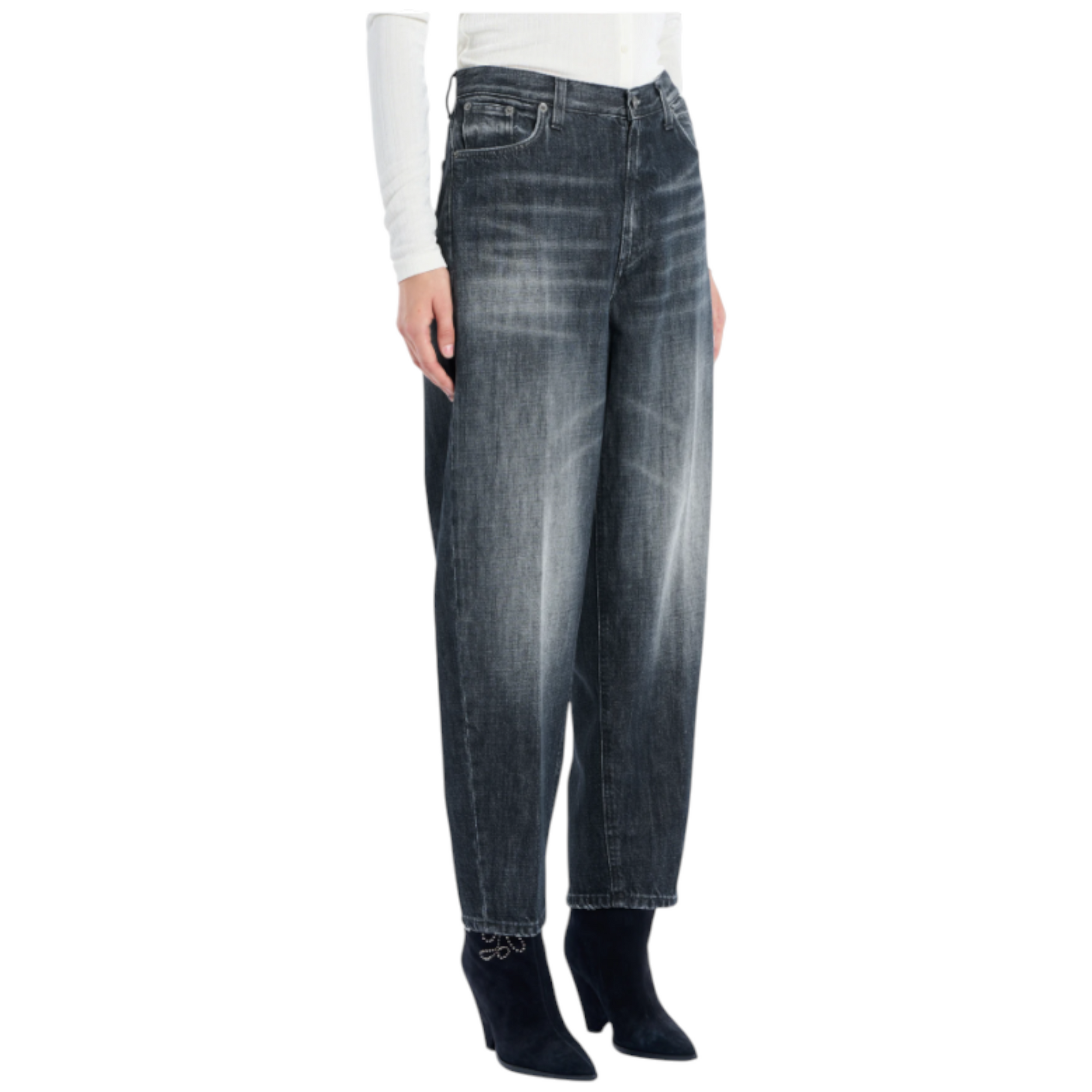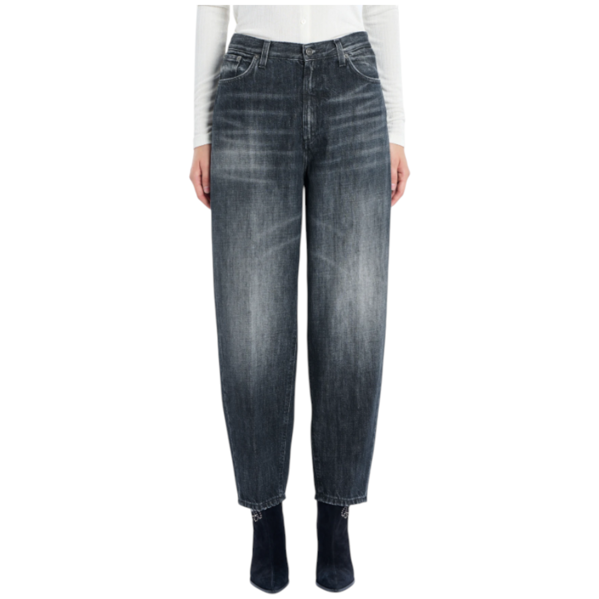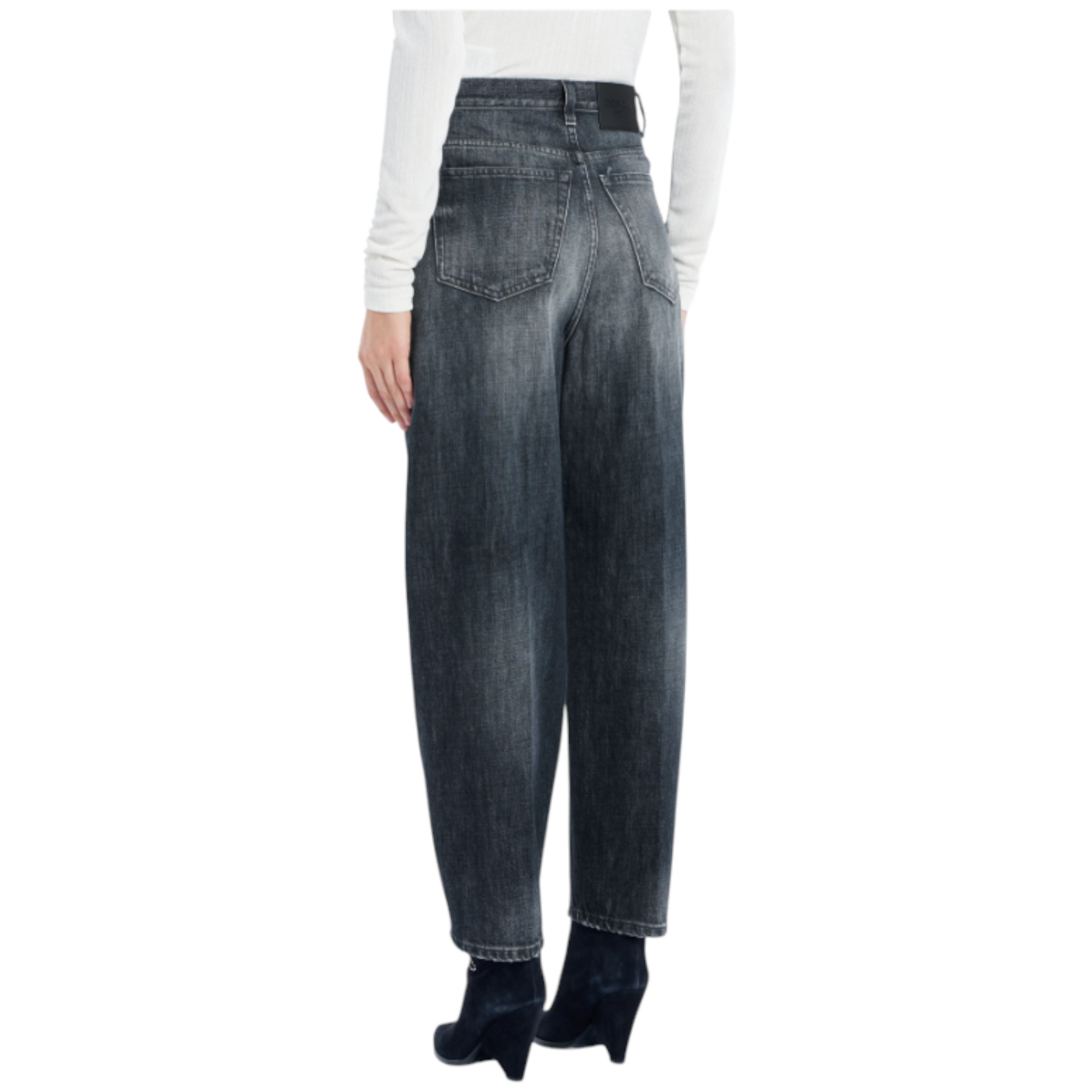 Bessie barrel loose-fit jeans fra Dondup med høj talje og klassisk five-pocket-design. Fremstillet i blågrå 12 ¾ oz. recycled rigid denim med mørk, ren vintage-vask. Et tidløst denimlook med Dondup-logo og italiensk håndværk.