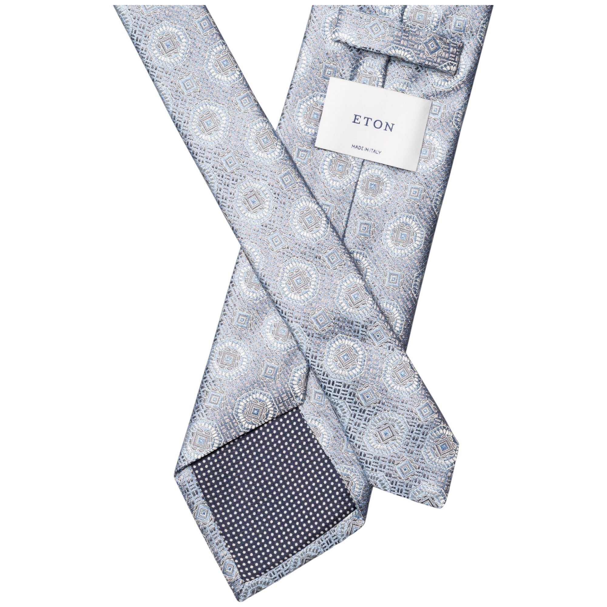Tilføj et elegant og tidløst touch til dit formelle look med dette Eton silkeslips i lyseblå. Slipset er vævet i et raffineret medallion-mønster, der giver dybde og eksklusiv karakter – perfekt til både forretningsbrug og festlige anledninger.
