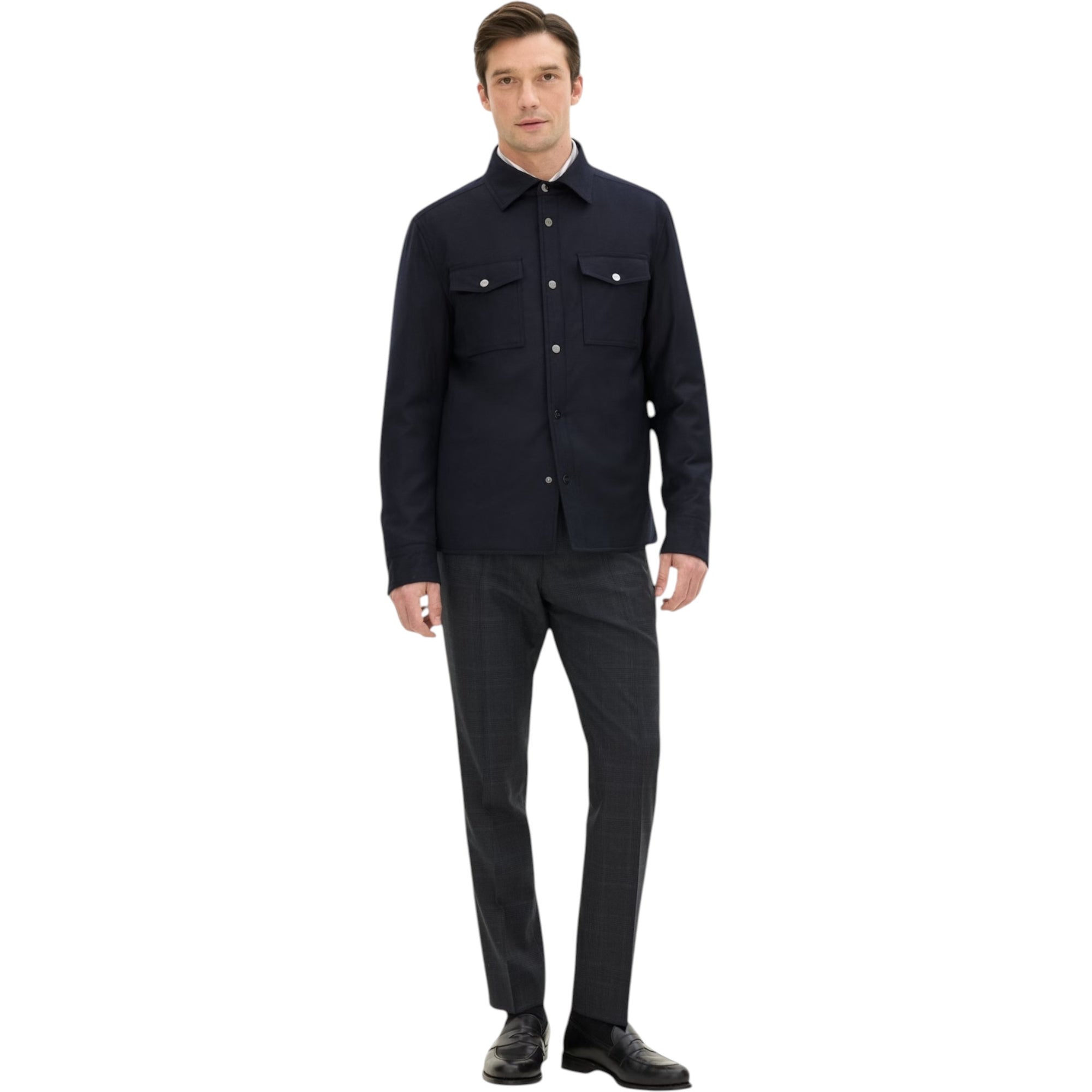 Opdag den perfekte balance mellem funktion, varme og raffineret stil med Padded Regular Fit Overshirt i navy. Denne polstrede overshirt i flannel-look er lavet i en premium uldblanding og designet med fokus på komfort og fleksibilitet – ideel til sæsonens skiftende vejr.