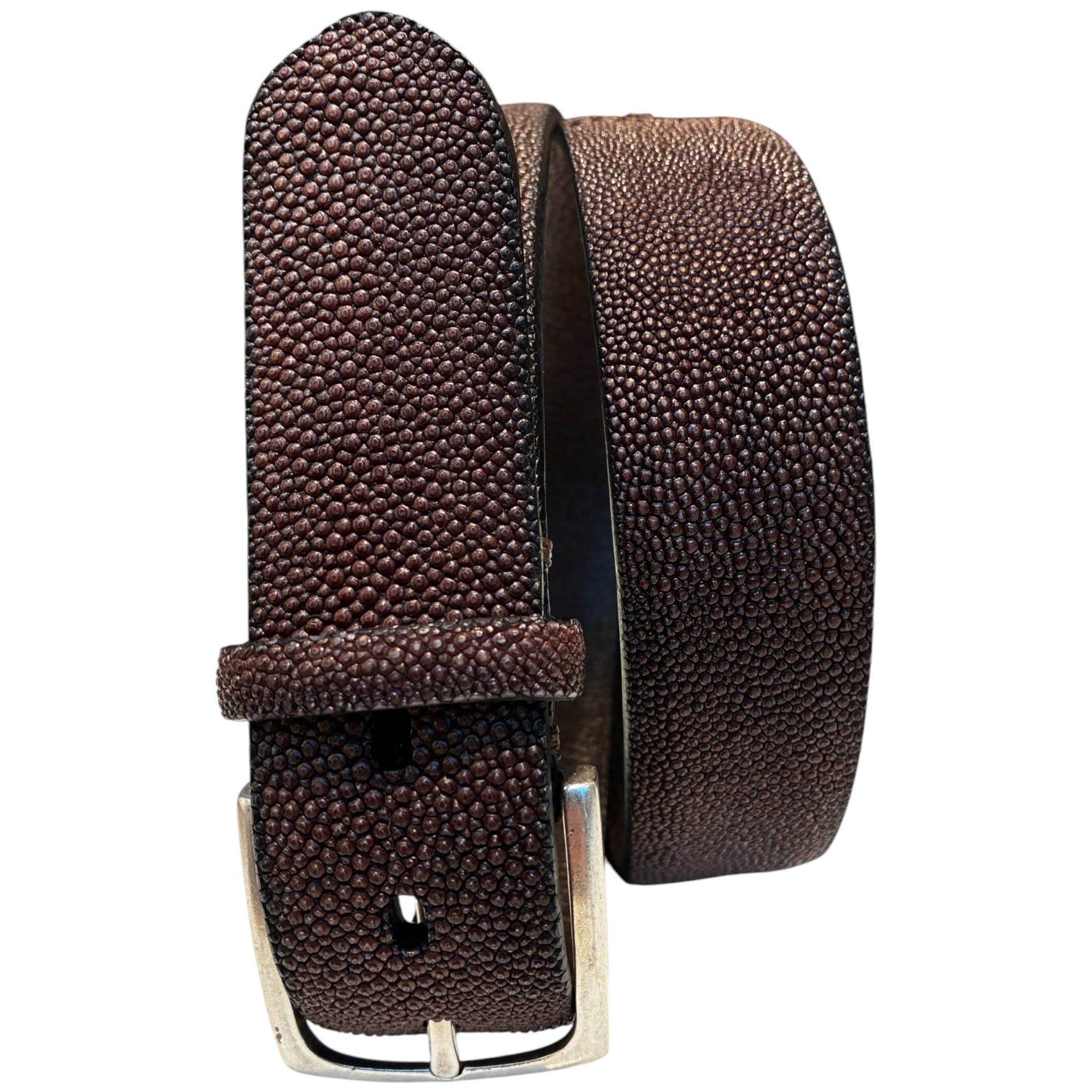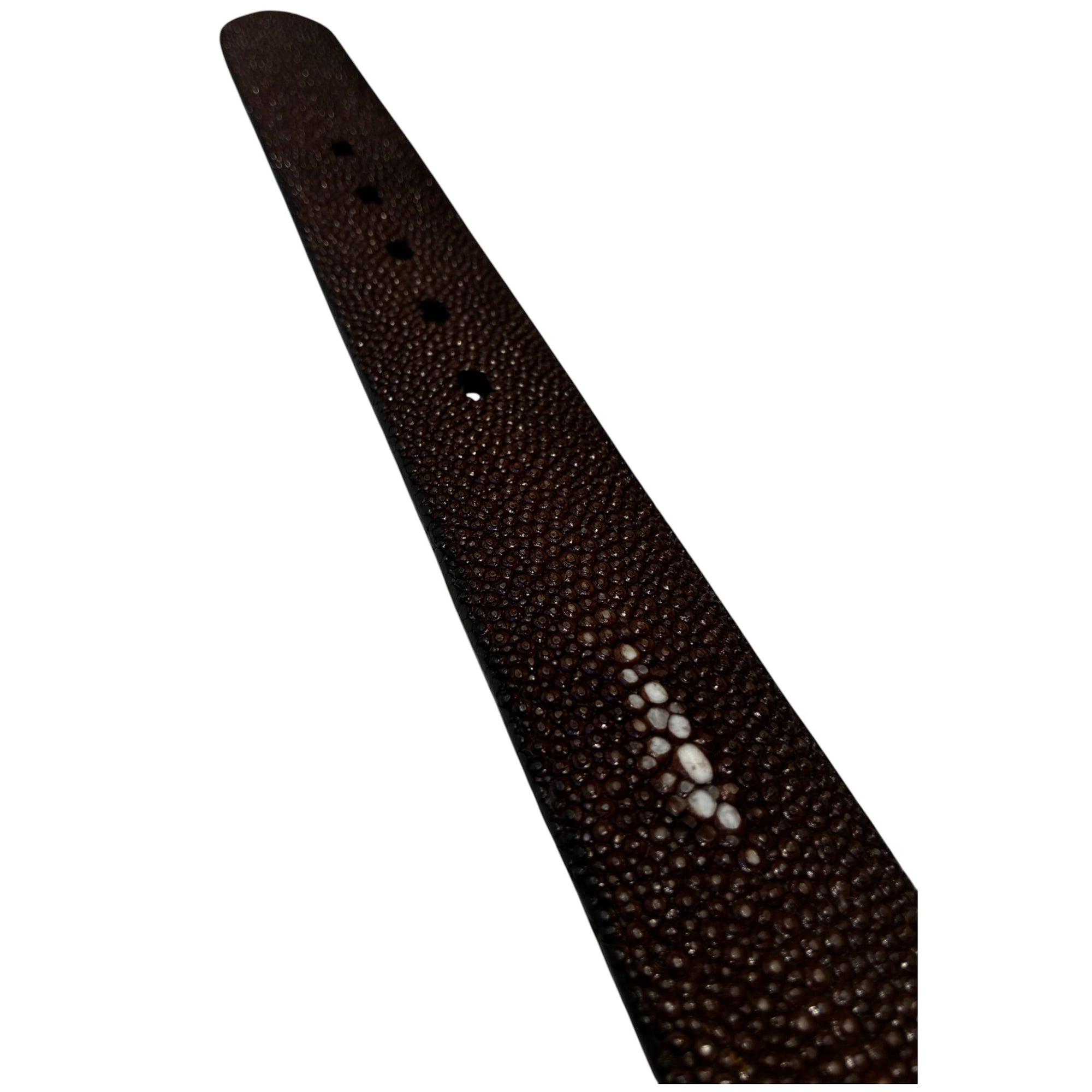 Oplev ægte luksus med dette eksklusive Paolo Vitale rokkeskind bælte, håndlavet i Italien af certificeret ægte rokkeskind. Rokkeskind er kendt for sin unikke, perlemorslignende struktur og det karakteristiske spil i overfladen, som giver bæltet et markant og eksklusivt udtryk.
