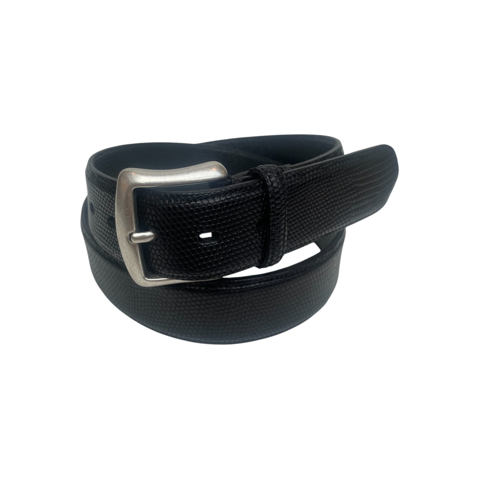 Løft dit outfit med dette eksklusive Paolo Vitale firbensbælte i sort, fremstillet af certificeret ægte firbensskind. Det eksotiske skind har en naturlig og markant struktur, som tilfører bæltet et unikt, raffineret og luksuriøst udtryk.