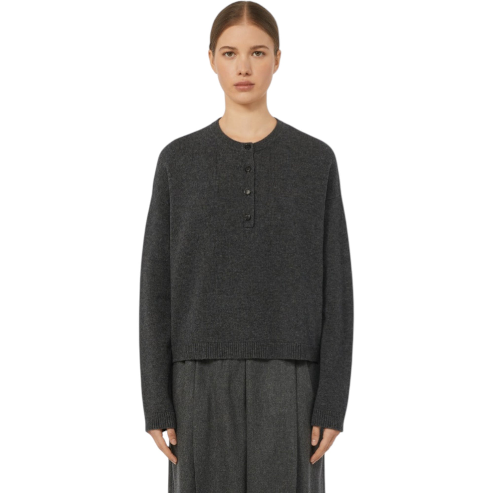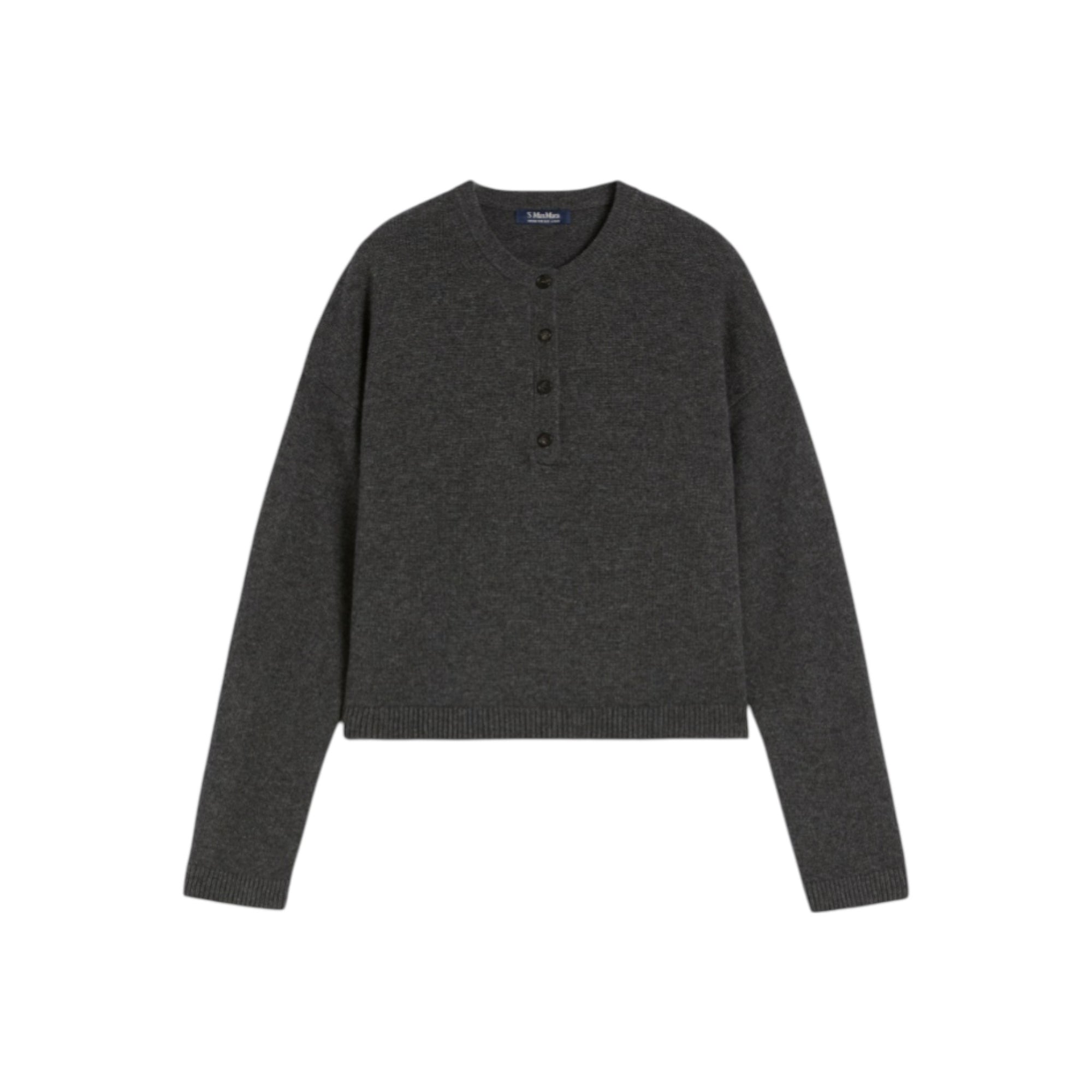 Let cropped uld- og cashmereblanding med boxy pasform og let vidde over brystet. Rund hals med knaplukning i horn, lange ærmer med lav skuldersøm og ribbede kanter.