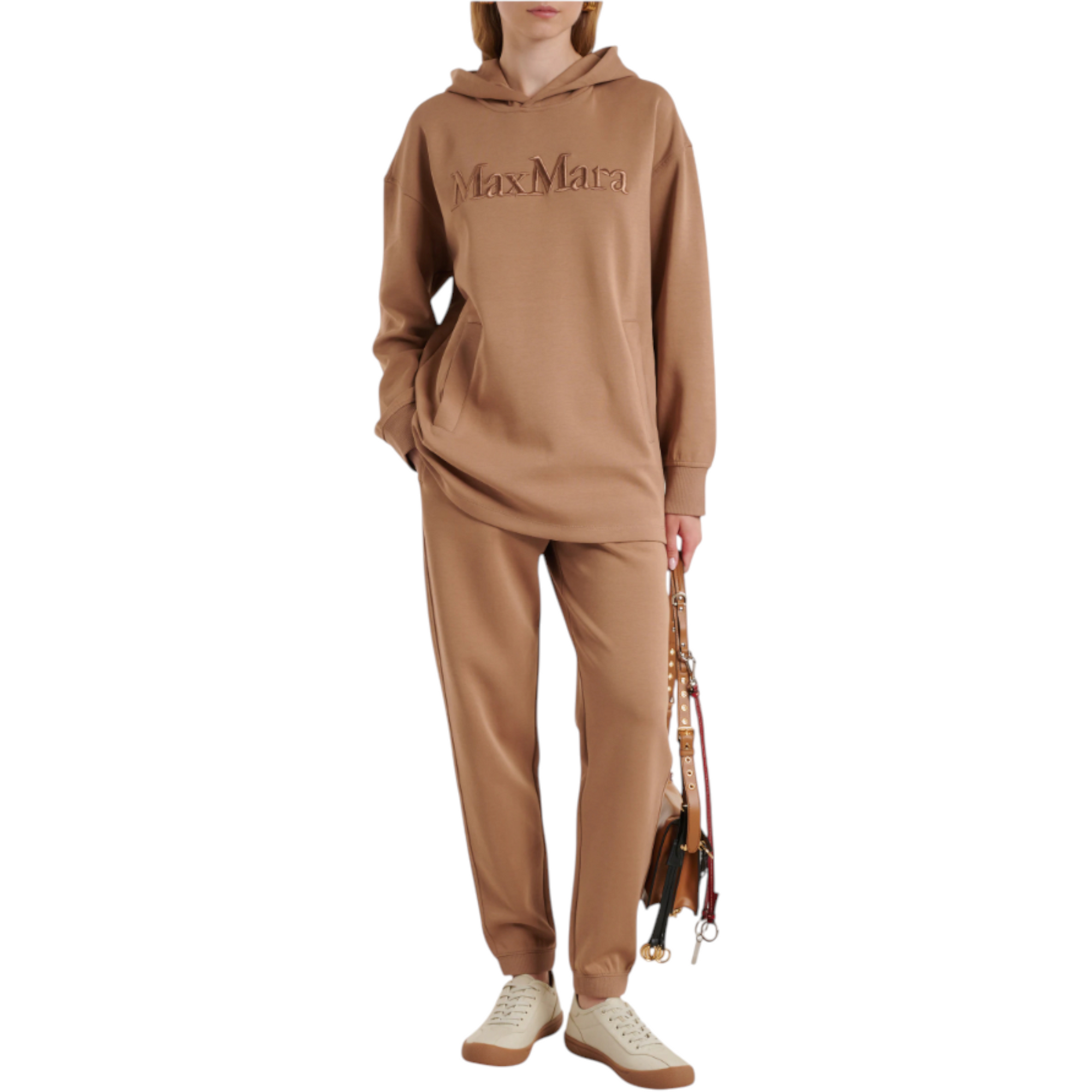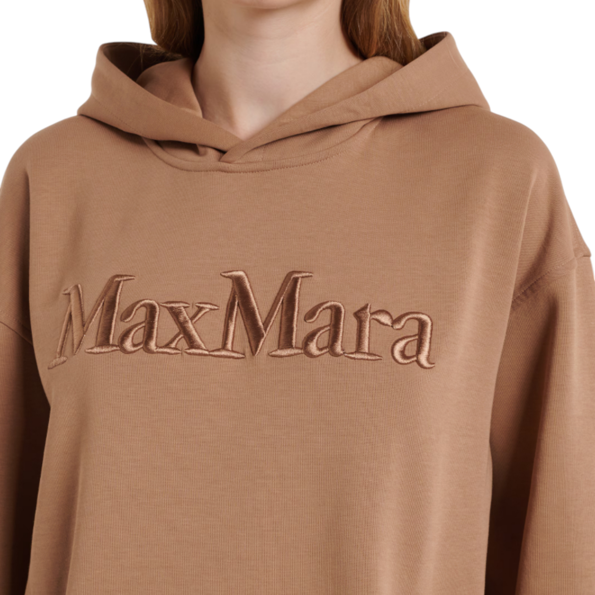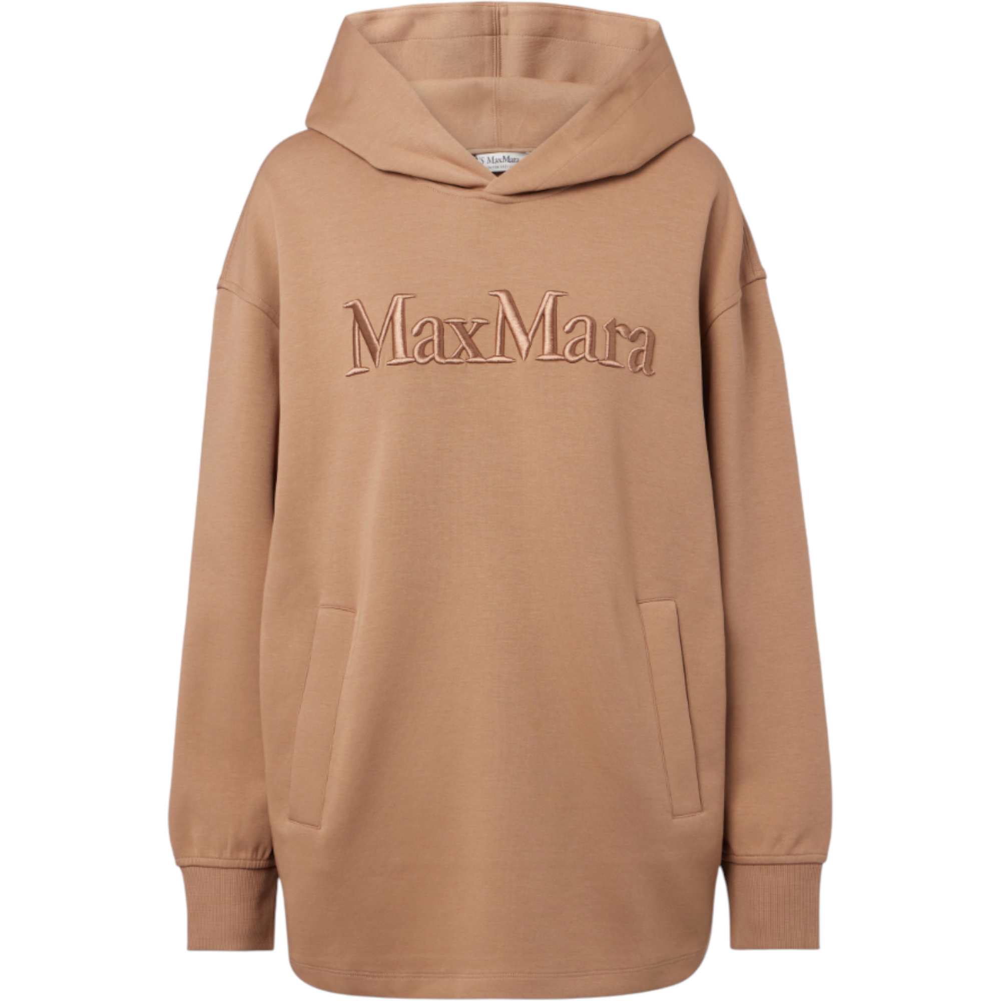 Hættebluse i blød bomuldsblanding med stort tone-i-tone broderet logo på fronten. Kængurulomme, hætte og sænkede skuldre giver et afslappet look.-