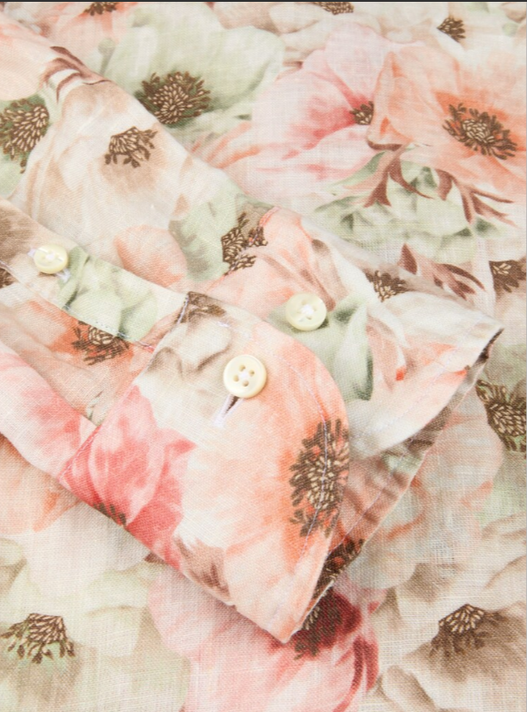 Blomstret skjorte i 100% hør med feminin pasform. Designet med klassisk krave, enkel manchet og eksklusive perlemorsknapper, som giver et let og elegant udtryk. Ideel til både hverdag og sommerlige anledninger.