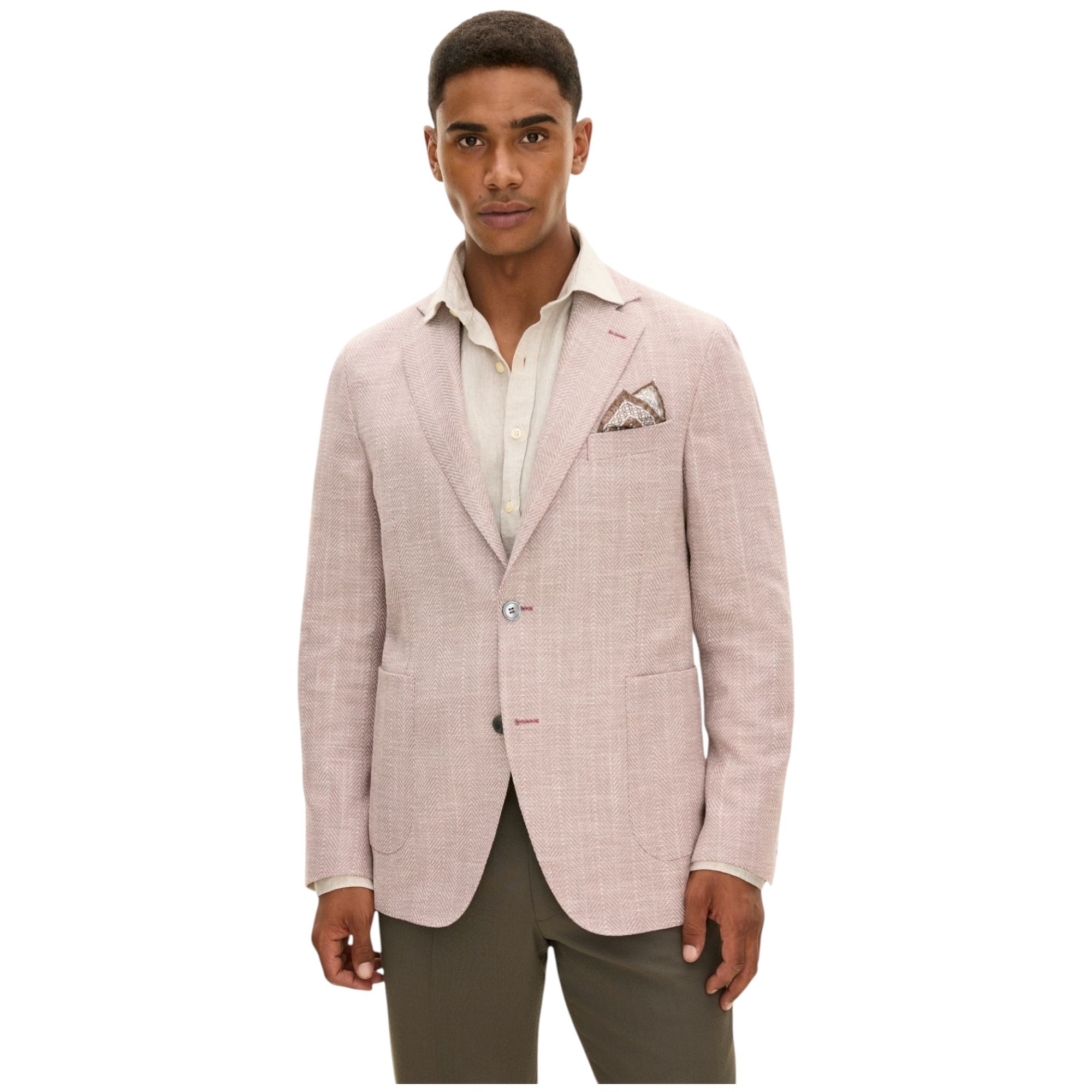 Tilføj et sofistikeret og moderne twist til garderoben med Ferry Regular Fit Herringbone Blazer i rose. Den elegante rosafarve kombineret med det klassiske sildebensmønster skaber et eksklusivt og stilbevidst udtryk, der skiller sig ud på den rette måde.