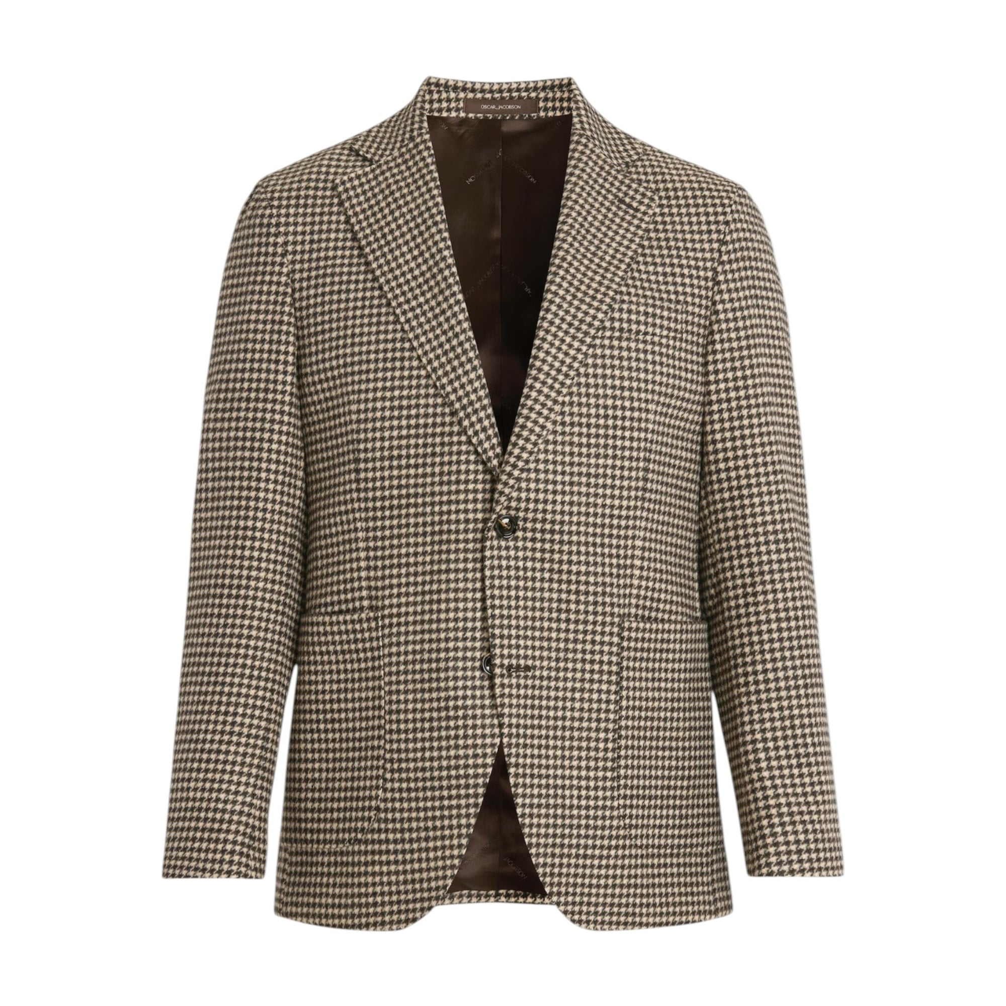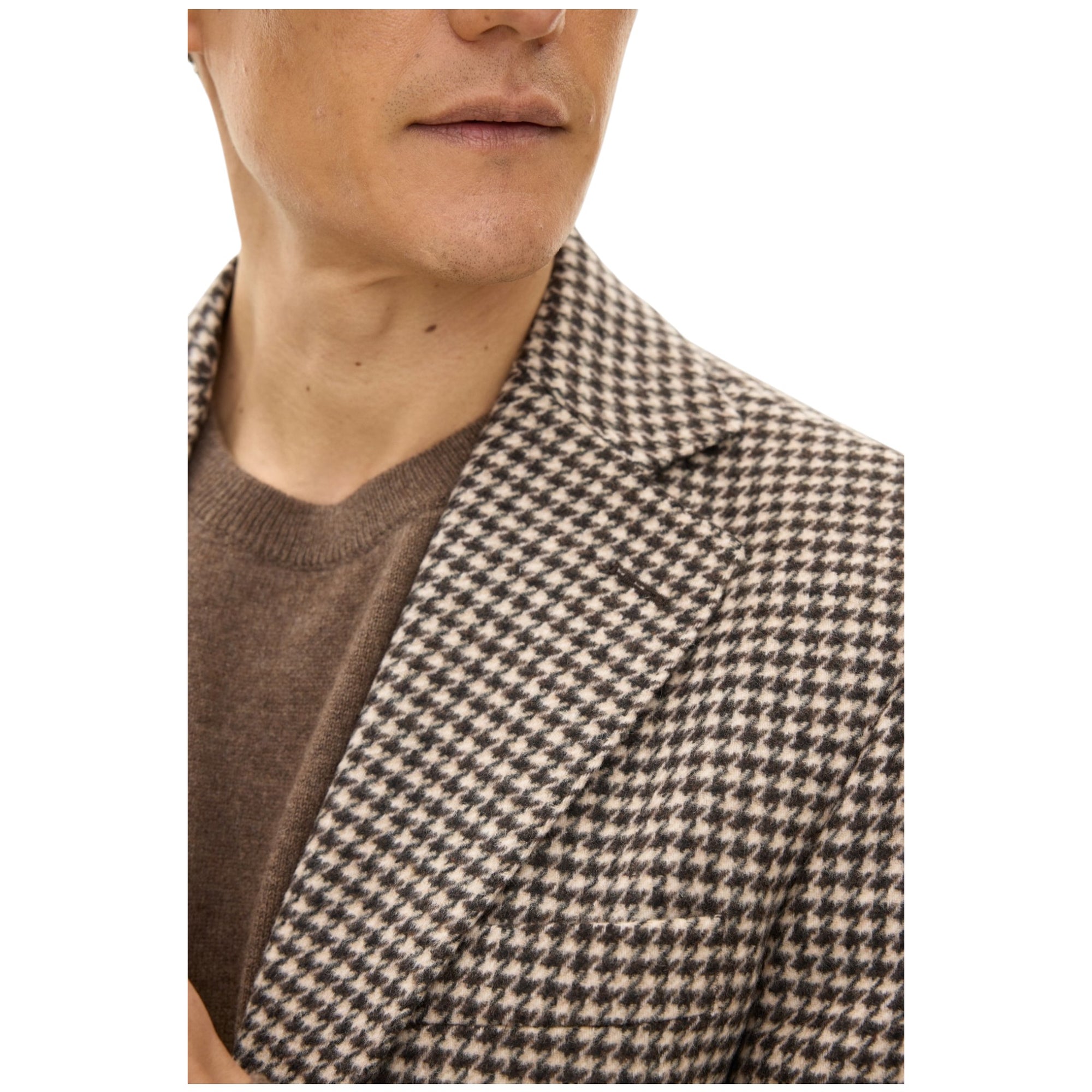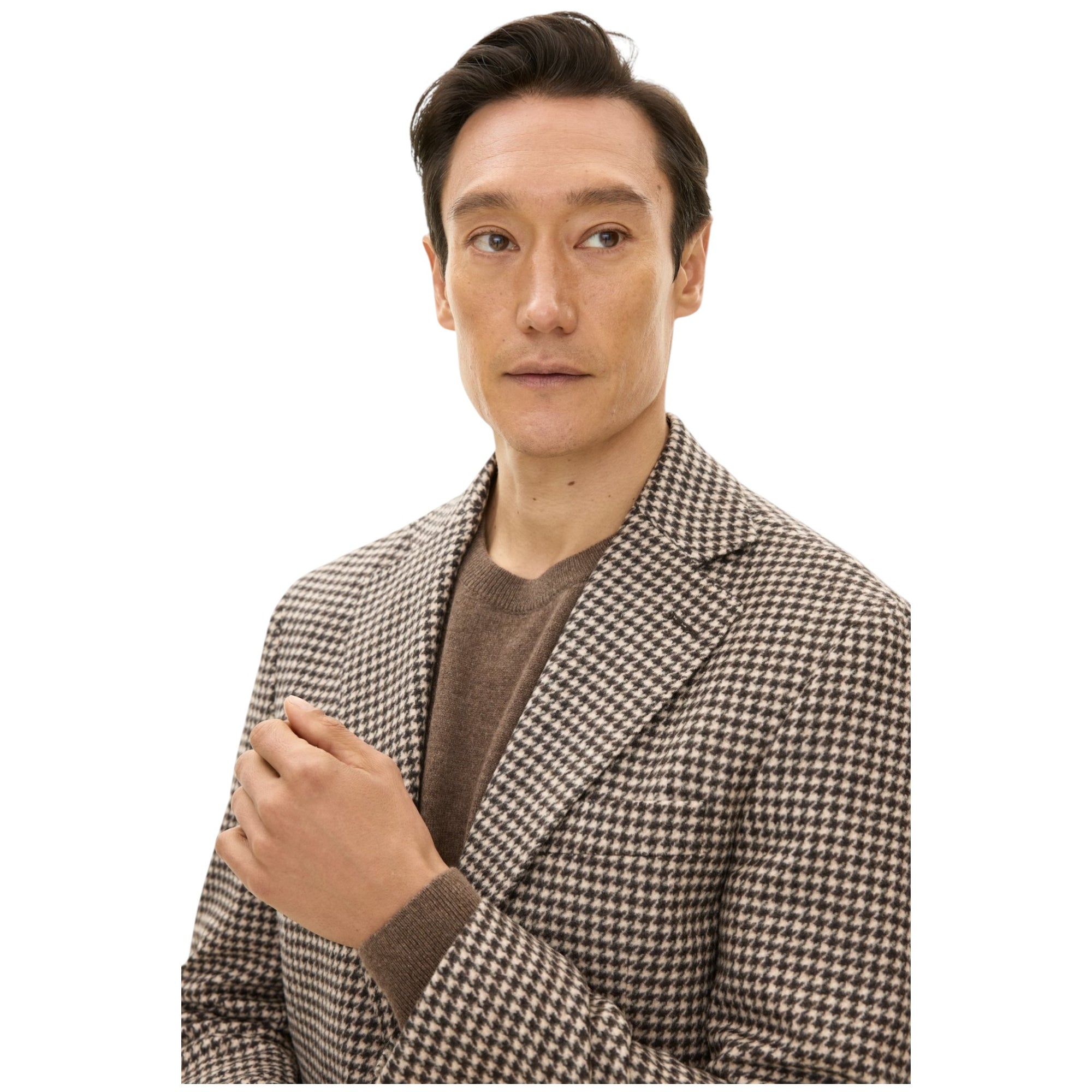 Denne houndstooth blazer i uld er et sikkert valg for den stilbevidste mand, der ønsker en klassisk blazer i brun og beige, som nemt kan styles med både skjorte og strik – perfekt til et sofistikeret hverdagslook.