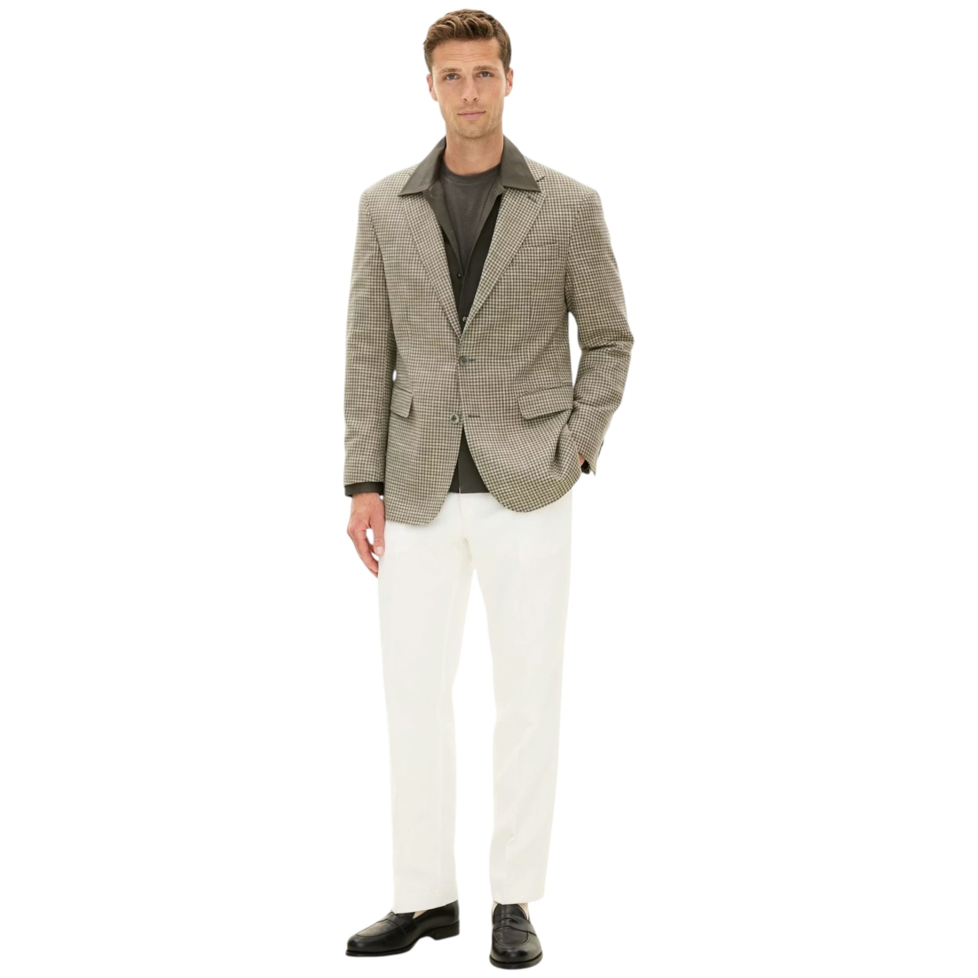 Robert Regular Fit Houndstooth Blazer – Grøn er det oplagte valg til dig, der søger en grøn blazer i uld med klassisk pepitamønster, høj komfort og italiensk stofkvalitet. Style den med matchende habitbukser for et skarpt jakkesæt-look eller kombinér den med chinos og skjorte for et moderne business casual outfit.