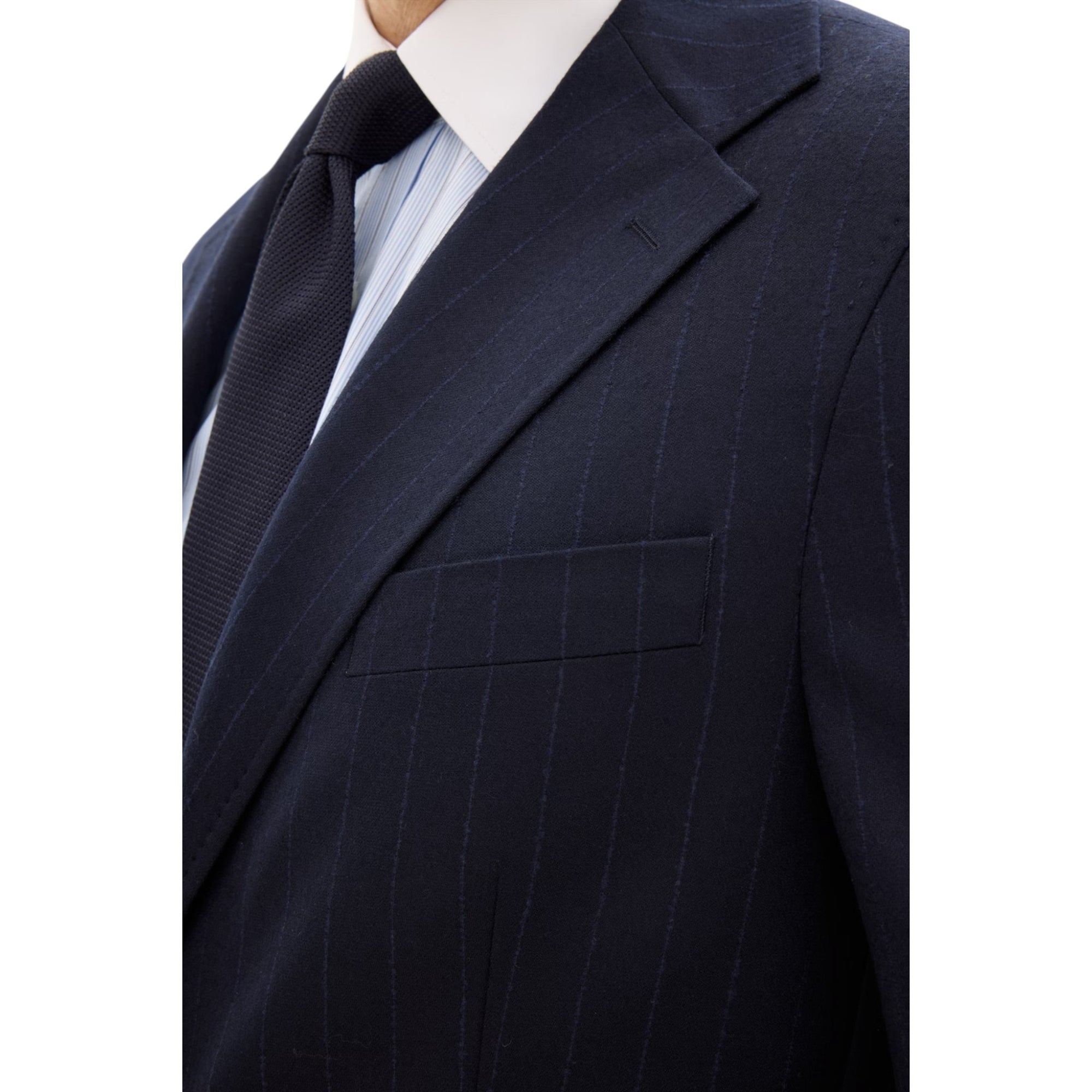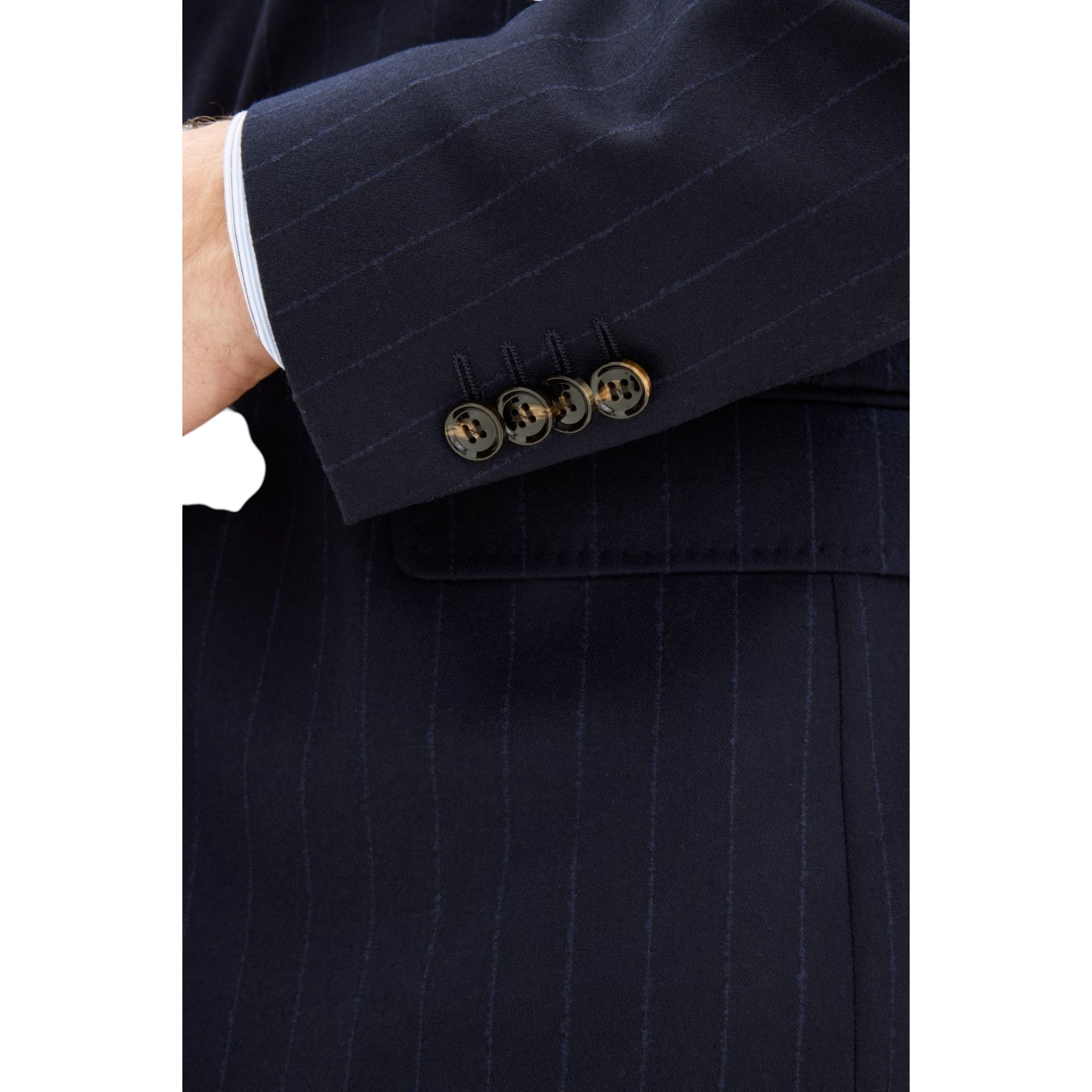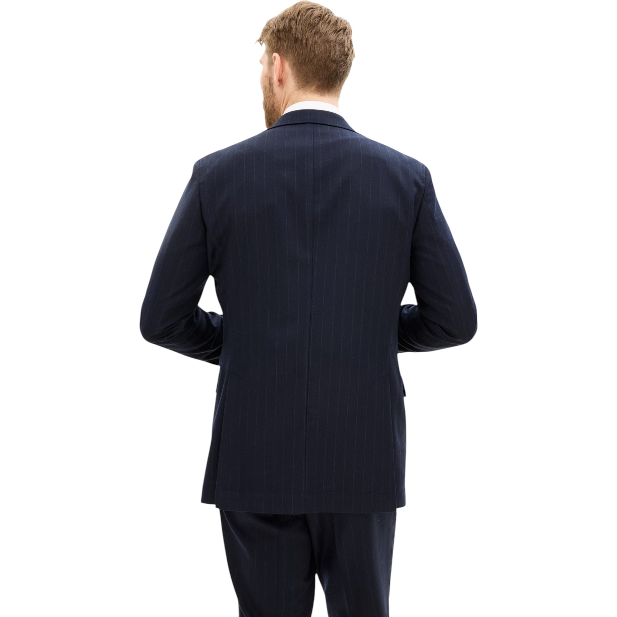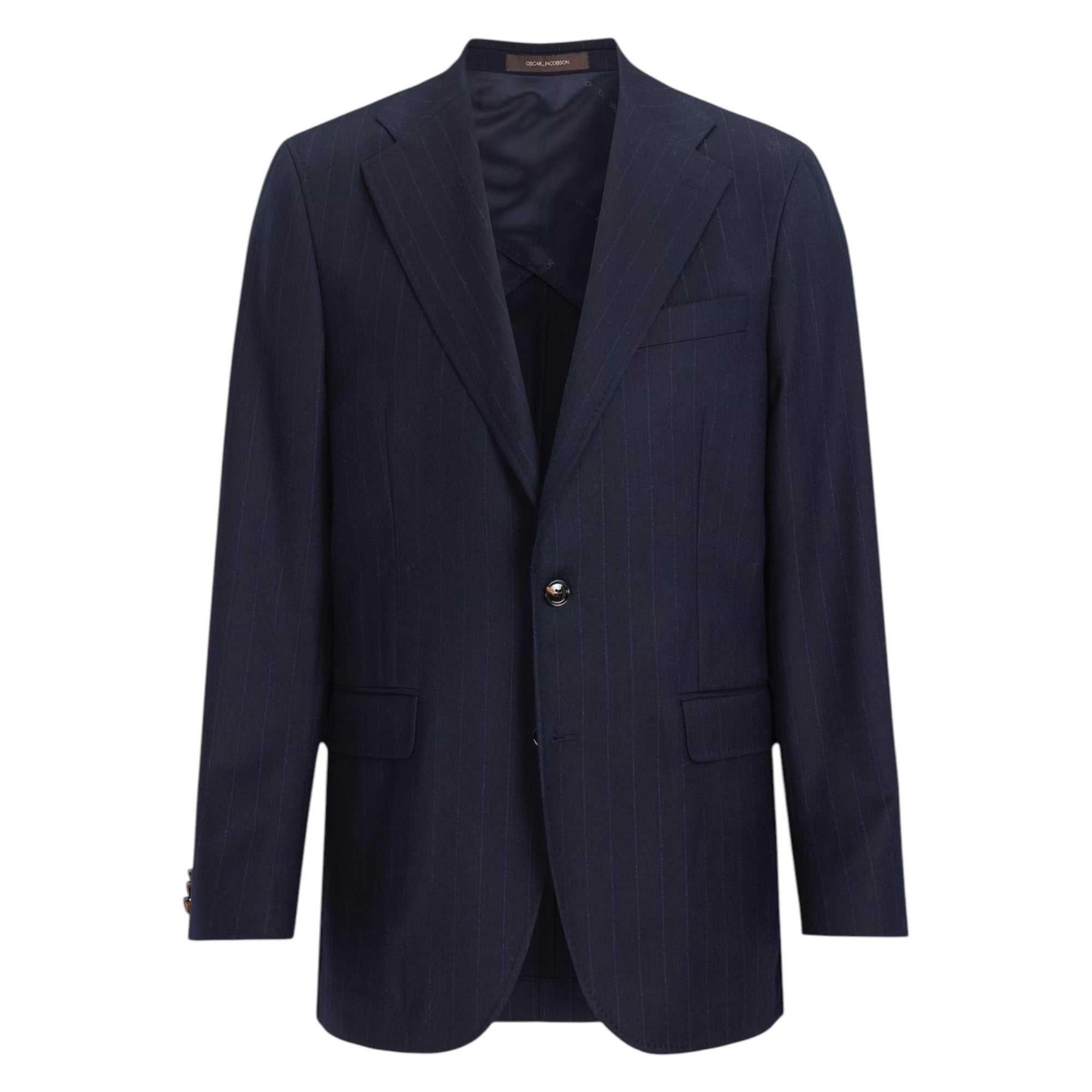 Blazeren kombinerer klassisk herresnit med moderne tekstiler – ideel til både business og smart casual. Den stribede flannel i mørkeblå tilføjer dybde til outfittet uden at være for iøjnefaldende, mens den regular fit-pasform og ukonstruerede skulder giver et komfortabelt, men stadig skarpt udtryk.