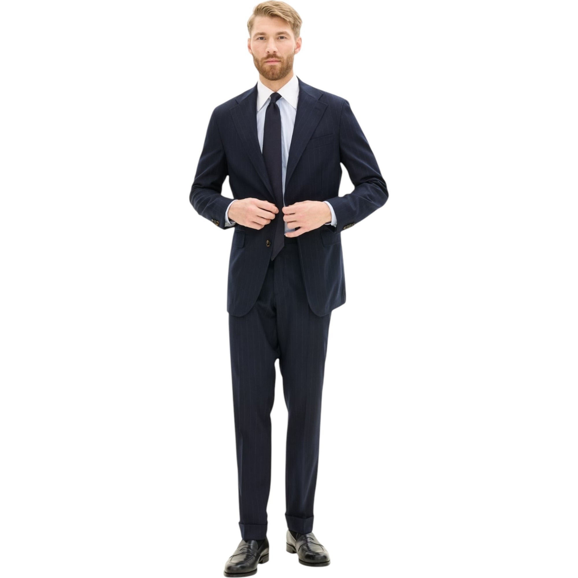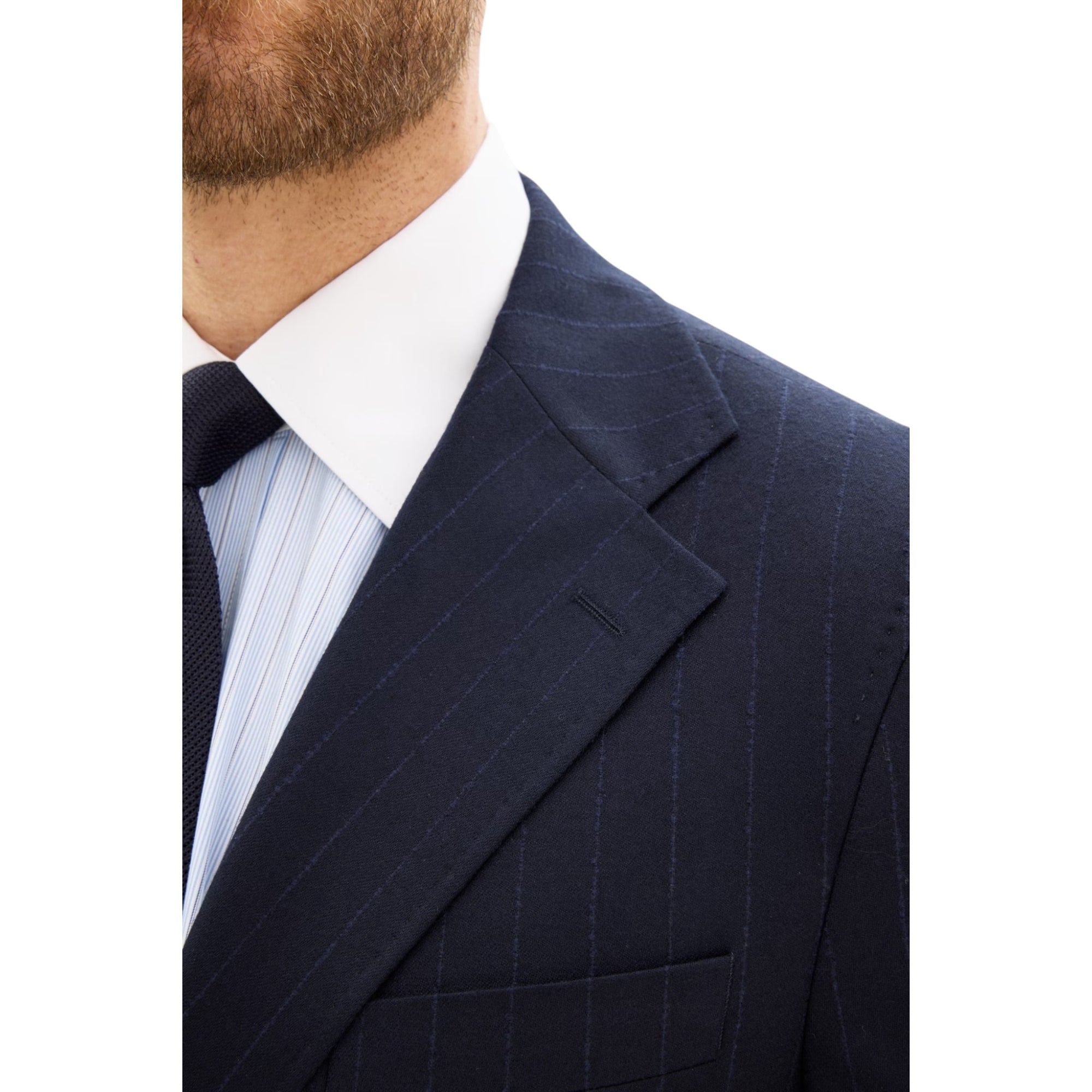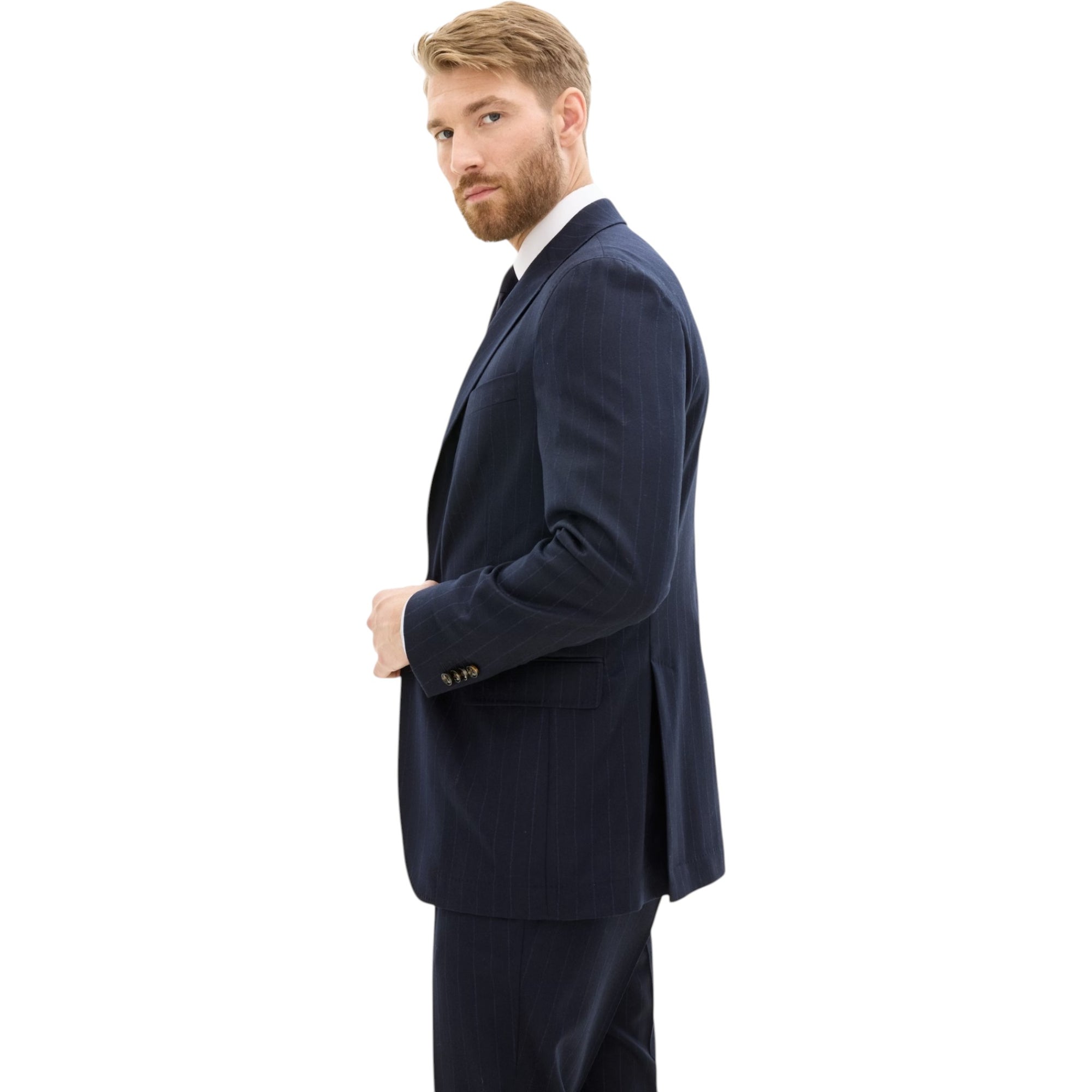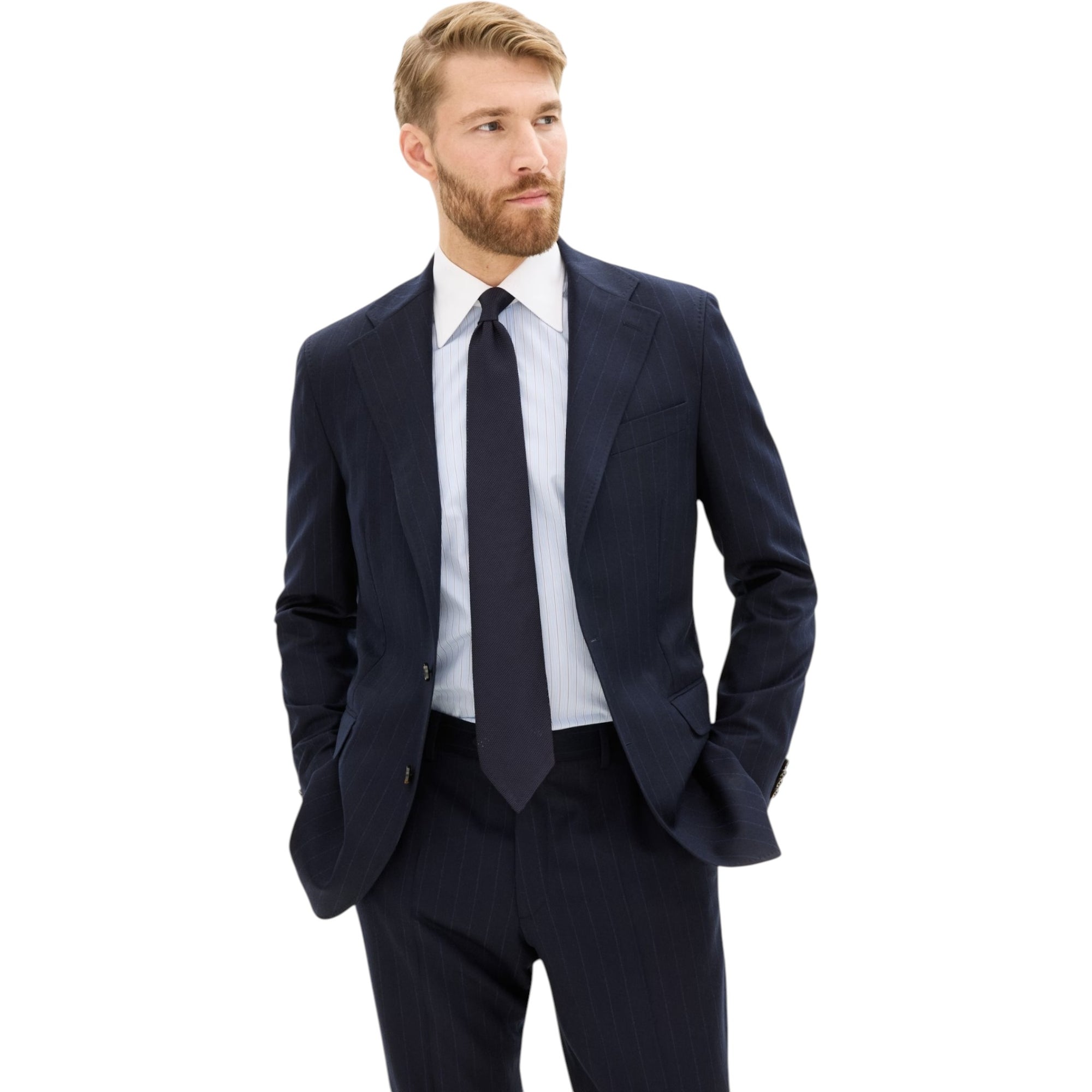 Blazeren kombinerer klassisk herresnit med moderne tekstiler – ideel til både business og smart casual. Den stribede flannel i mørkeblå tilføjer dybde til outfittet uden at være for iøjnefaldende, mens den regular fit-pasform og ukonstruerede skulder giver et komfortabelt, men stadig skarpt udtryk.