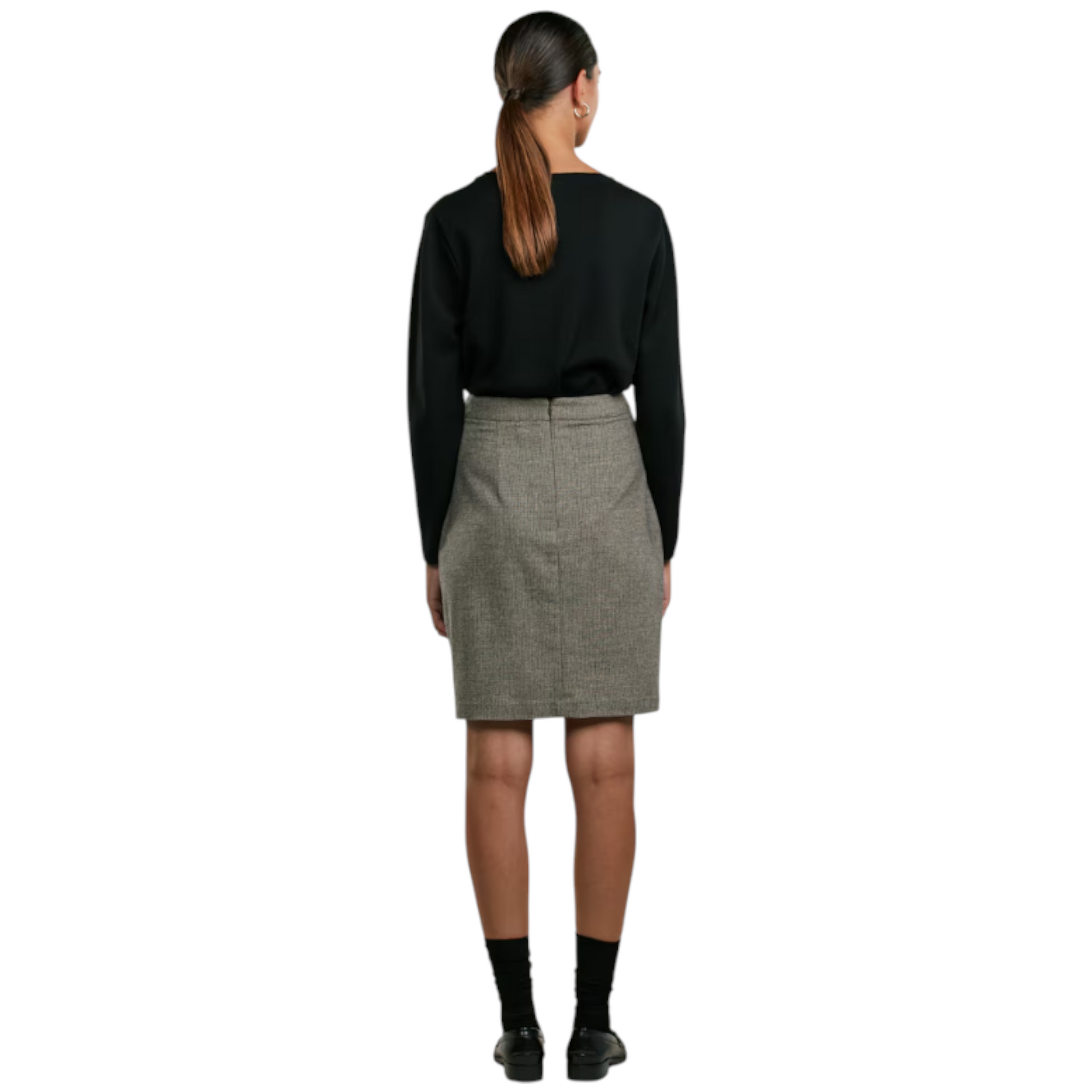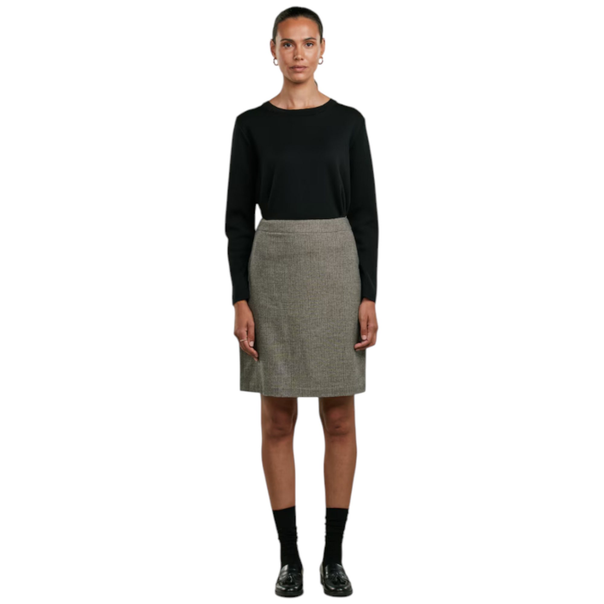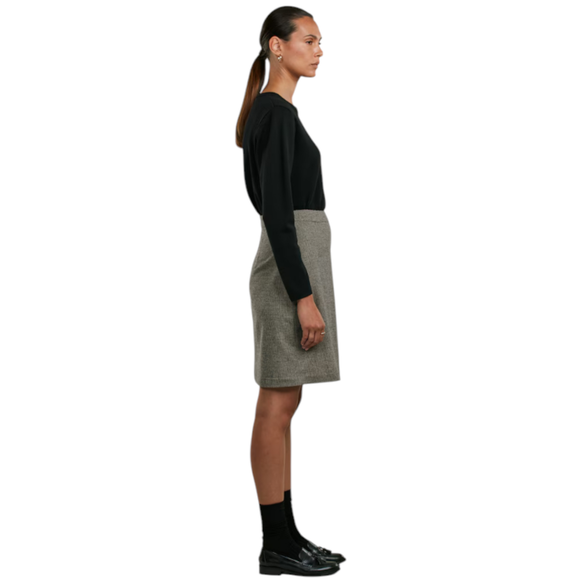 Kort, ternet nederdel i uld med lige pasform og lynlås bagpå.