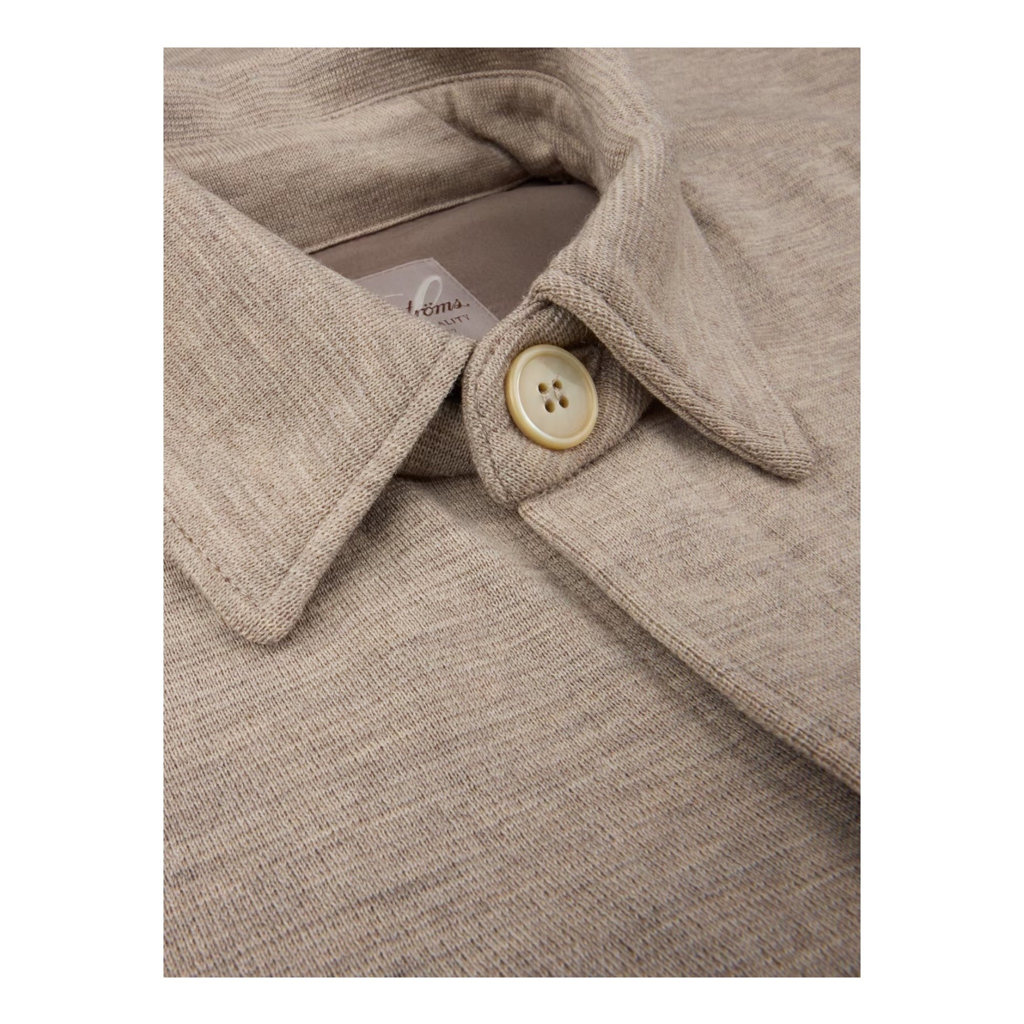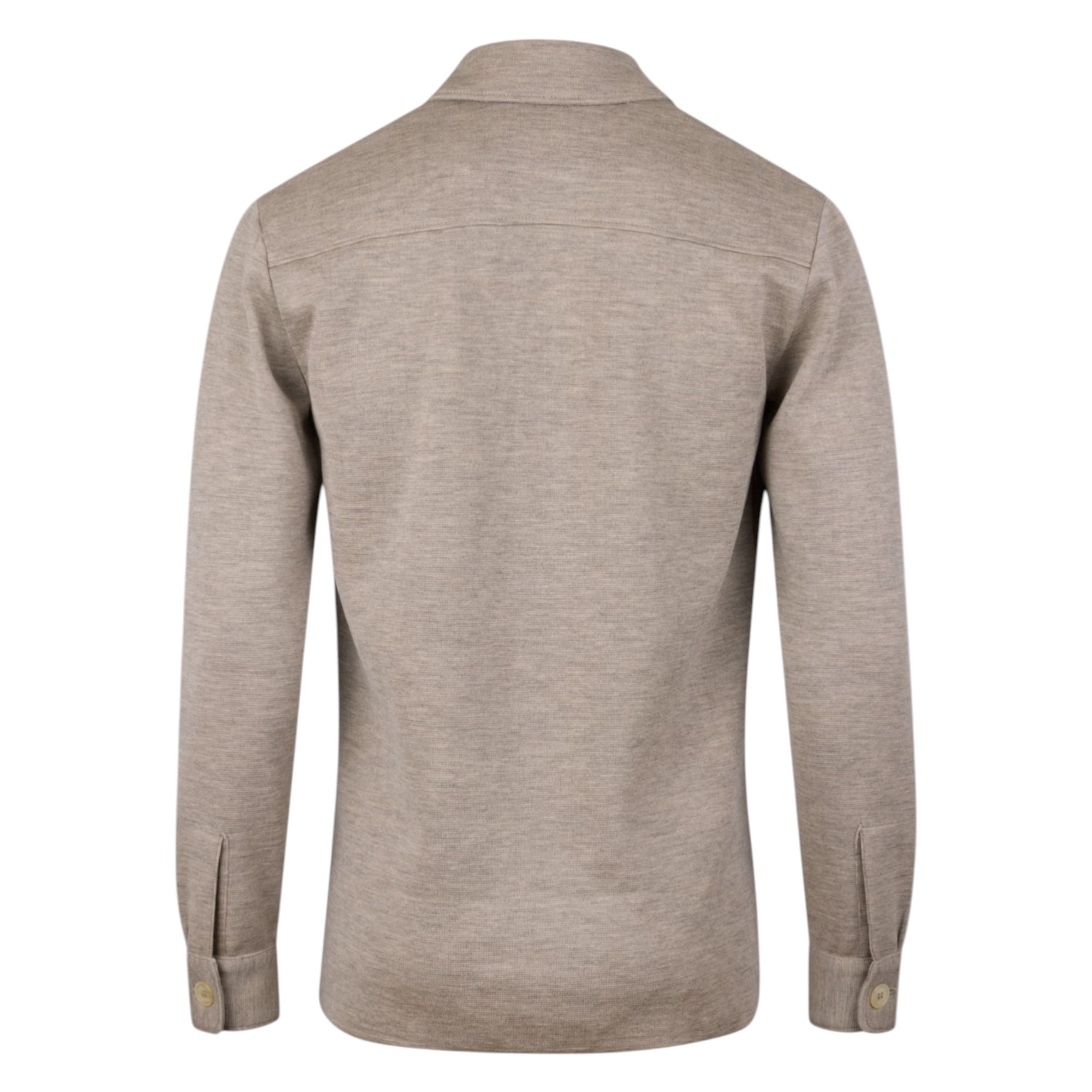 Denne strikkede skjortejakke i beige merinould er et sofistikeret valg til den moderne garderobe. Fremstillet i 100 % merinould, som giver høj komfort, naturlig varme og en let, luksuriøs fornemmelse.