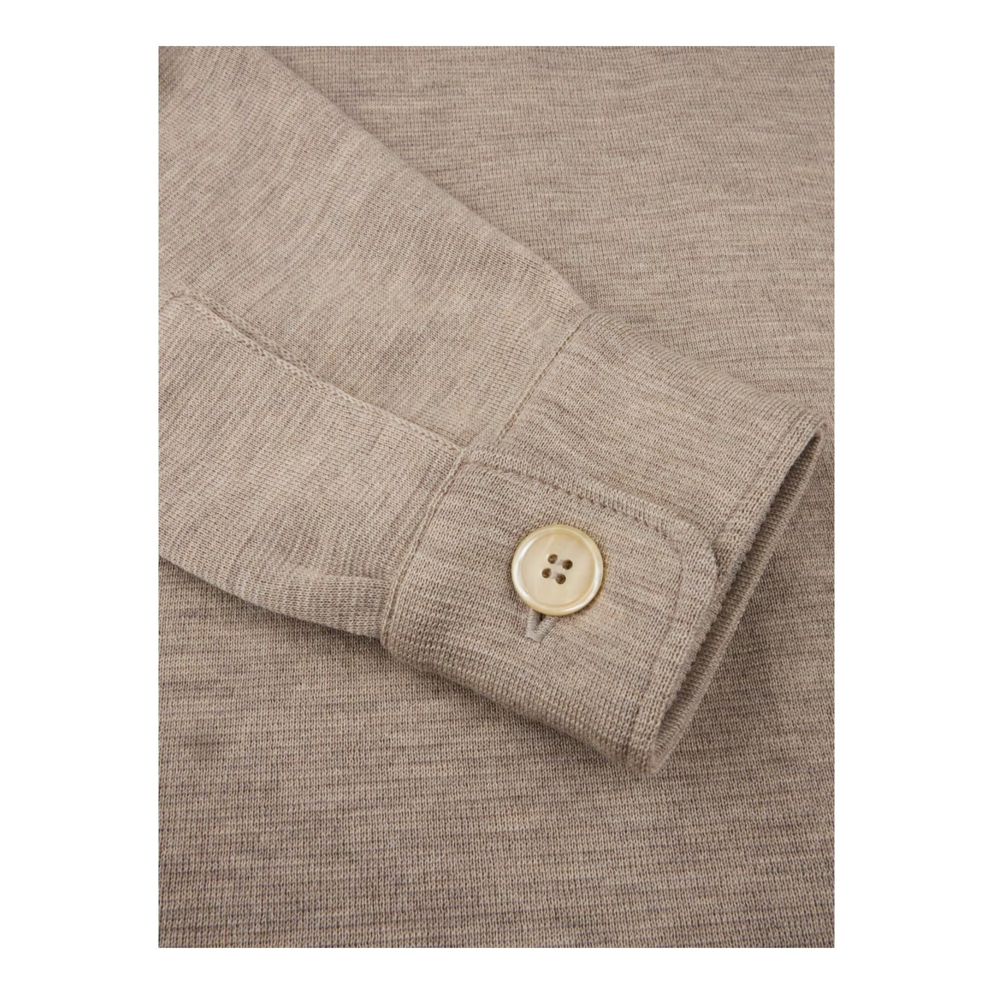 Denne beige skjortejakke i merinould er ideel til lag-på-lag styling og giver et elegant, afslappet udtryk året rundt.