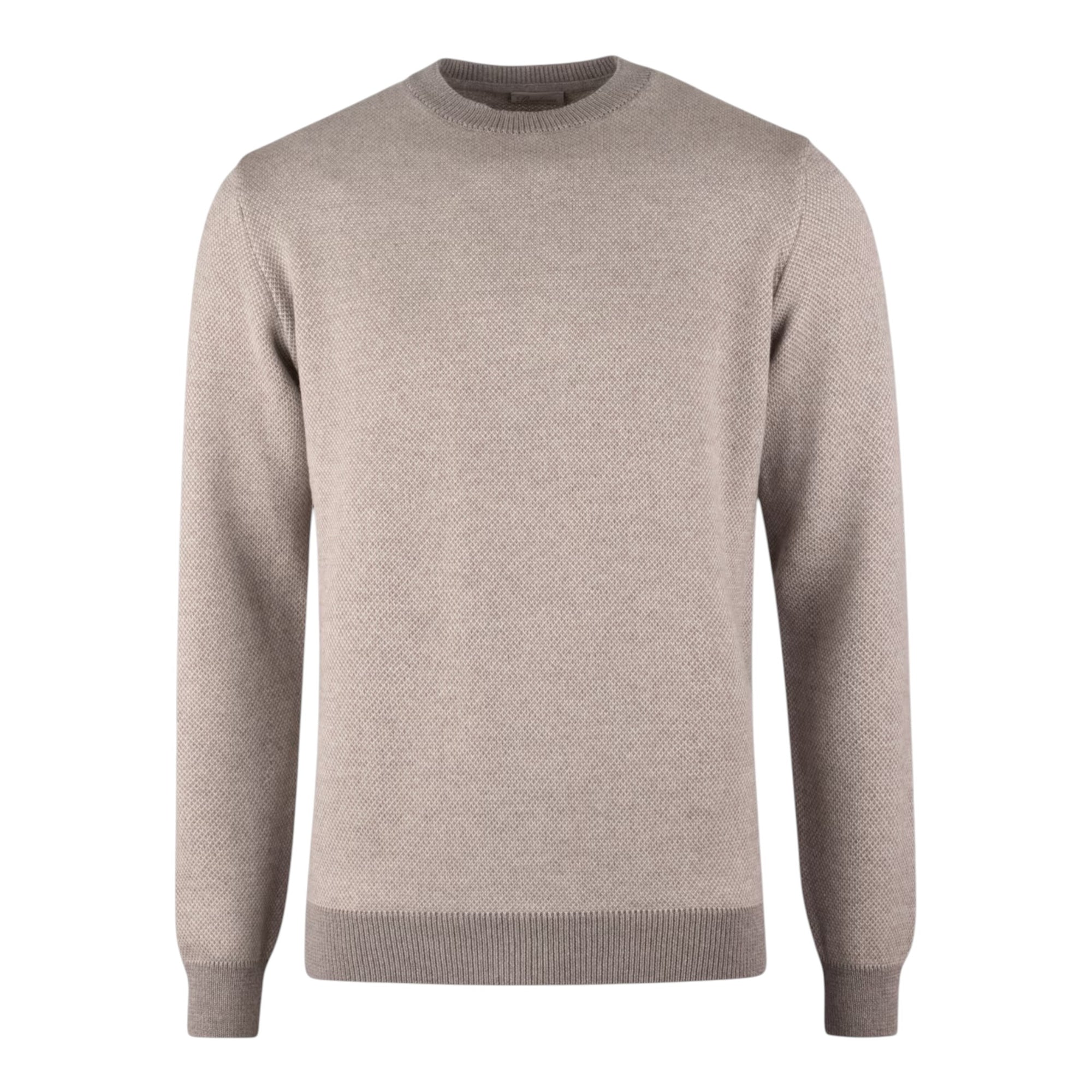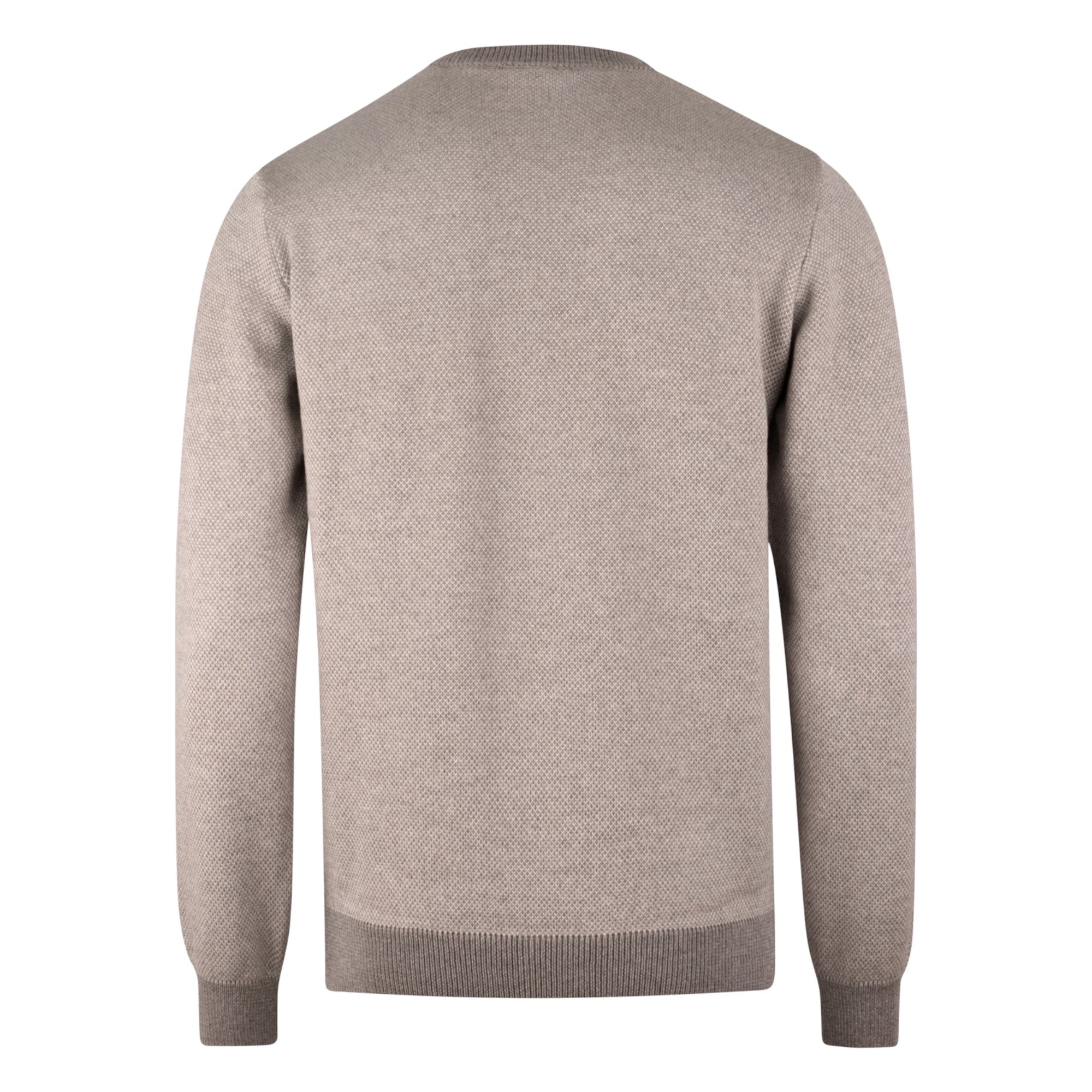 Denne lysebrune merinouldsweater er ideel til dig, der søger en luksuriøs, blød og stilren strik med smukke kontrastdetaljer og et eksklusivt strukturmønster.