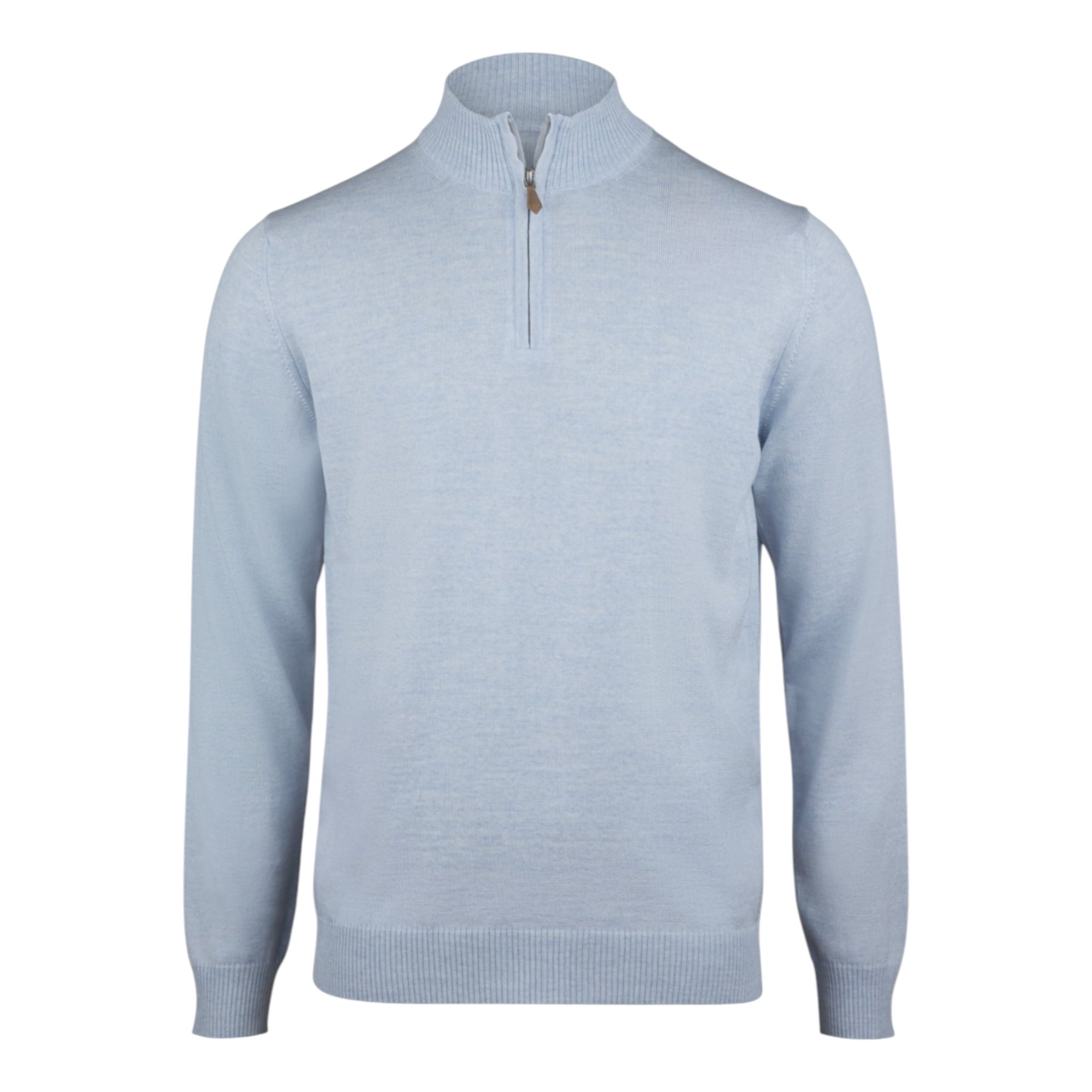 Stenströms Lyseblå Half Zip Sweater i Merinould
