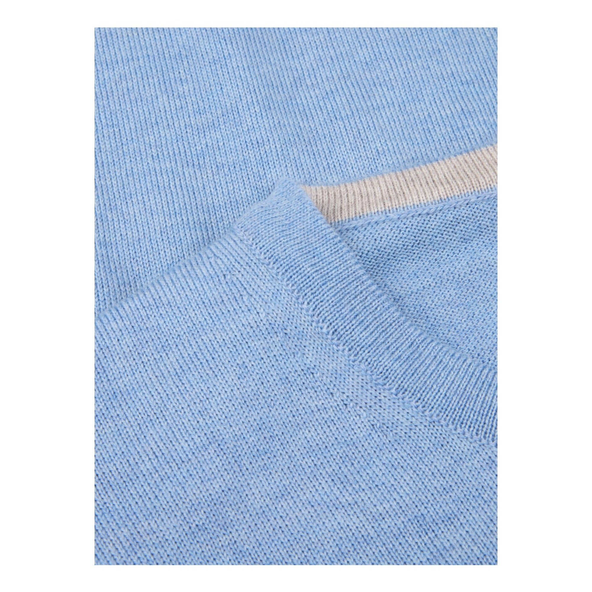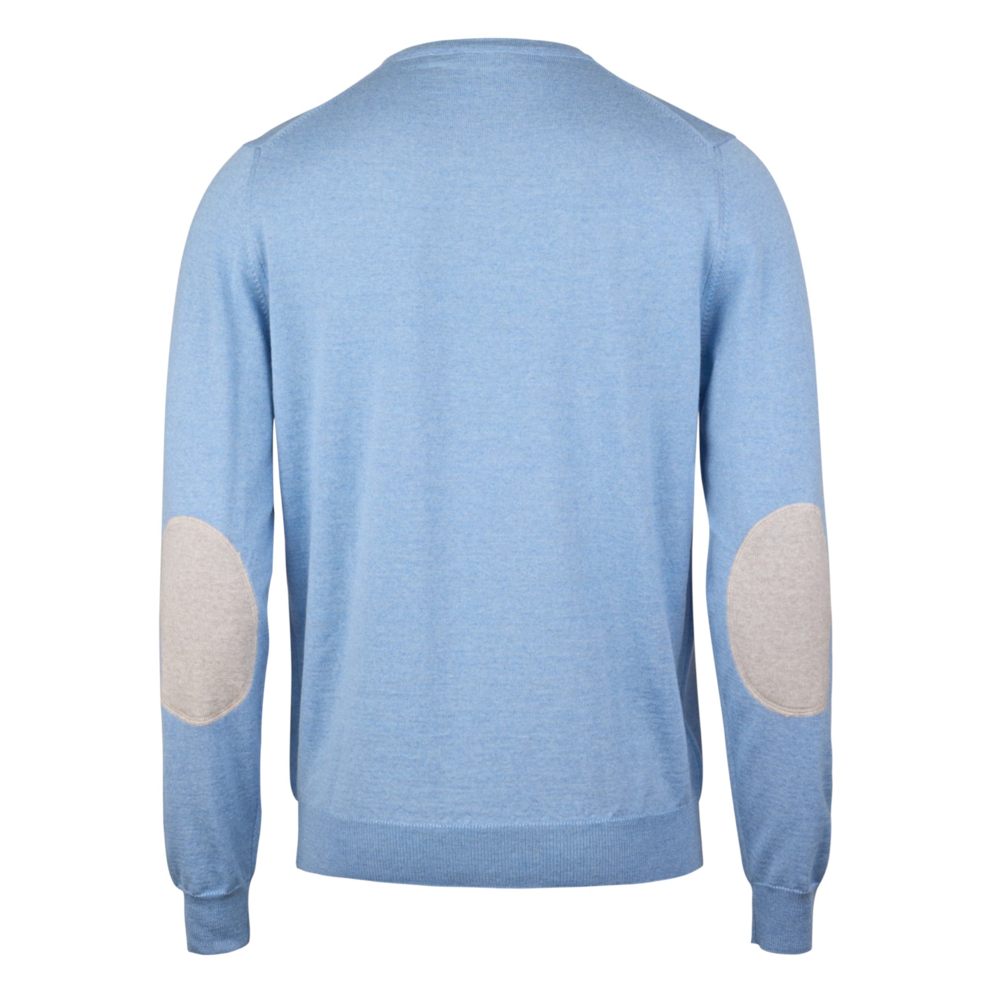 Lyseblå Sweater i Merinould med Rund Hals og Albuelapper