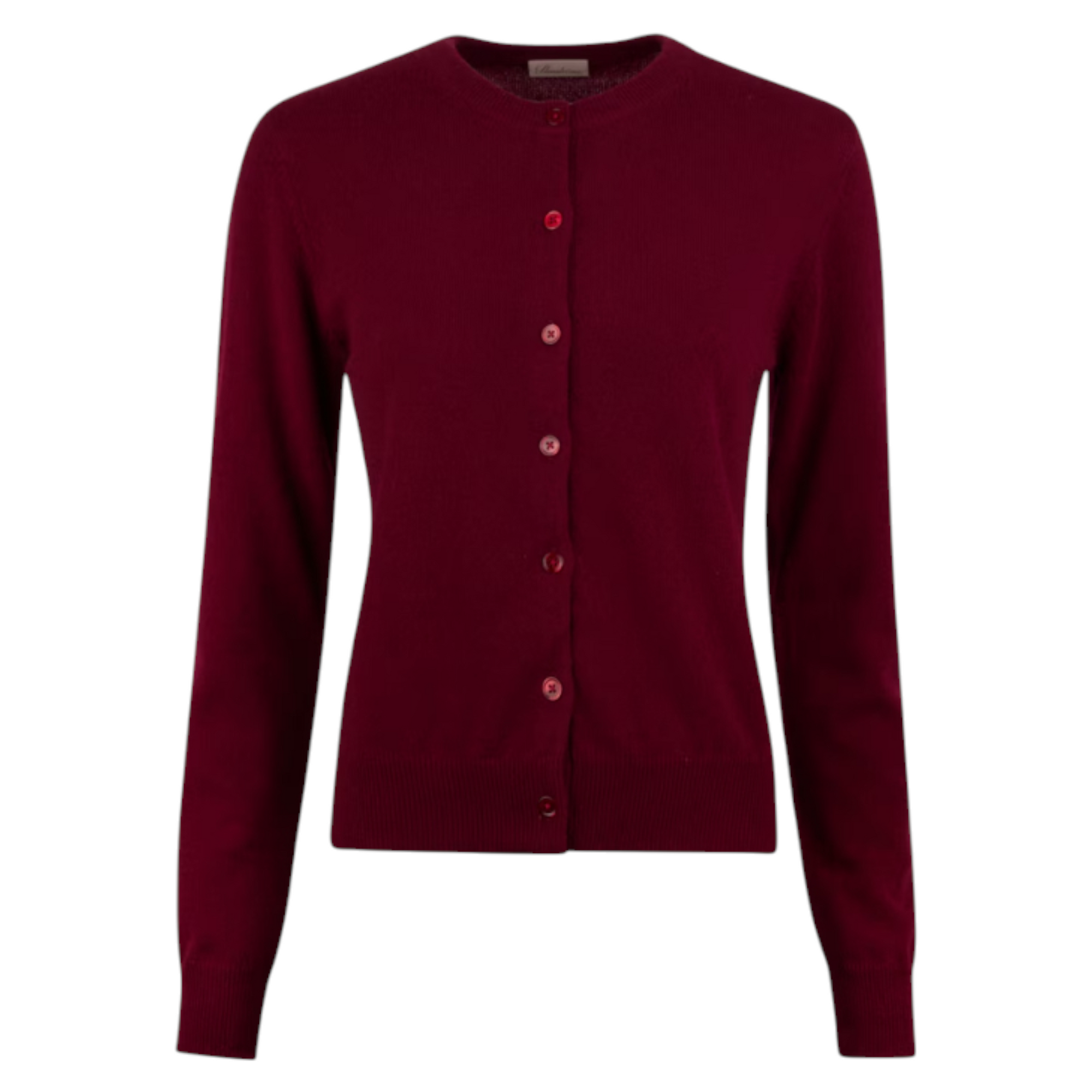 Klassisk cardigan i 100% kashmir med perlemorsknapper og fine ribdetaljer ved krave, ærmer og kant.