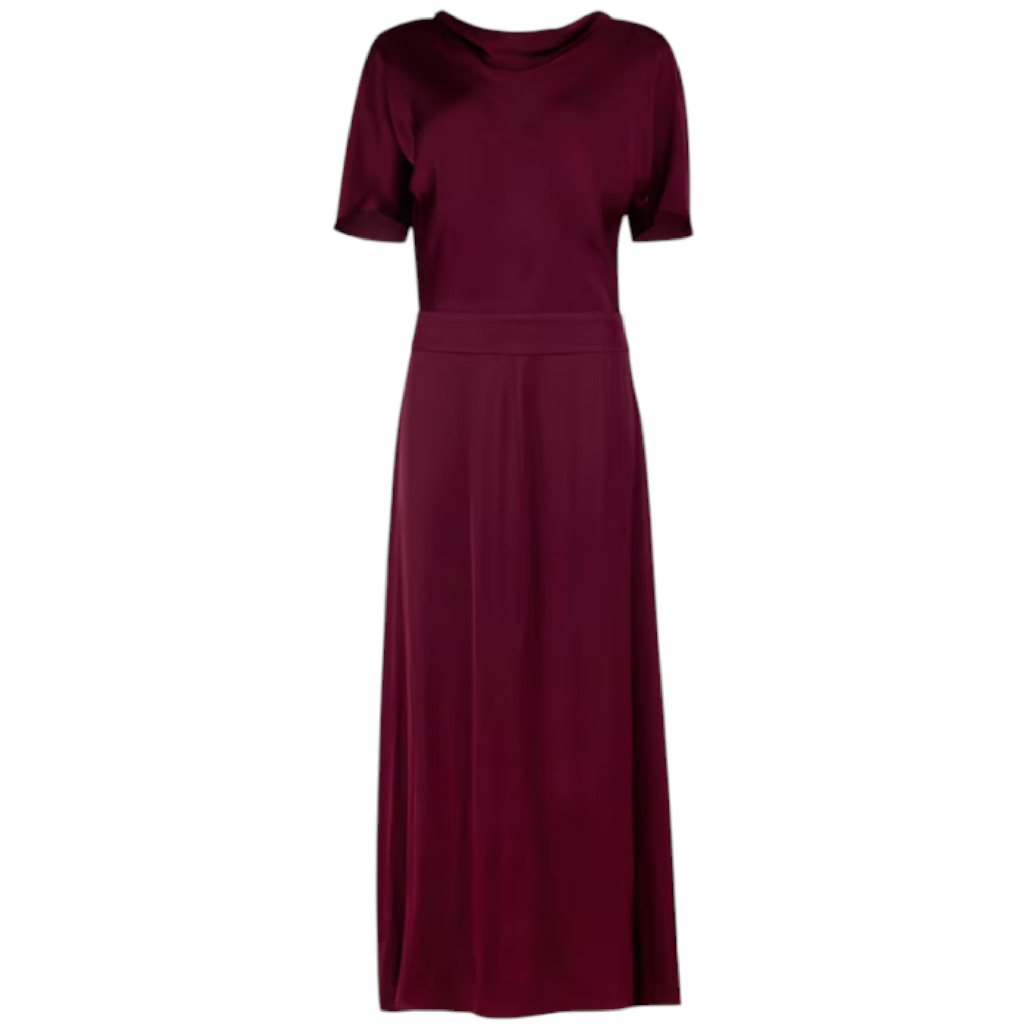Silkekjole med smal pasform og elegant vandfaldsudskæring.