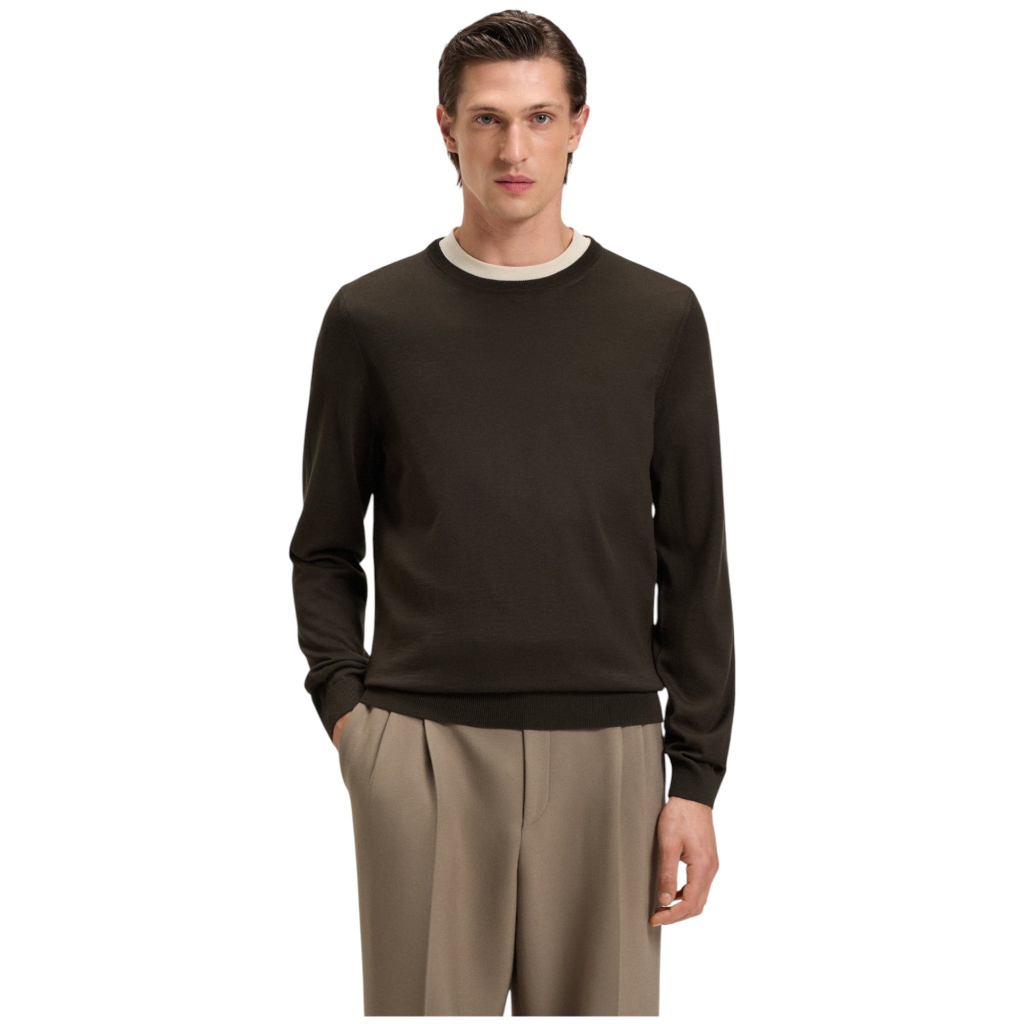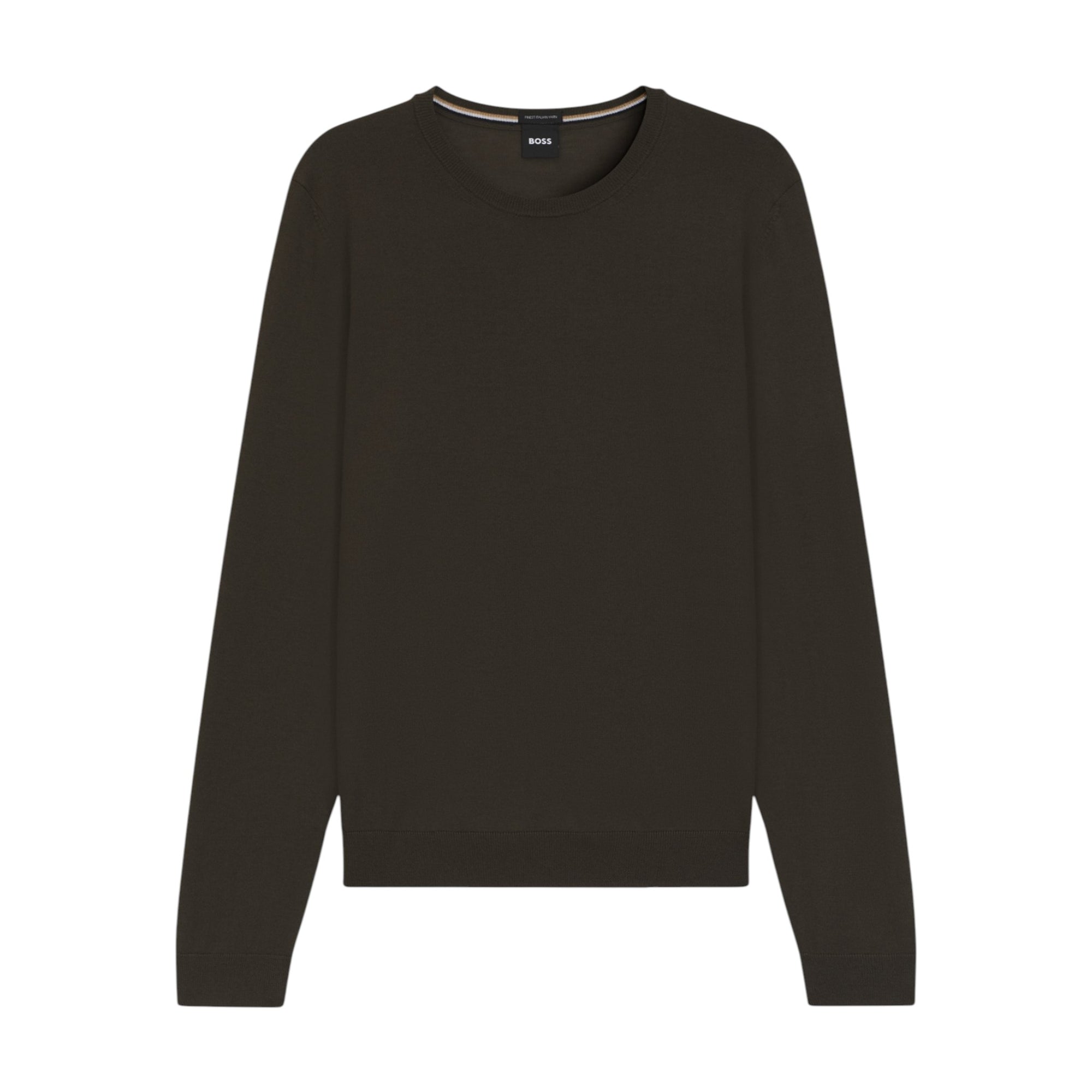 BOSS Slim Fit Sweater i Merinould – Mørkebrun