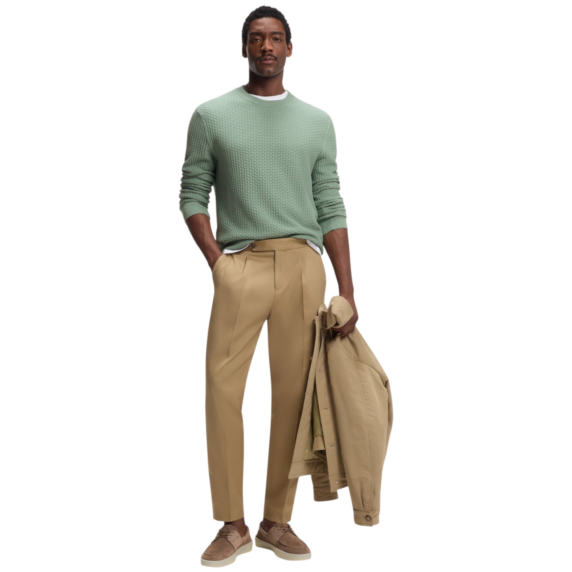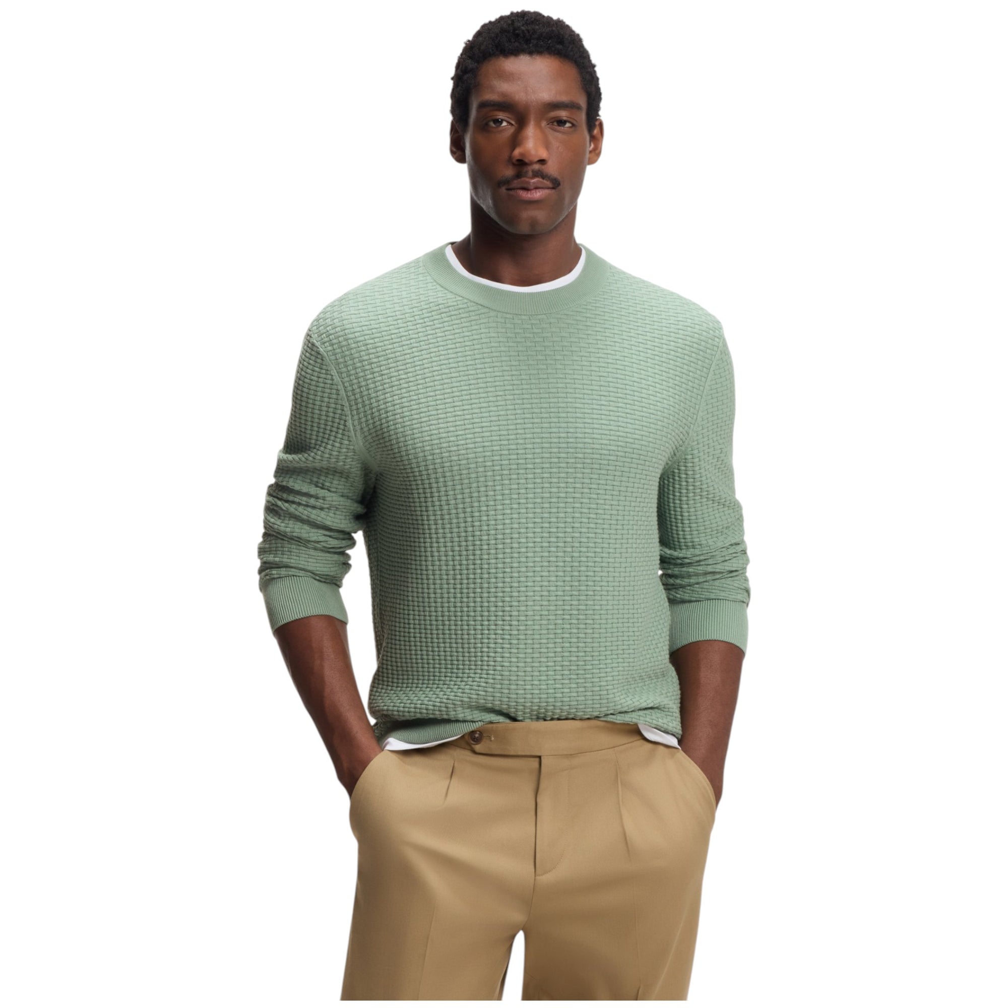 Denne lysegrønne sweater fra BOSS Menswear kombinerer klassisk design med moderne komfort og ansvarligt håndværk. Sweateren er fremstillet i 100 % blød bomuld og har en elegant strikket struktur, der giver et stilrent og eksklusivt udtryk.