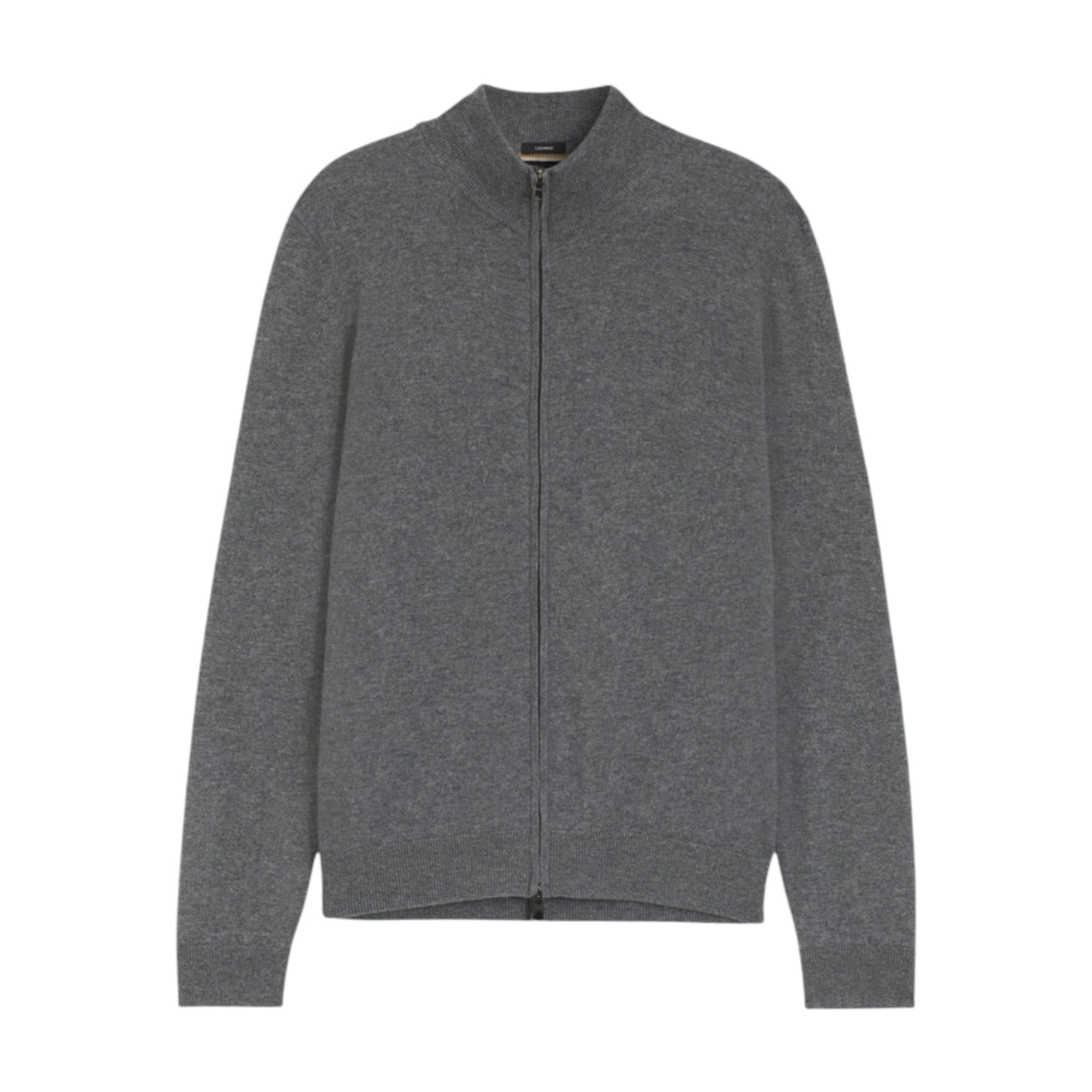 BOSS Cashmere Cardigan med Two-Way Zip – Grå