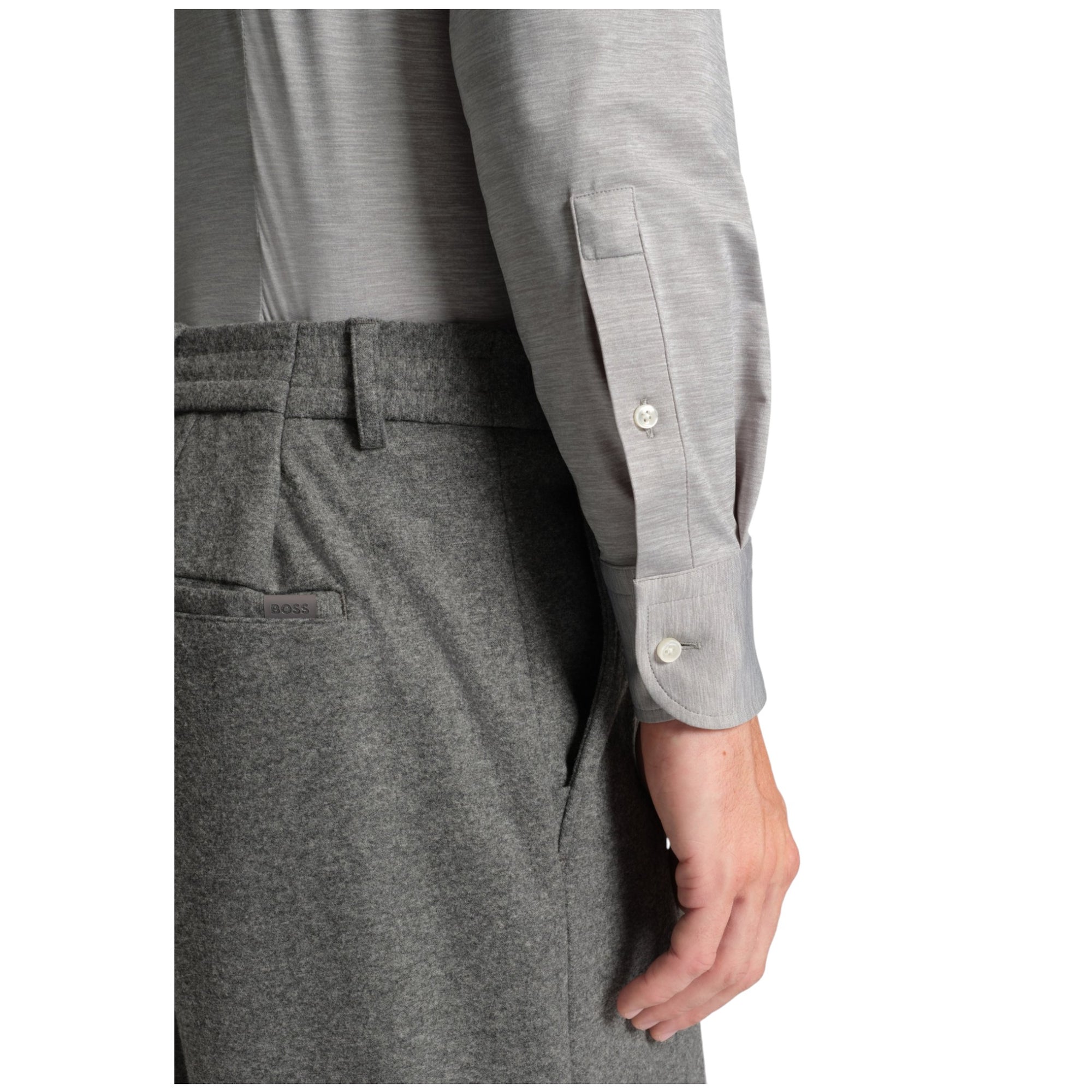 Slim Fit Flannelskjorte med Stretch – Lysegrå | BOSS Menswear