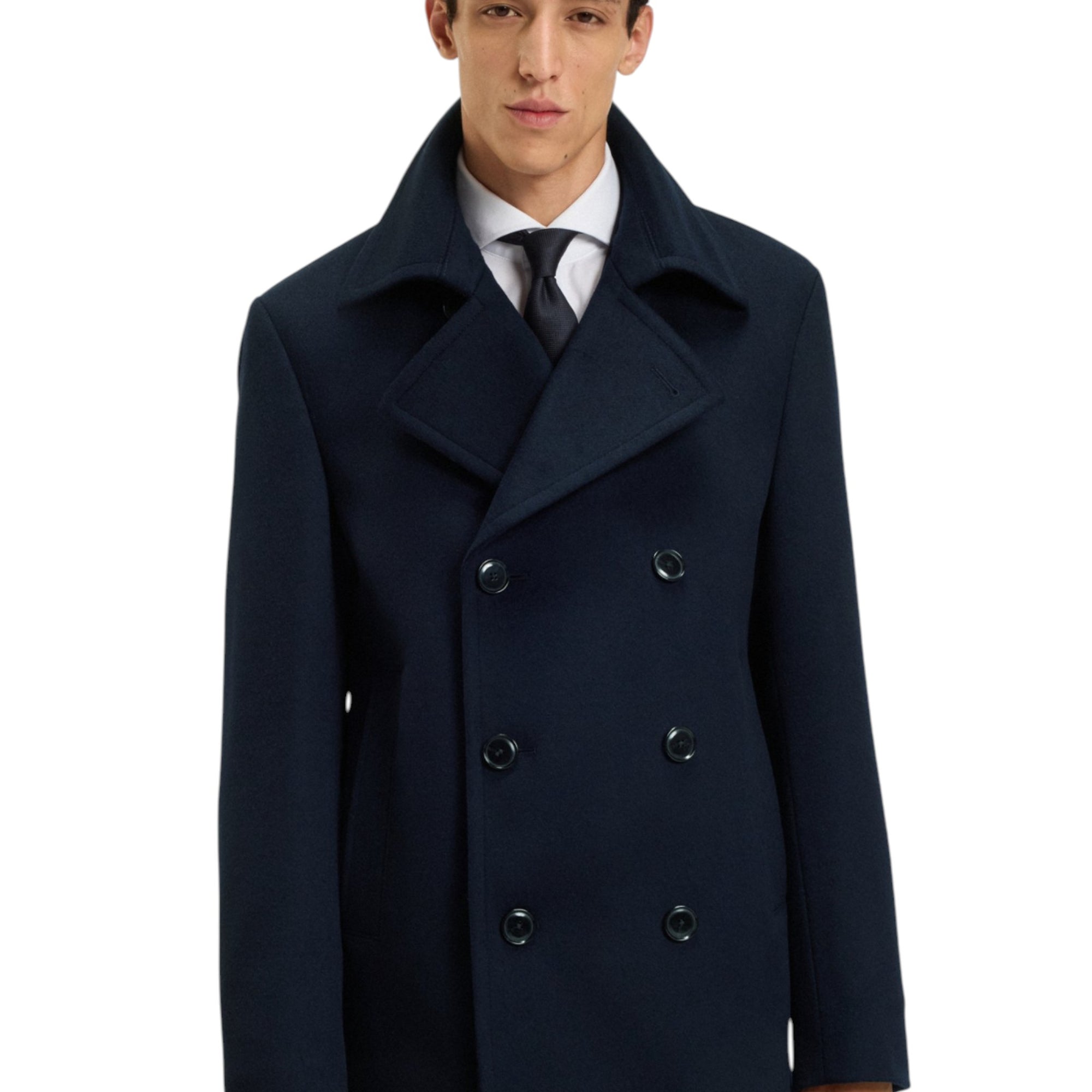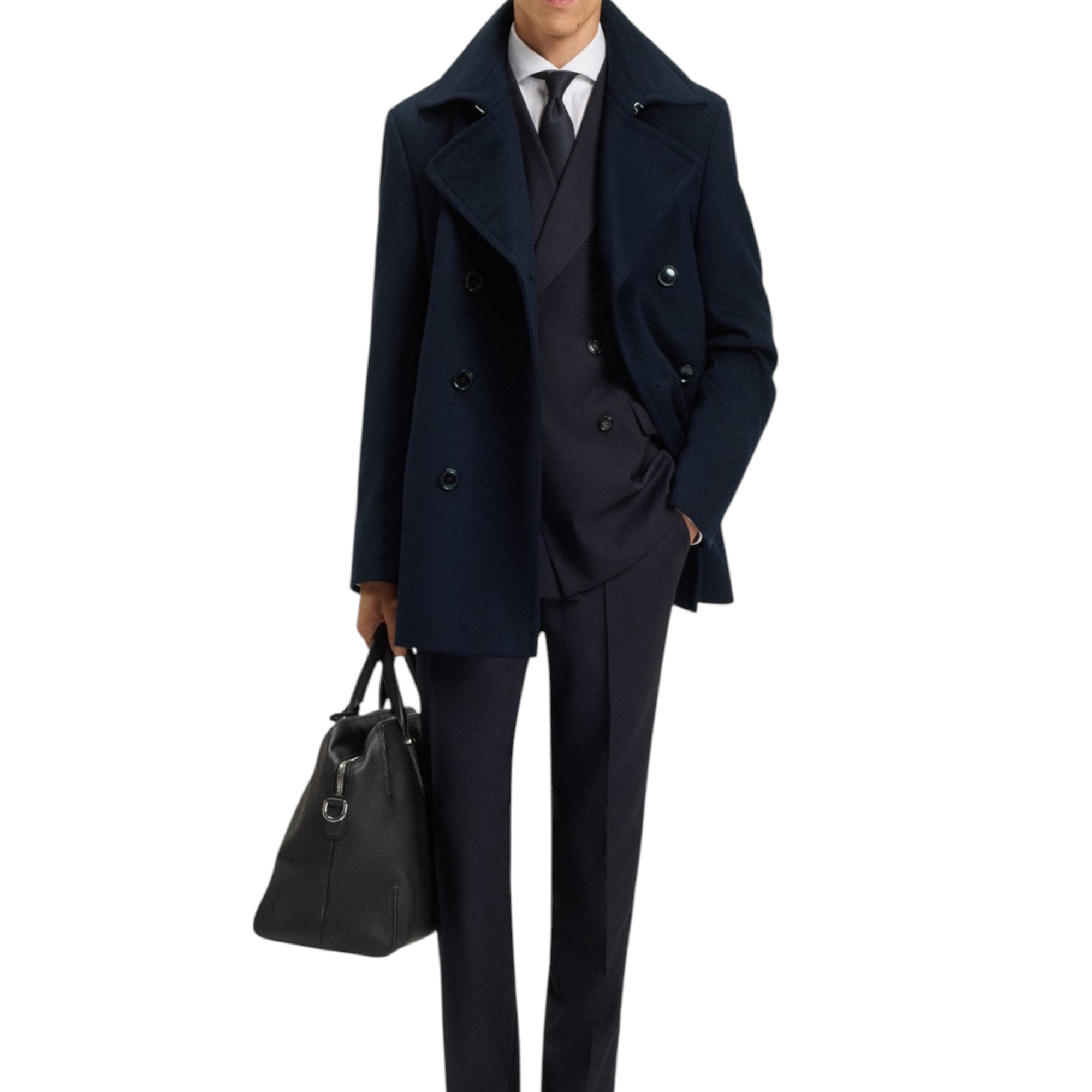 BOSS Slim Fit Sømandsfrakke i Uld og Kashmir – Navy