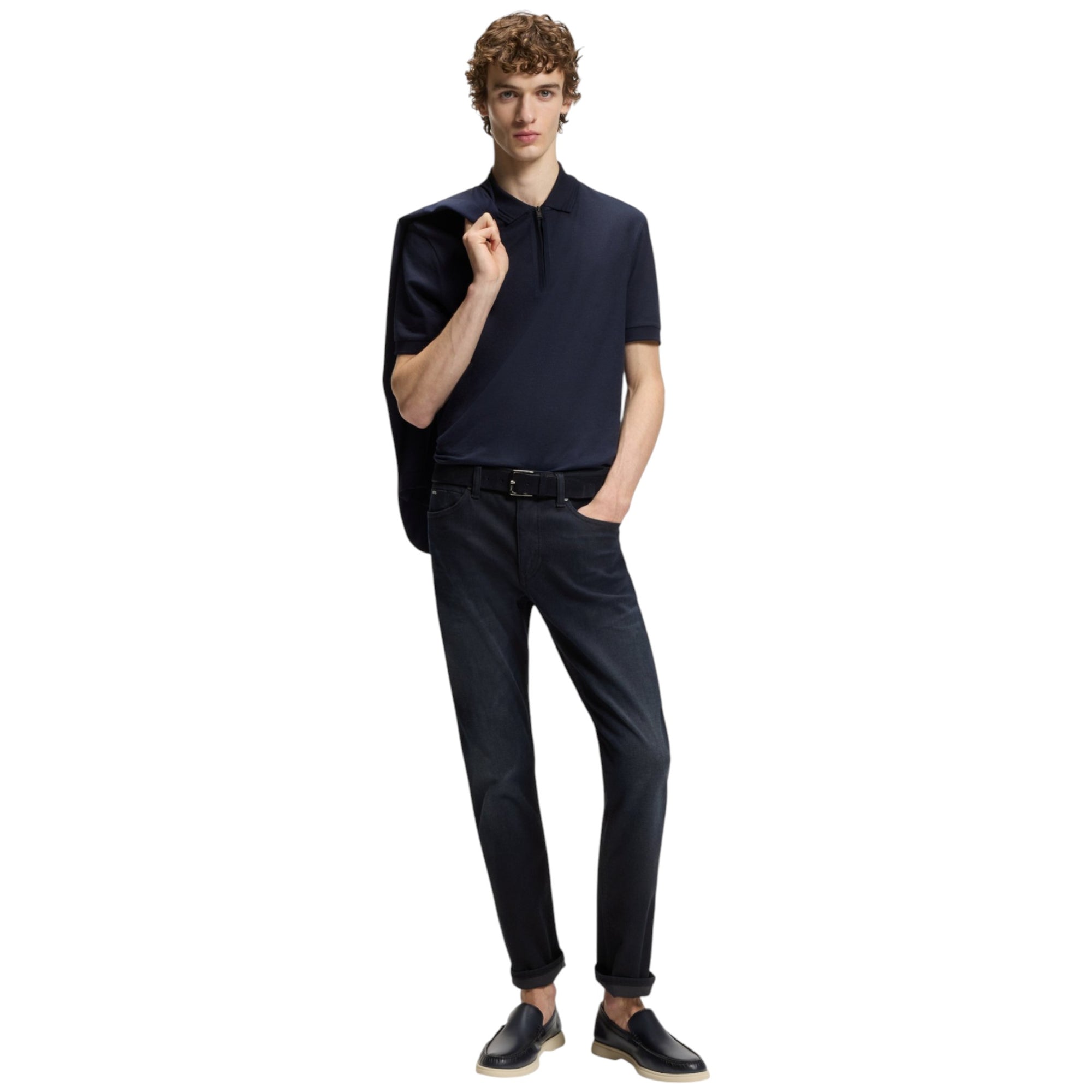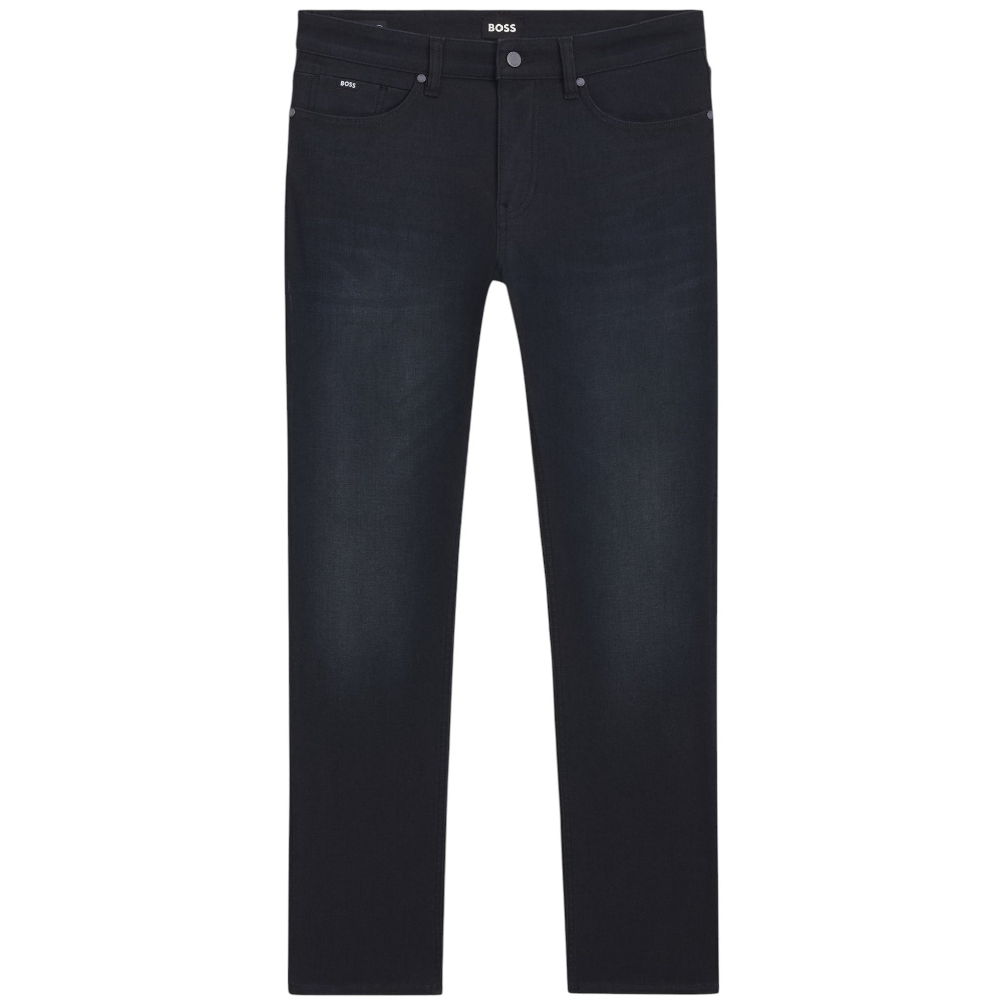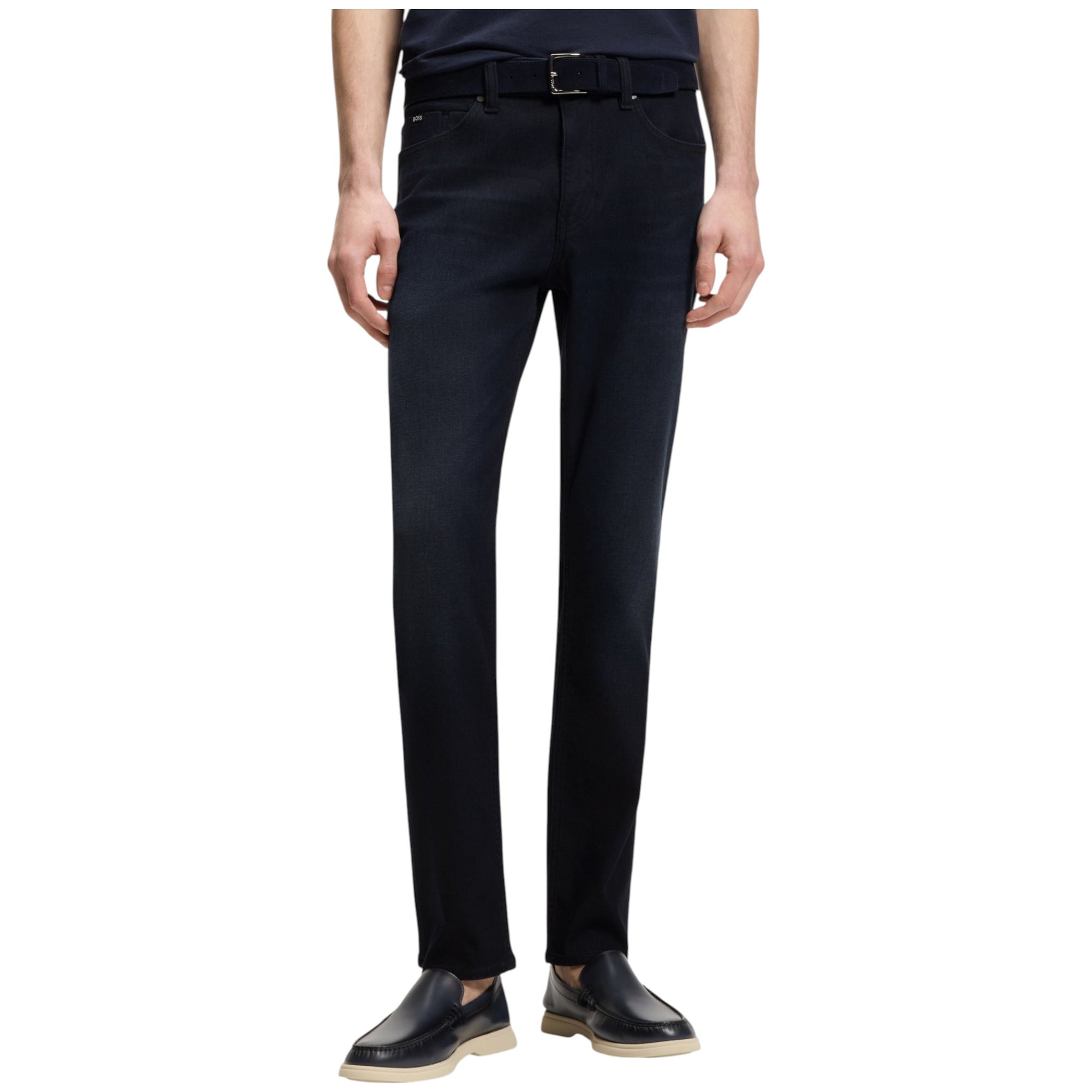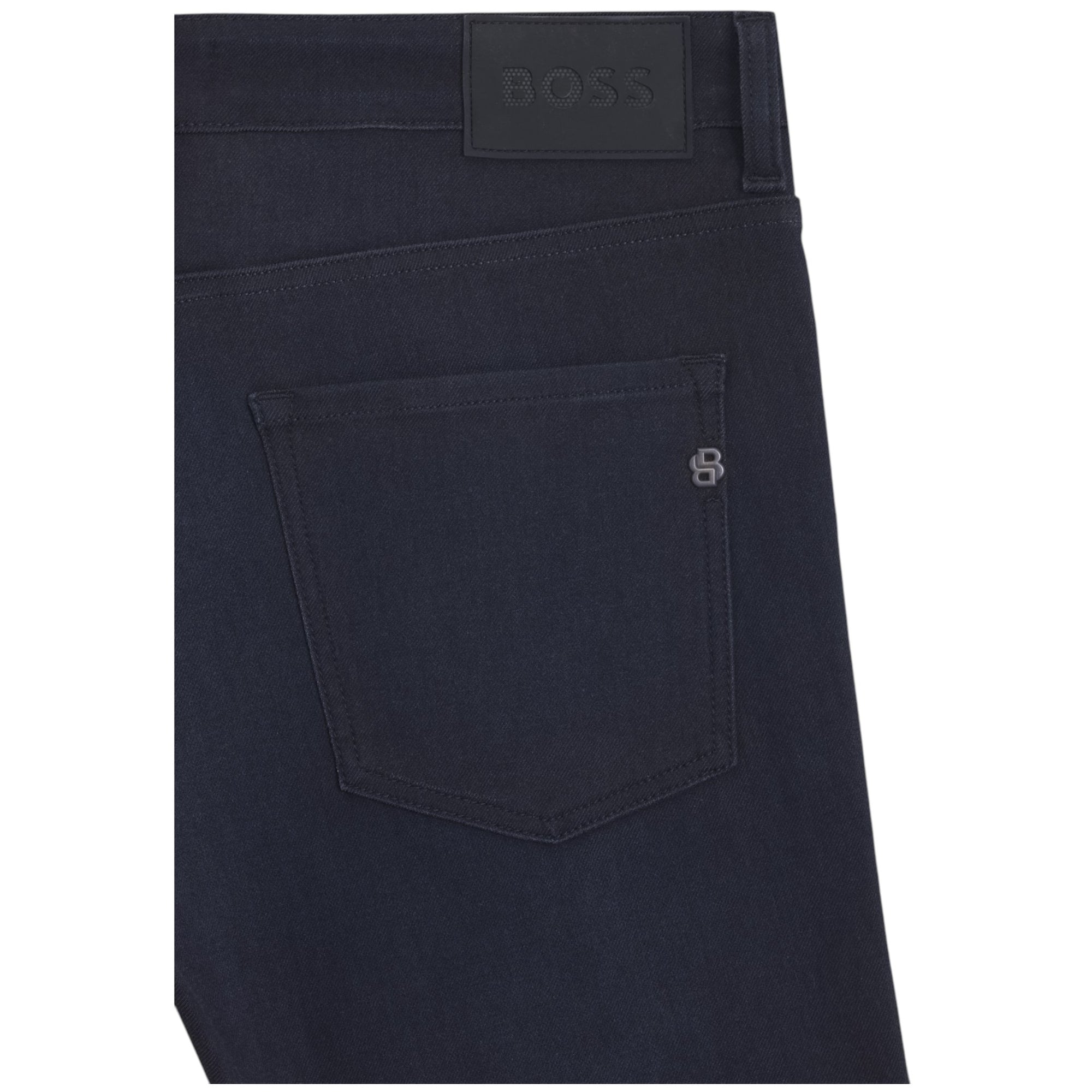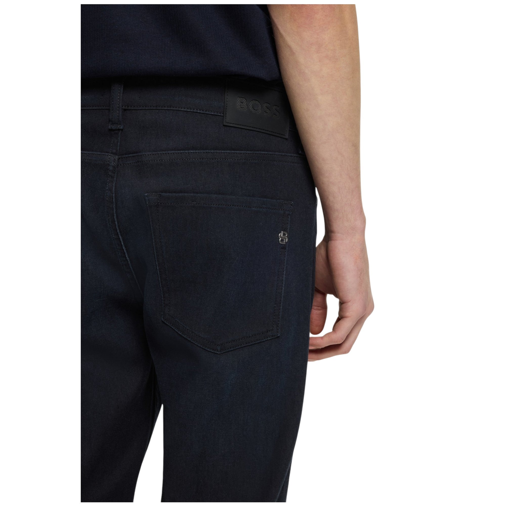Opgrader din hverdagsgarderobe med disse Delaware slim fit jeans fra BOSS Menswear i en stilren blå farve. Jeansene er fremstillet i strikket denim med stræk, hvilket giver en ekstra blød og komfortabel fornemmelse – perfekt til både hverdag og mere afslappede anledninger.