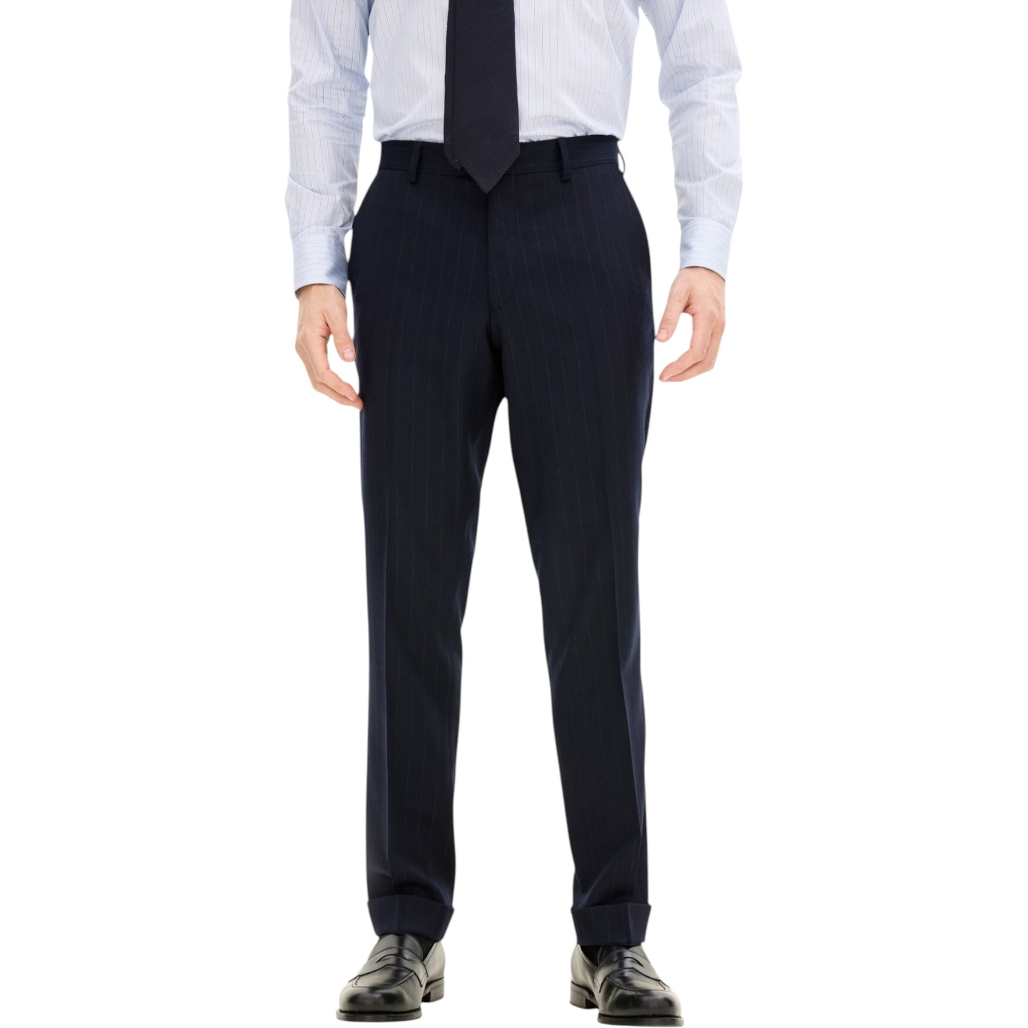 Opgrader din garderobe med Denz Slim Fit Stribede Flannelbukser i navy, en stilfuld og komfortabel tilføjelse til enhver mands basisgarderobe. Disse klassiske flannelbukser til herre er designet i en blød uldblanding med diskrete, lodrette striber, der tilfører et raffineret og moderne udtryk.