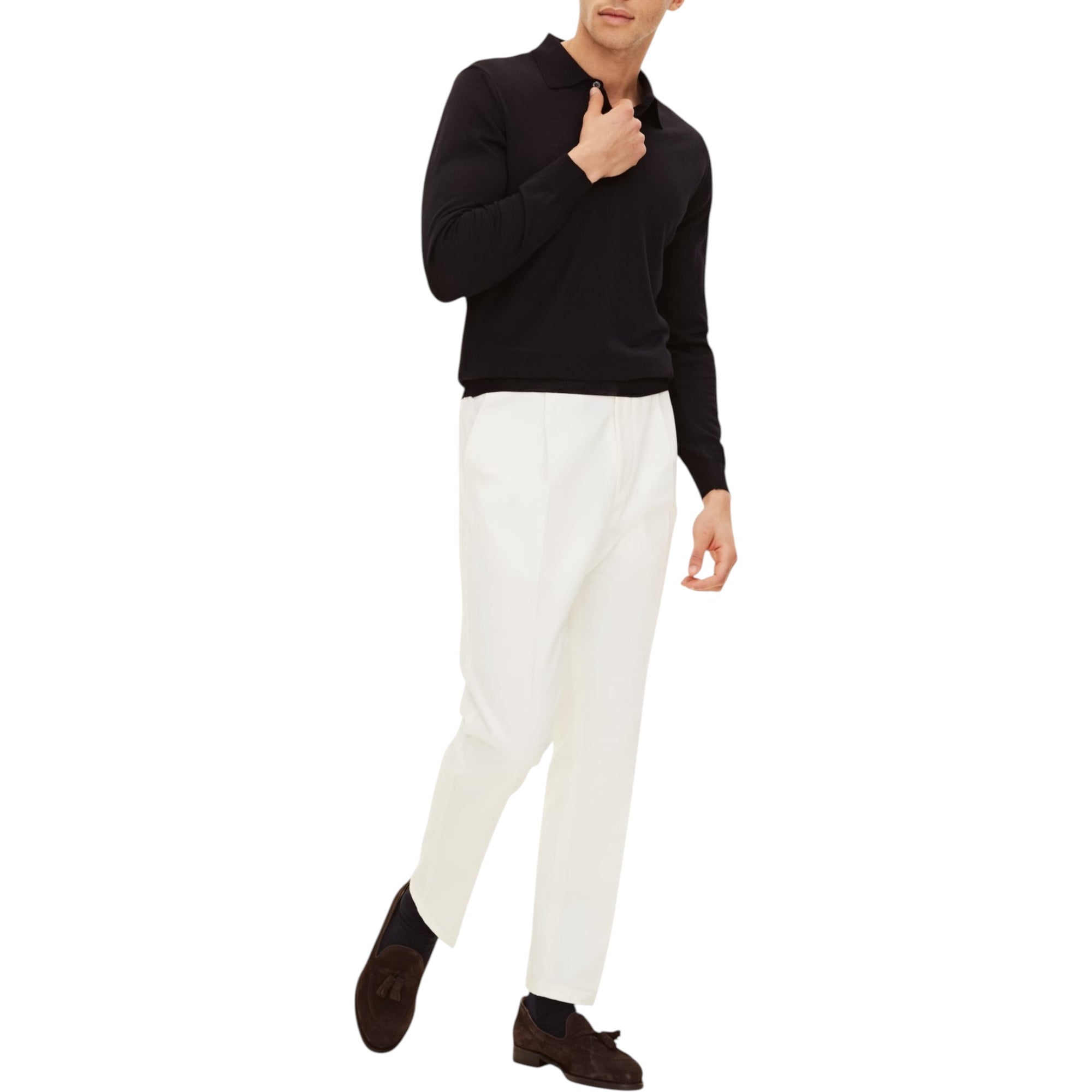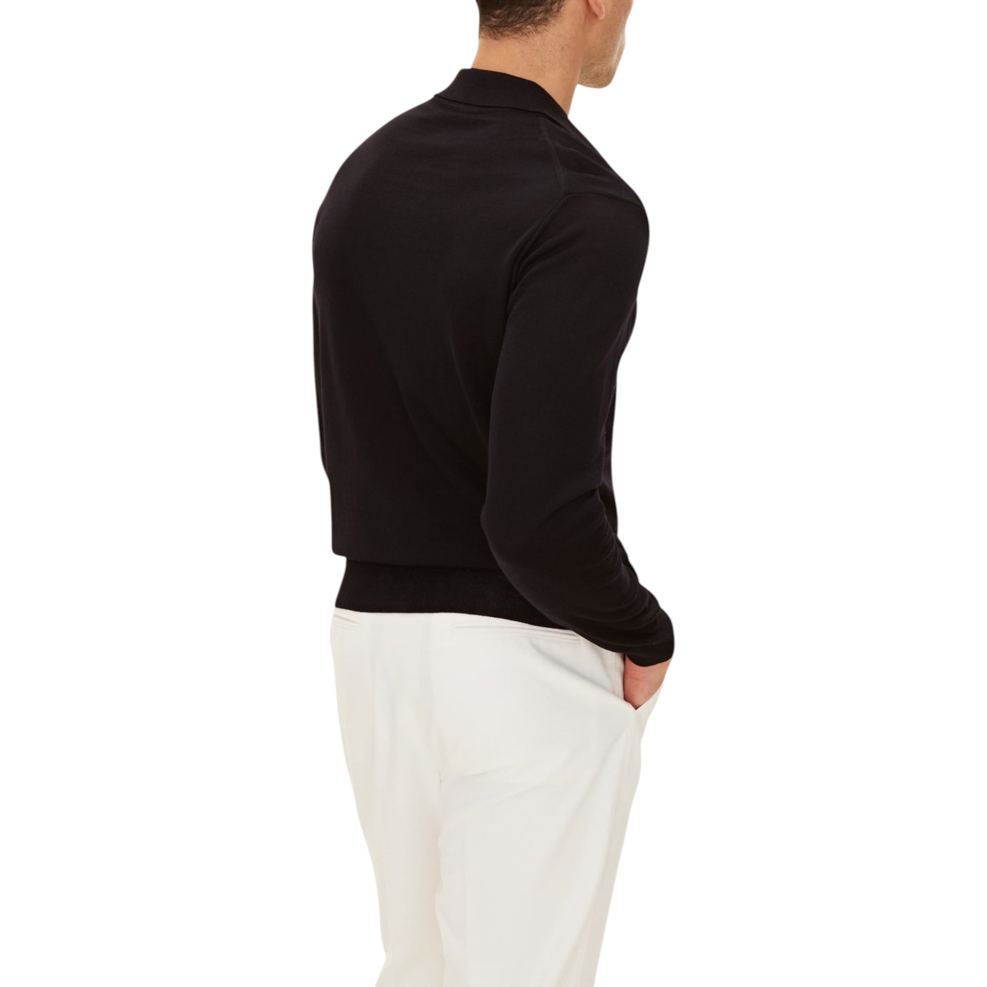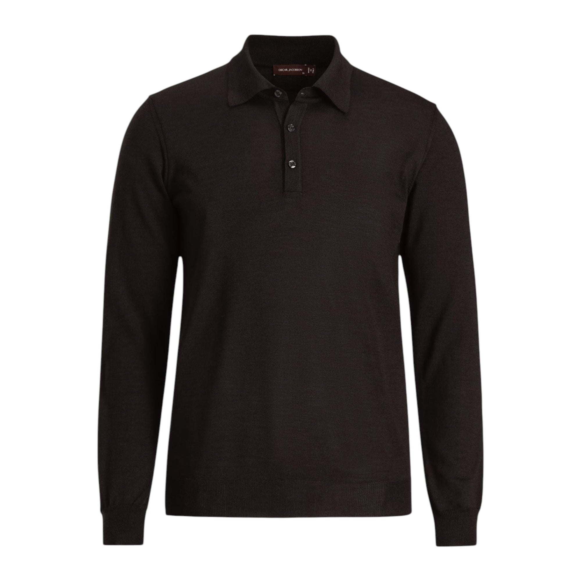 Den fine 14gg-strik og den strukturerede krave med tre knapper giver et skarpt, men afslappet udtryk – perfekt under en blazer eller alene med et par chinos.
