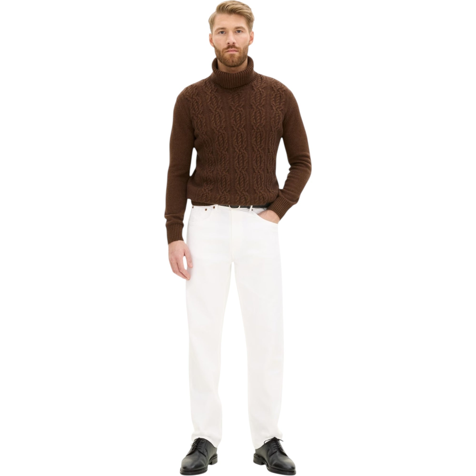 Det strukturerede strikmønster giver dybde og karakter, mens rullekraven holder dig varm med stil. Brug den alene eller under en blazer eller frakke for et sofistikeret og moderne look.