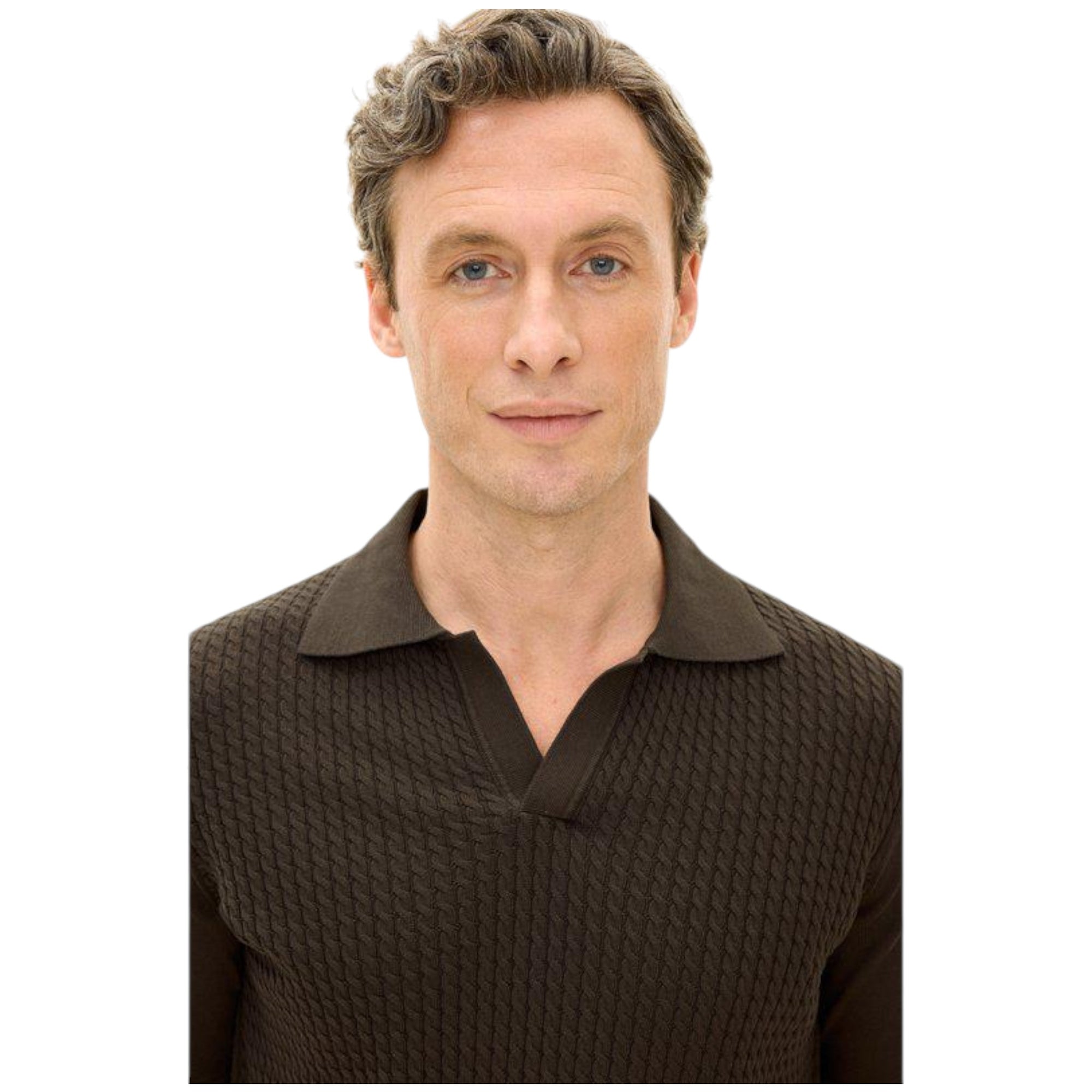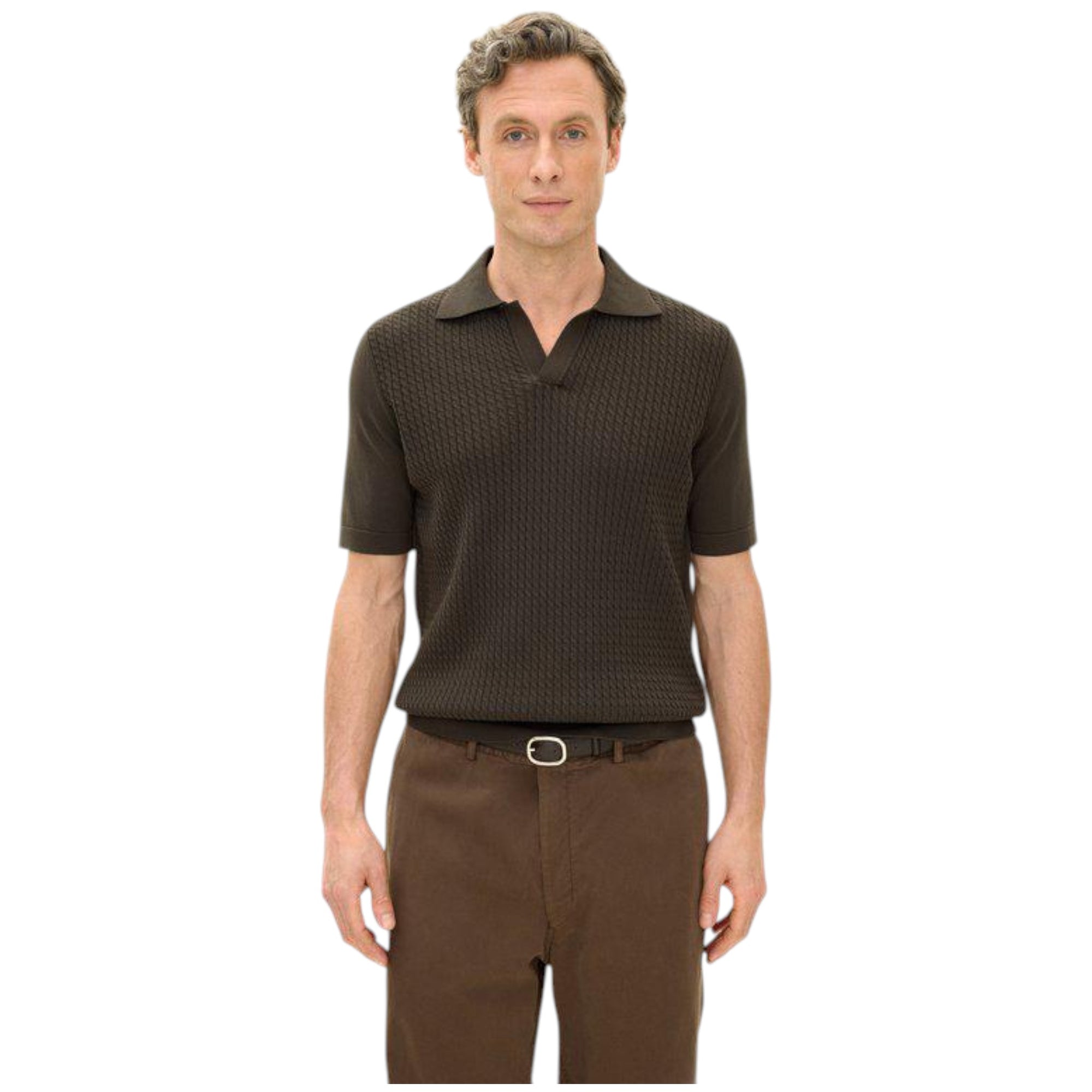 Alf polo skjorten i Mørkebrun er det perfekte valg til dig, der ønsker varme nuancer og et eksklusivt udtryk. Den strikkede bomuld i 12 gauge giver en flot struktur og en behagelig pasform, mens kabeldesignet på fronten tilføjer karakter.