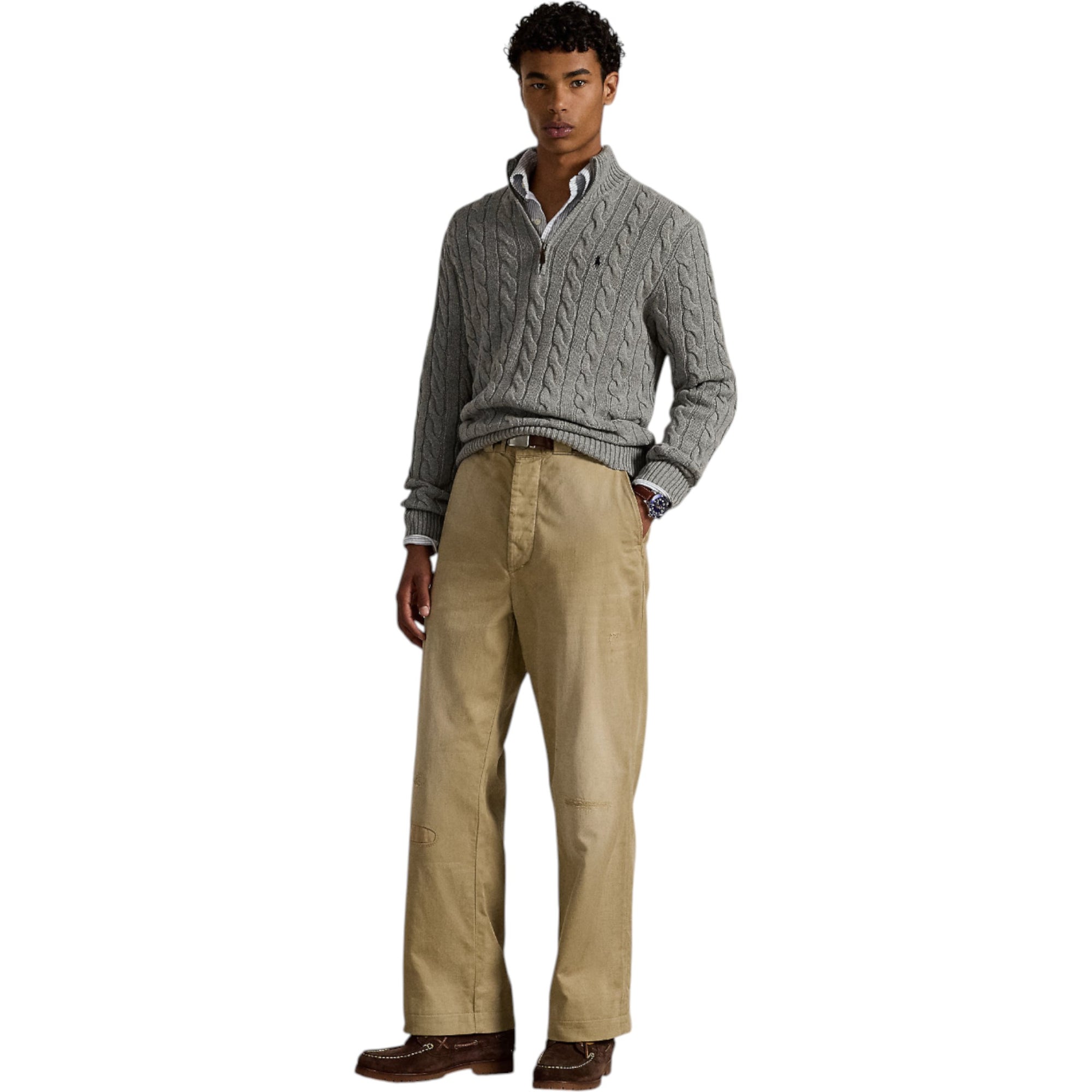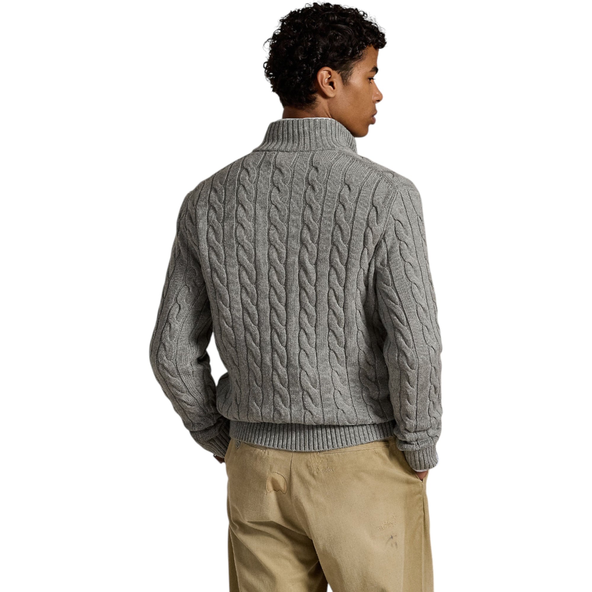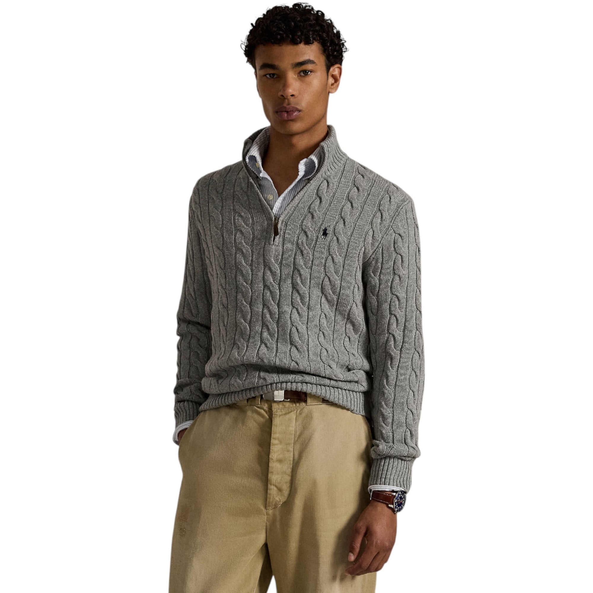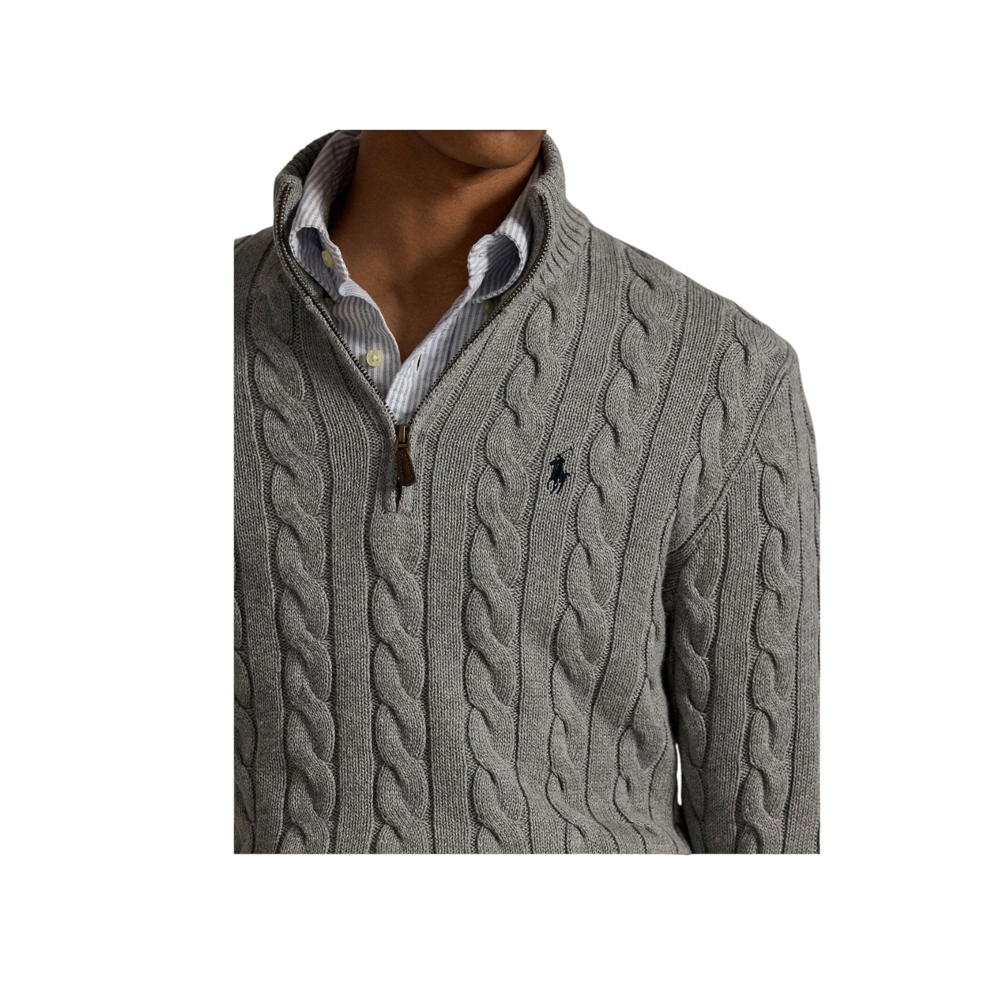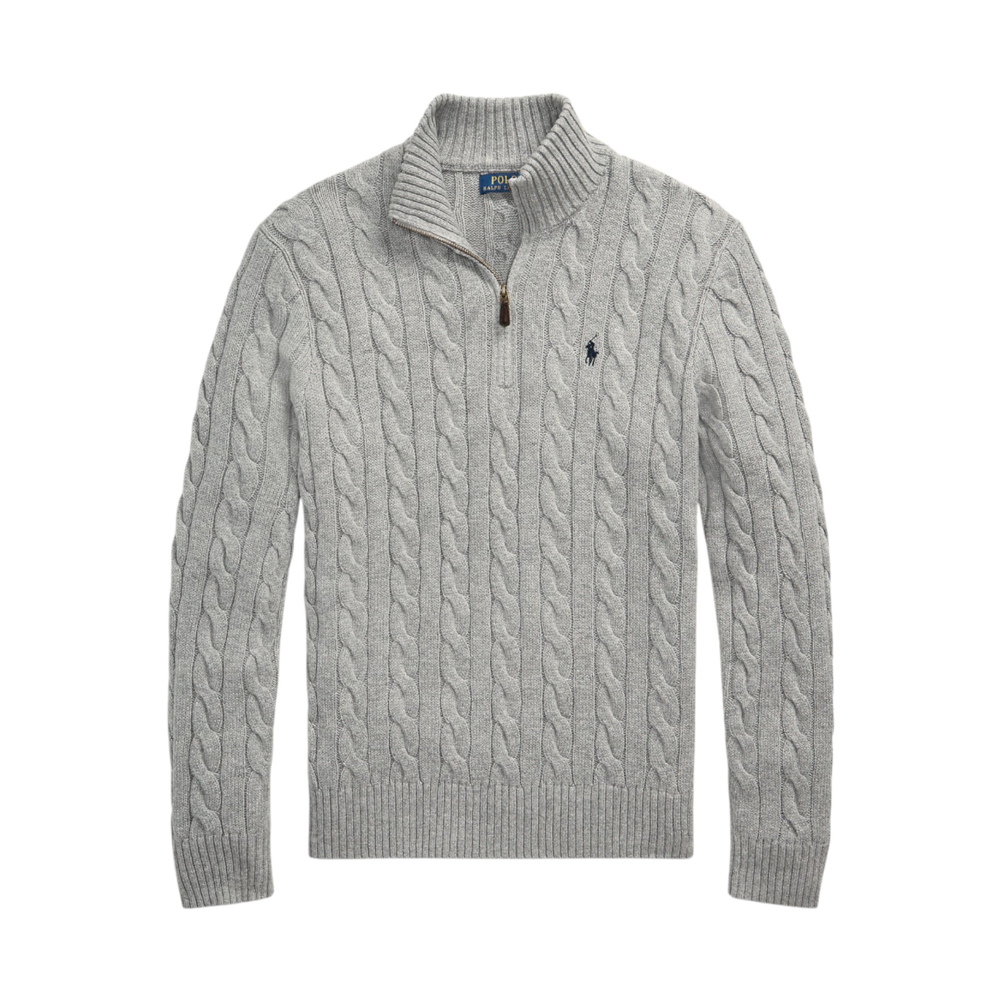 Ralph Lauren Cable-Knit Cotton Quarter-Zip Sweater – Lysegrå