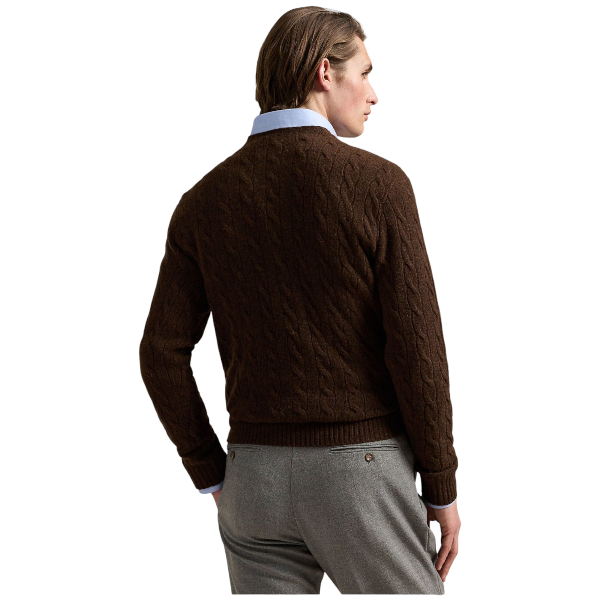 Ralph Lauren Cable-Knit Sweater – Mørkebrun i Uld og Cashmere