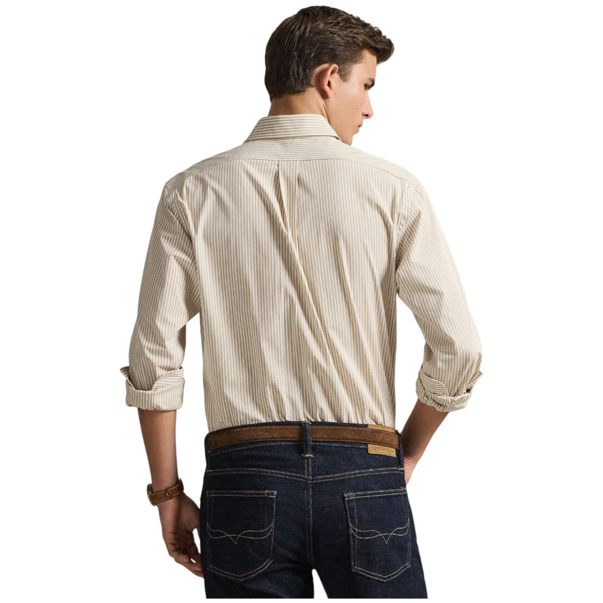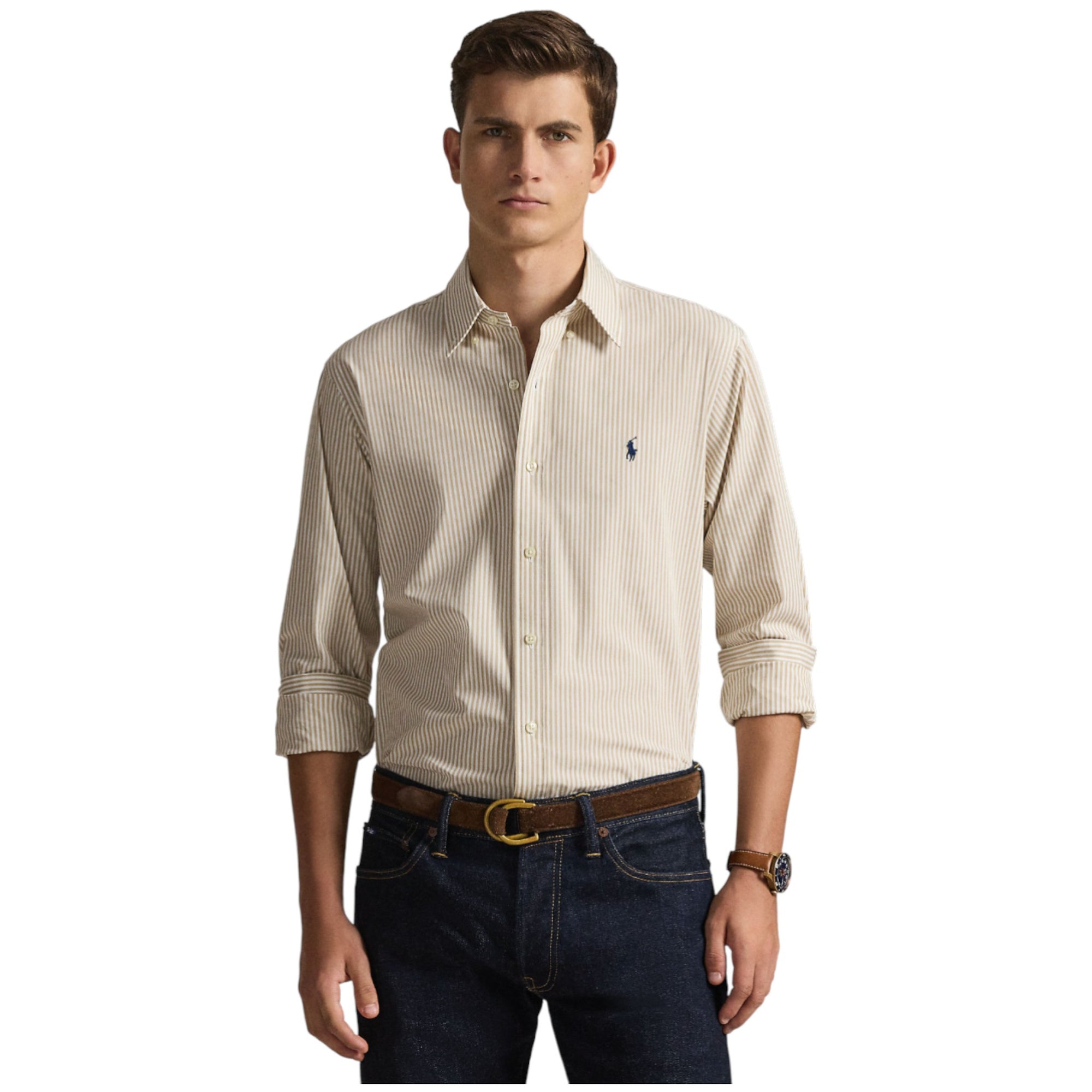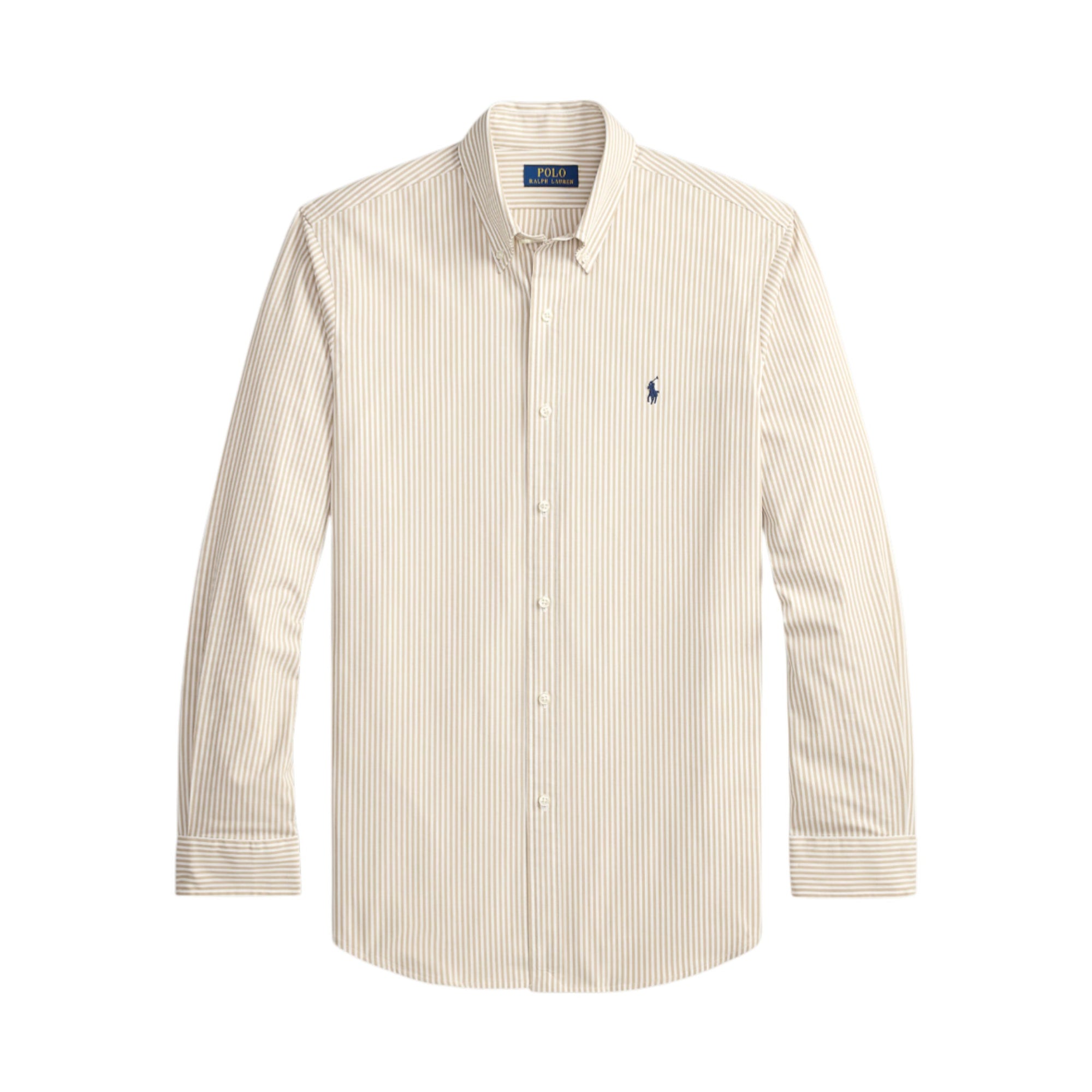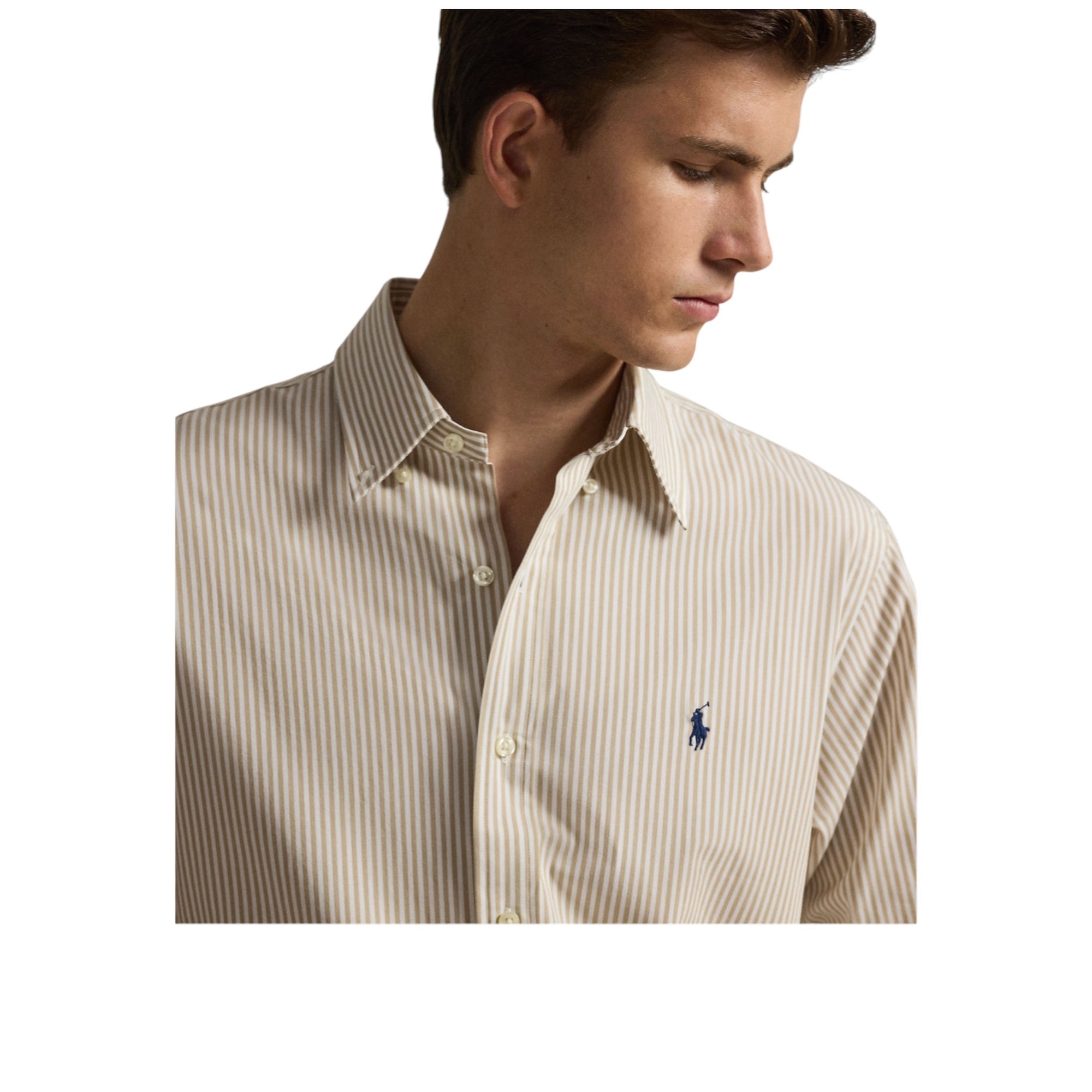 Custom Fit Striped Stretch Poplin Shirt – Coastal Beige/White