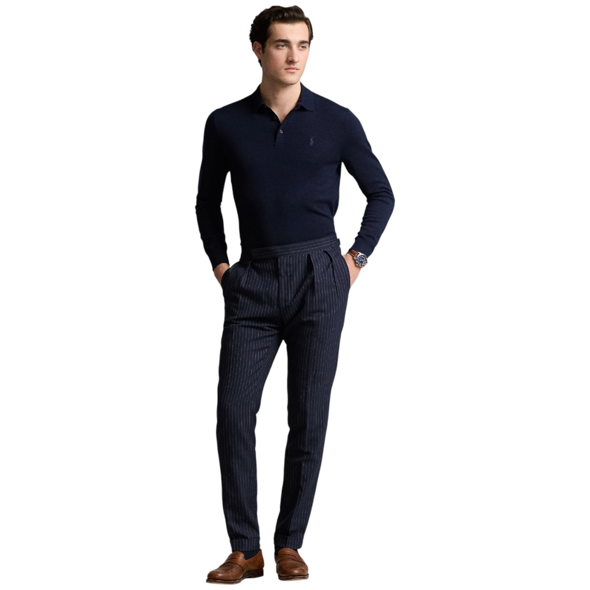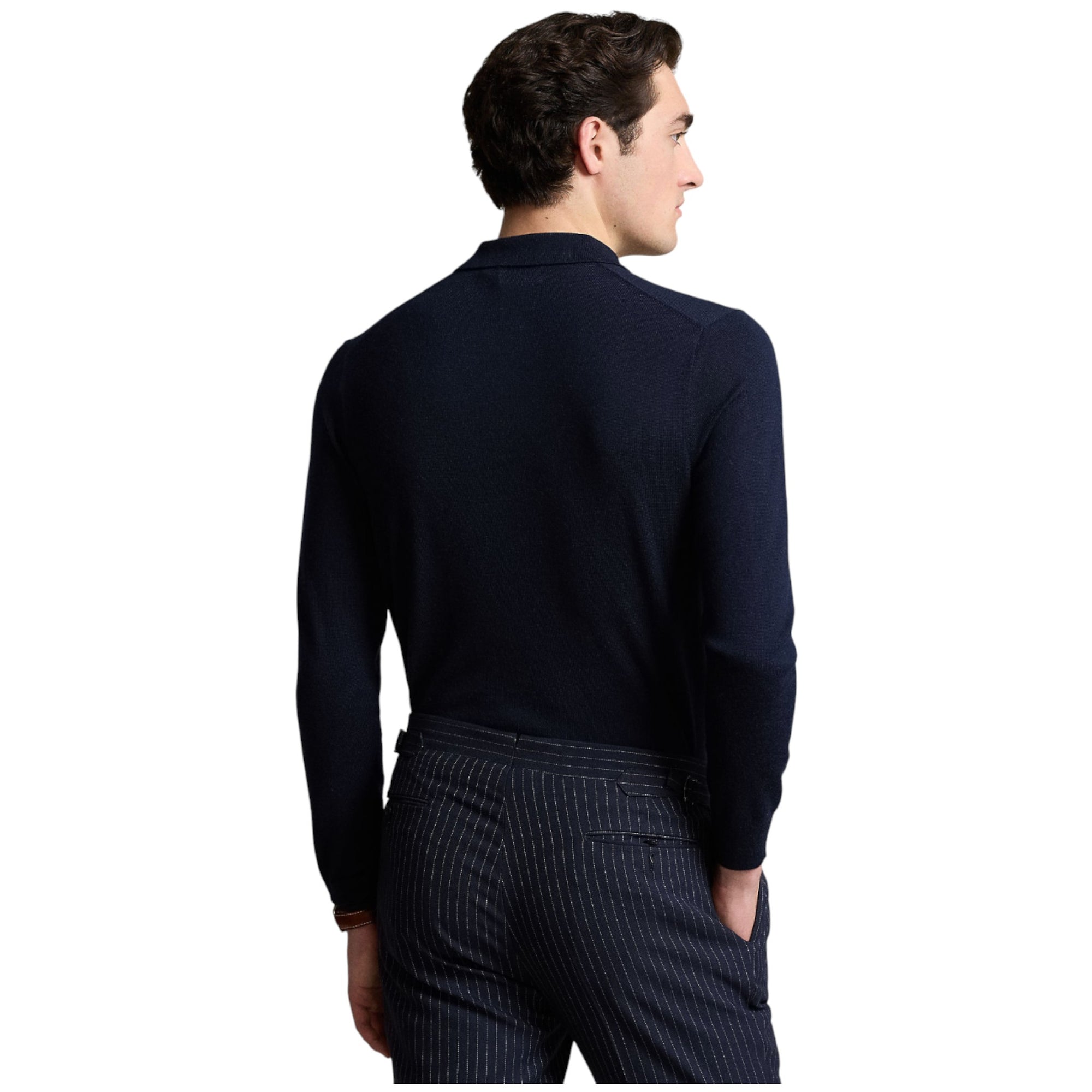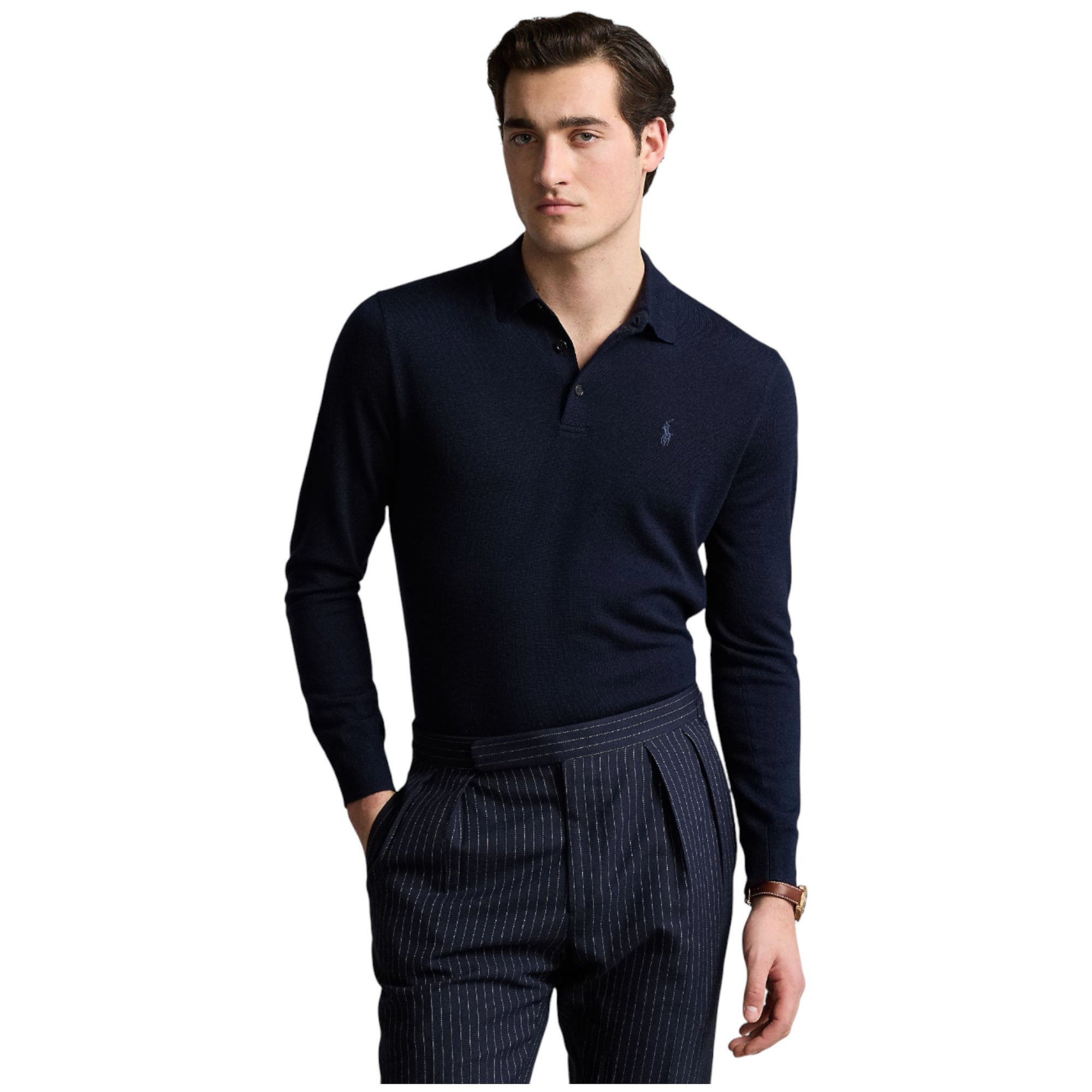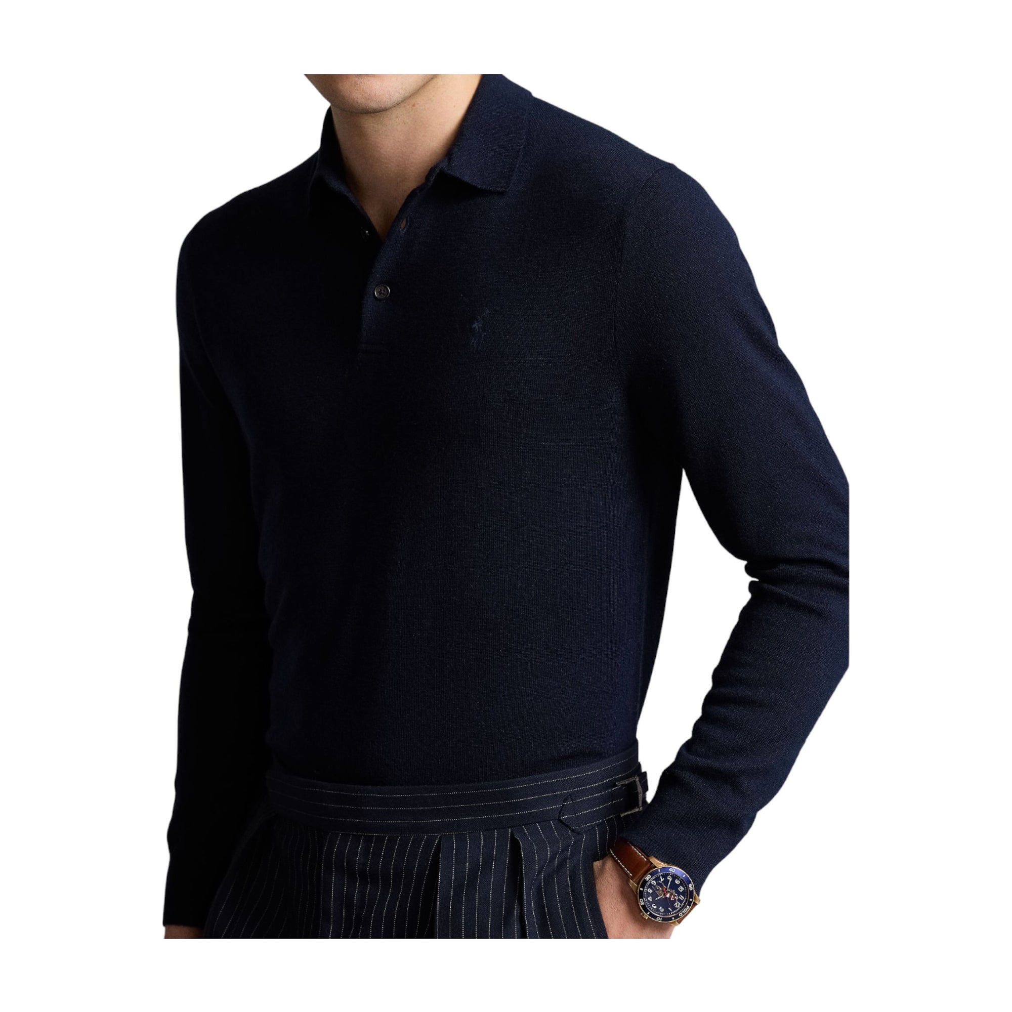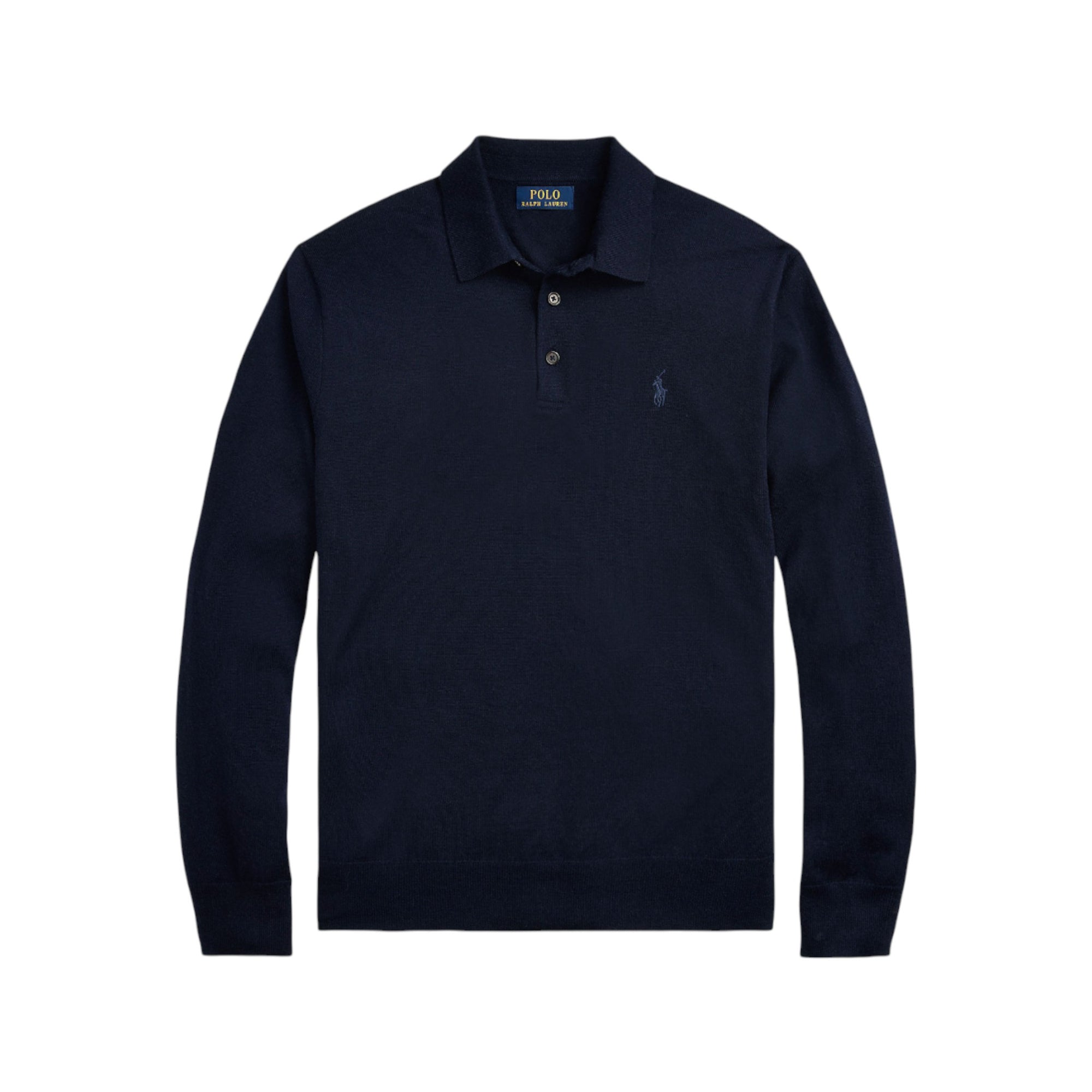 Ralph Lauren Washable Wool Polo-Collar Sweater – Navy