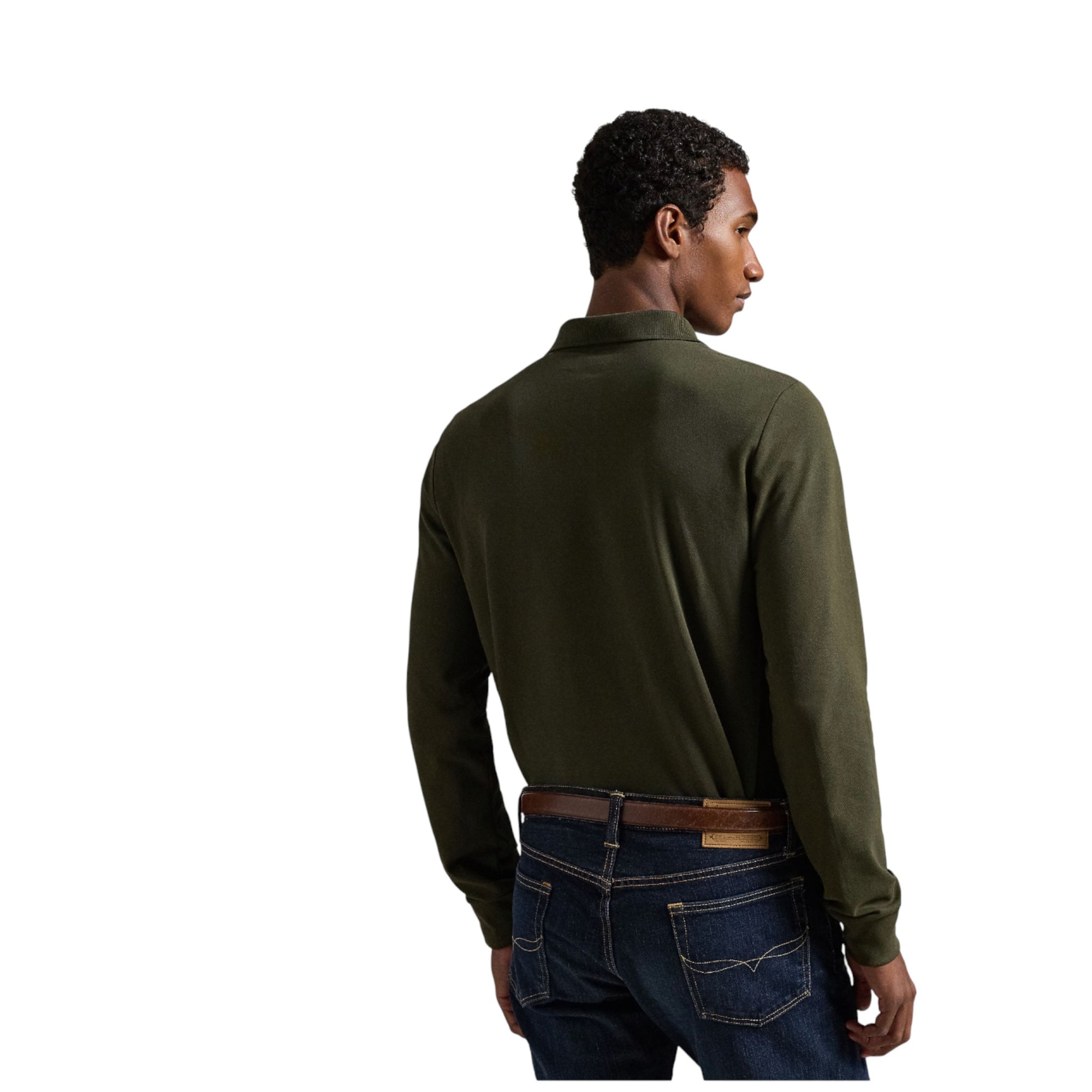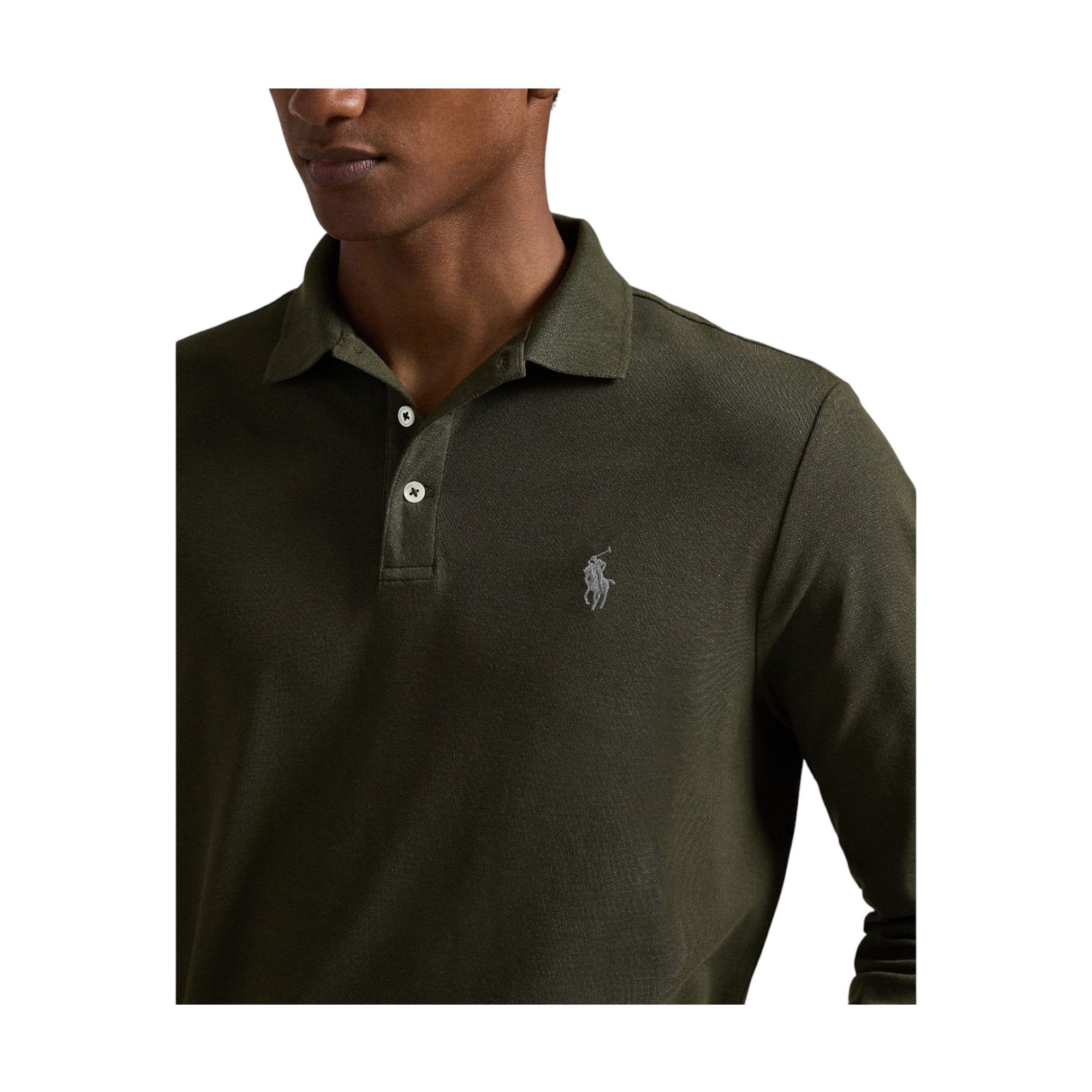 Den ikoniske Polo Shirt fra Ralph Lauren har siden 1972 været et uundværligt element i amerikansk stil – ofte kopieret, men aldrig matchet. Denne Custom Slim Fit Stretch Mesh Polo Shirt i farven Company Olive fortsætter den legendariske tradition med et moderne twist.