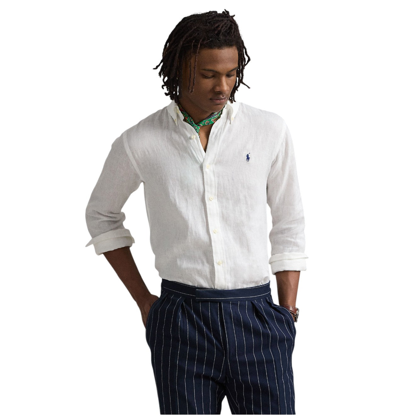 Denne hvide Ralph Lauren linskjorte kombinerer klassisk elegance med sommerlig lethed. Et oplagt valg til dig, der går op i både komfort og stil – uanset om du er tilbagelænet ved stranden eller til sommerbryllup i byen.
