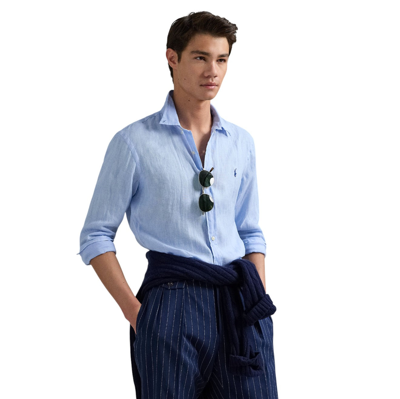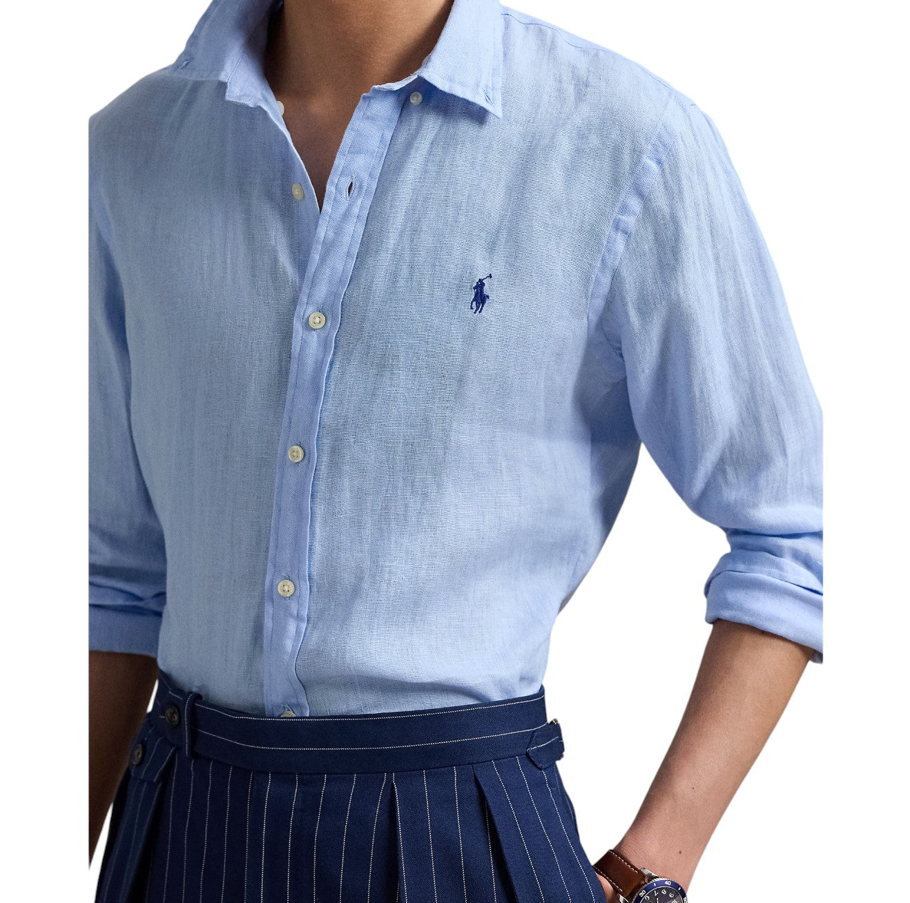 Denne lyseblå hørskjorte fra Ralph Lauren kombinerer klassisk stil med moderne pasform og komfort. En ideel sommerskjorte til både arbejde, ferie og festlige lejligheder.