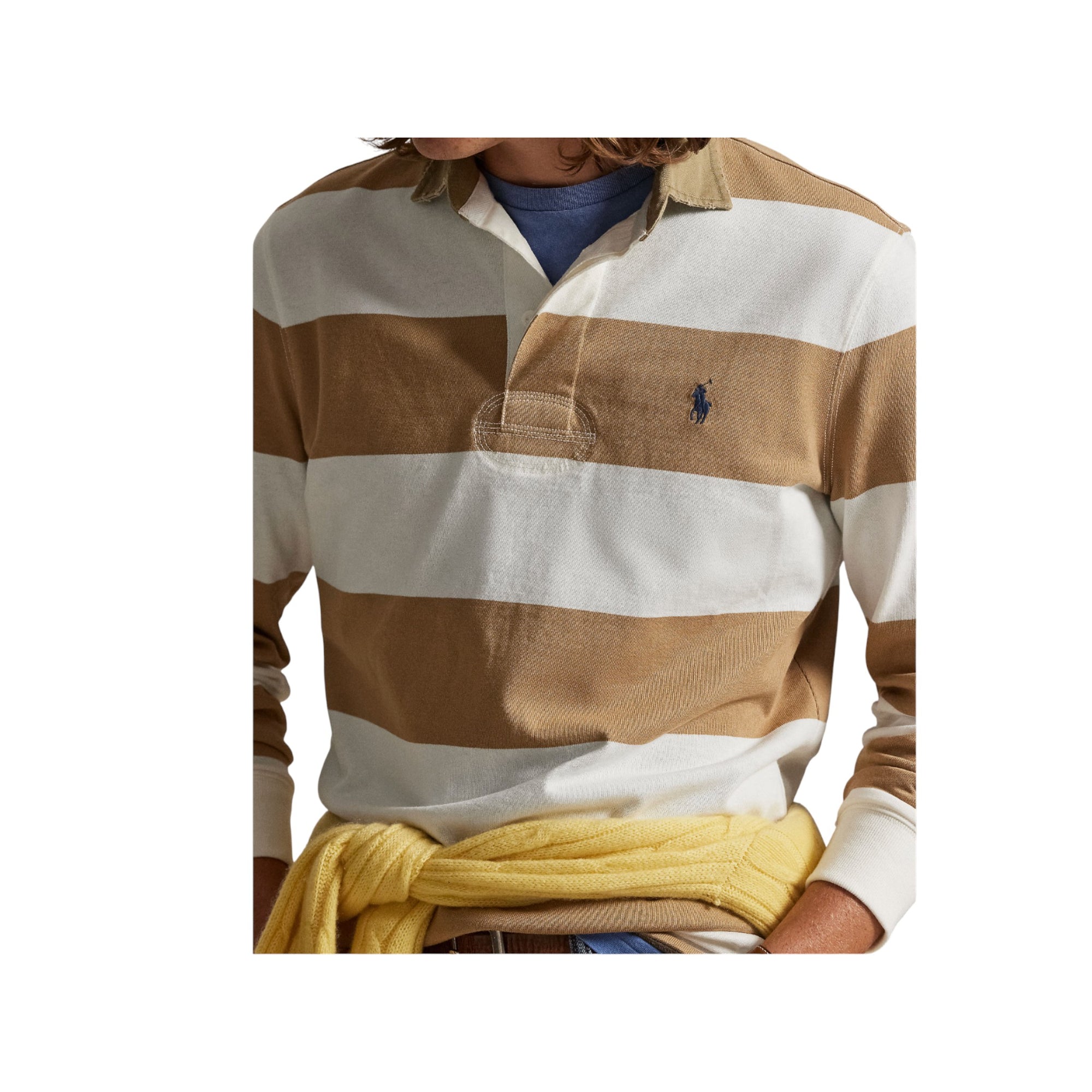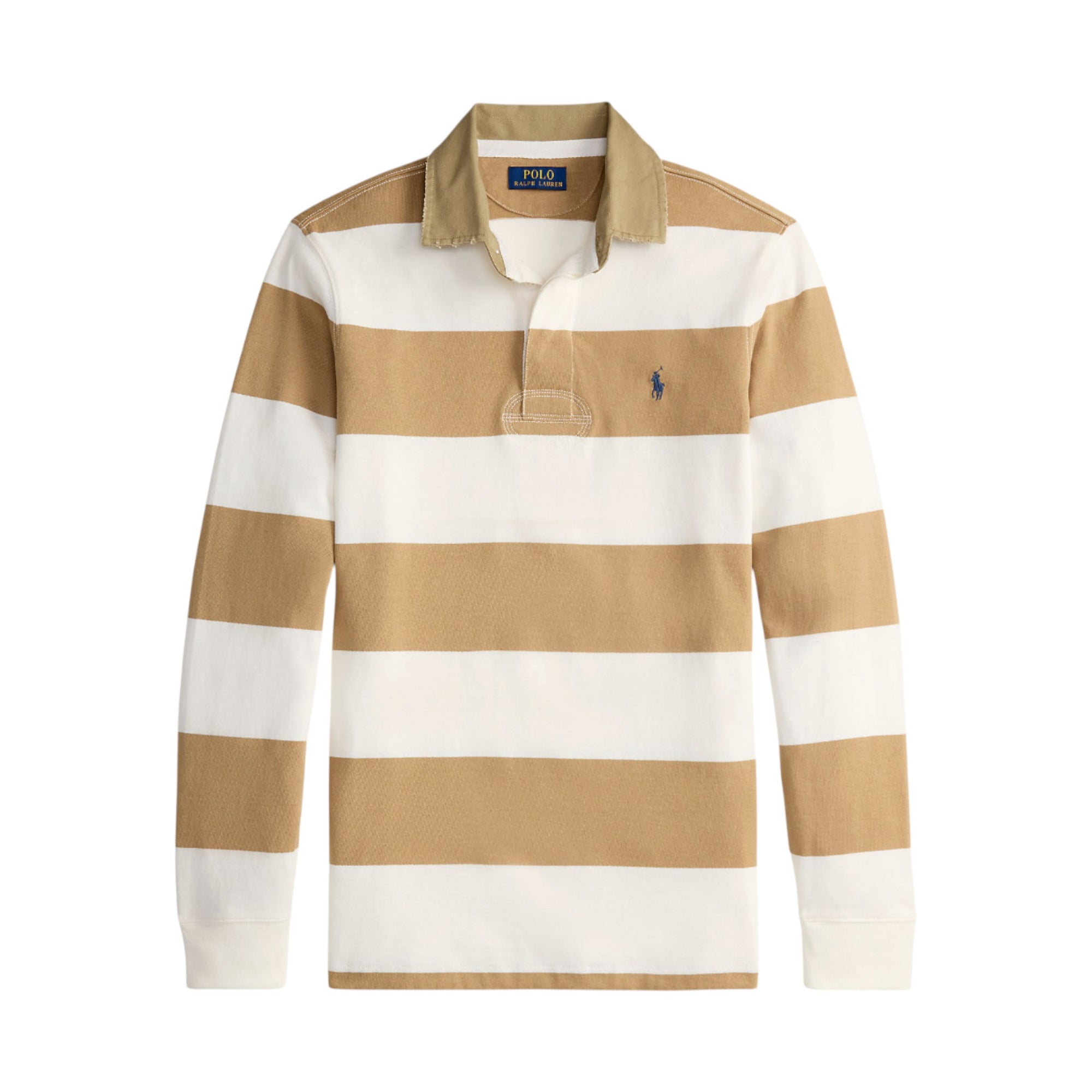 CLASSIC FIT KHAKI-COLLAR RUGBY SHIRT - CAFE TAN/TROPHY CREAM