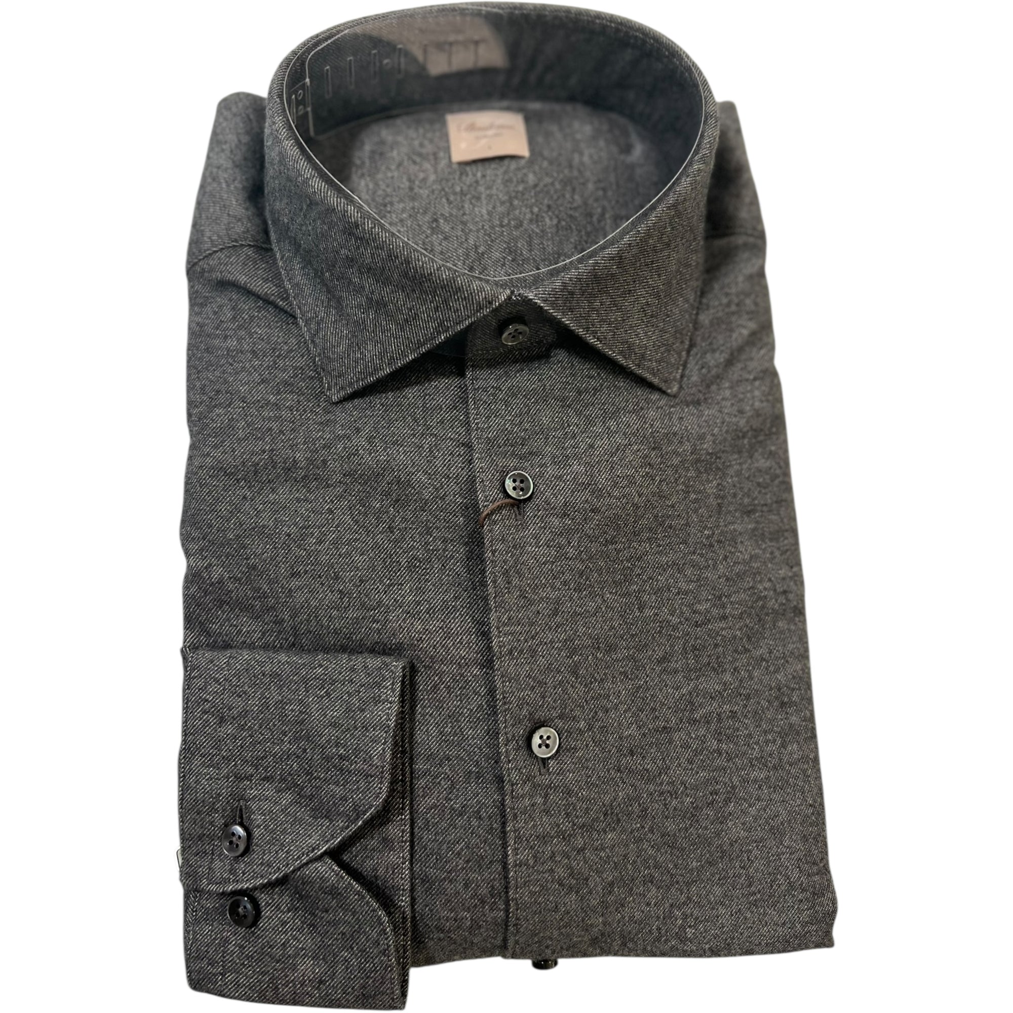 En koksgrå herreskjorte i flannel, som udstråler kvalitet og raffineret minimalisme – uundværlig i enhver moderne garderobe.