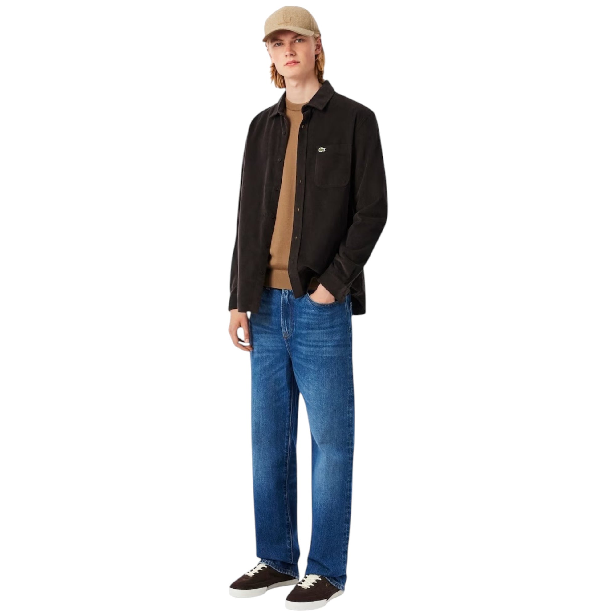 Den ensfarvede, broderede krokodille på brystet og de ribstrikkede kanter ved hals, talje og manchetter understreger Lacostes ikoniske sans for detalje og diskret luksus.