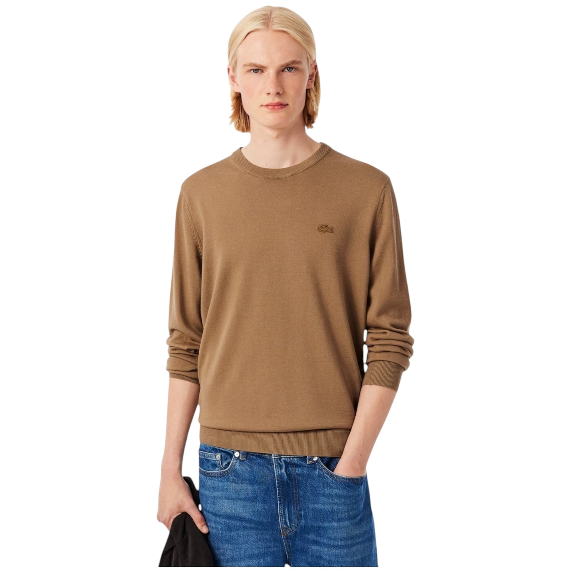 Lacoste Merino Wool Crew Neck Sweater – Brun