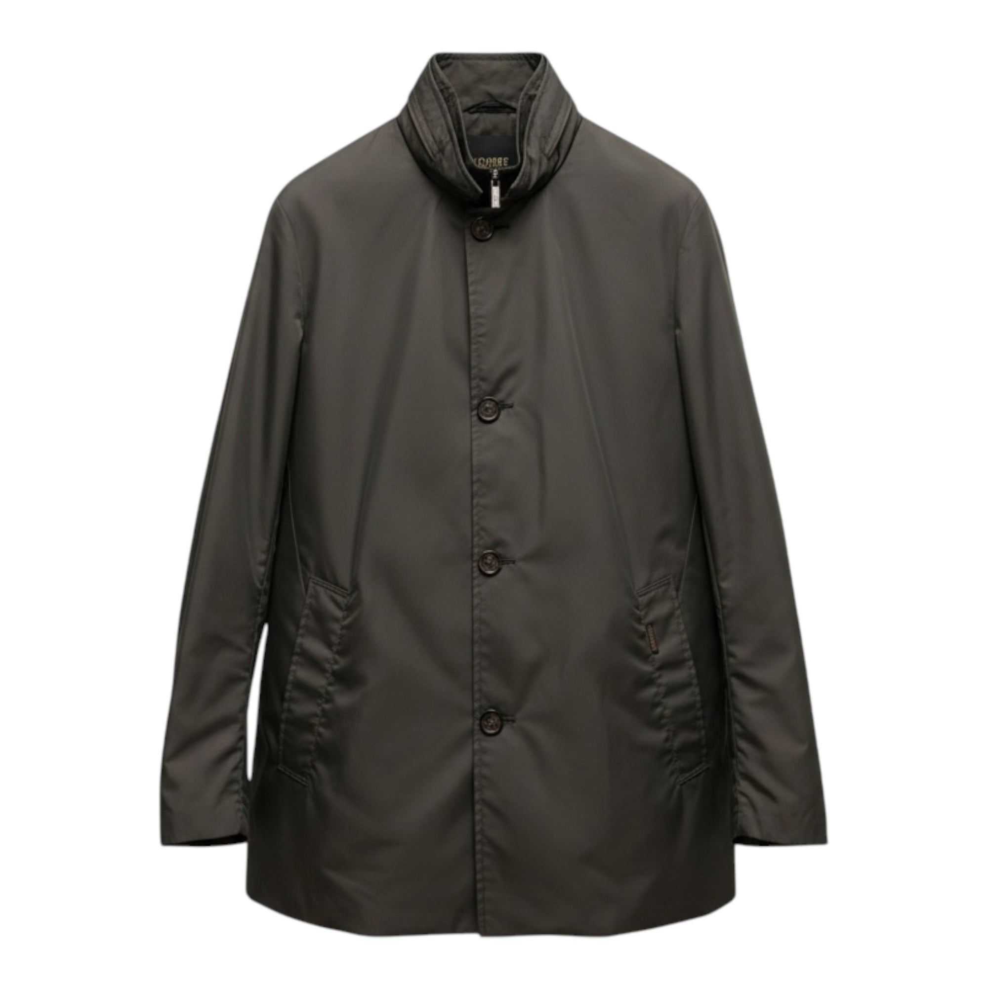 Made of shape memory technical fabric with a light resin coating that gives the garment modest water resistance. The special treatment gives the fabric a subtle sheen, especially accentuated in darker tones.