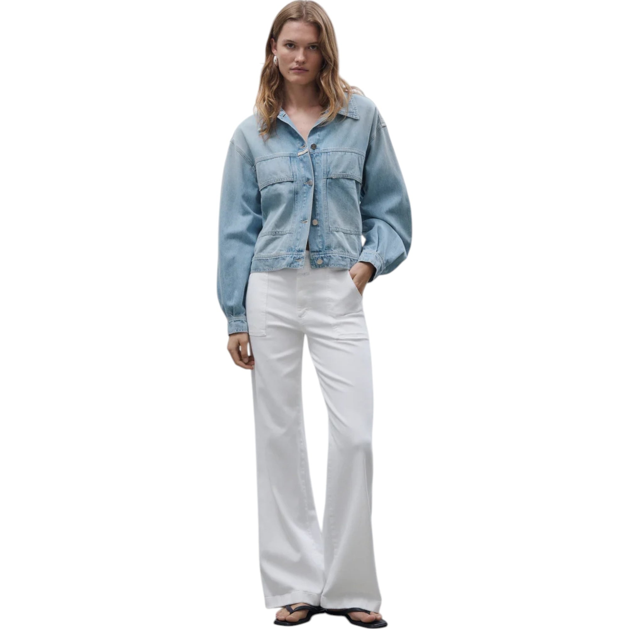 Aria modellen er slim fit og afsluttes med flared ben, samt højtaljet. Lavet af let, ecru-hvid komfortdenim (10 oz.) fra det traditionelle italienske væveri Candiani: Style Aria i en slim fit med høj talje og udstrakte ben. Med et let strækindhold for mere komfort. 100% lavet i Italien.