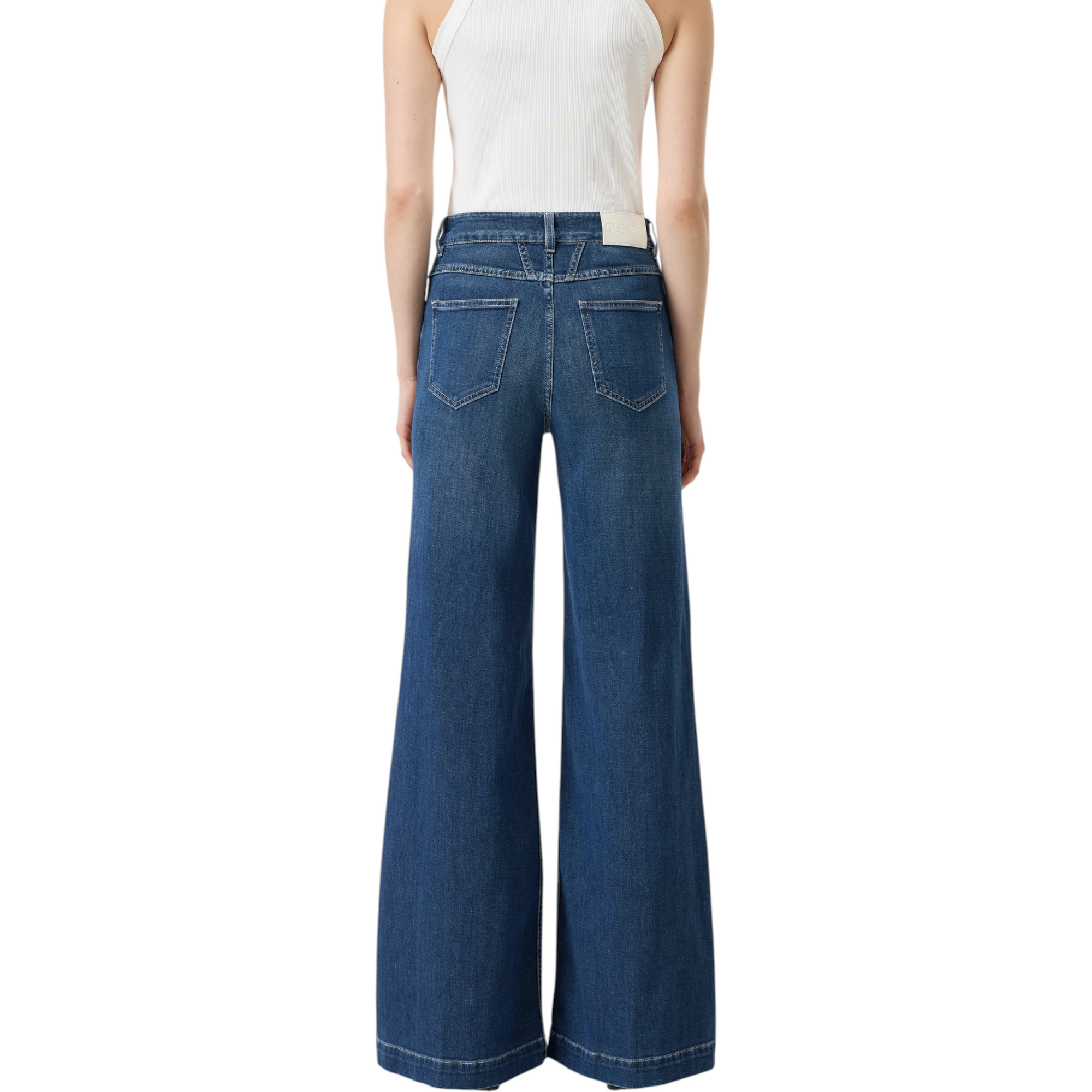 Jeans med høj talje og afslappet benform i let Cashmere Touch stretch-denim (10 oz.) fra Candiani. Blødt left-hand-væv for ekstra komfort og indigoblå vintage-vask med kontrastsømme. 100 % fremstillet i Italien.Materiale: 92% regenerativ bomuld, 6% elasthomultiester, 2% elastan