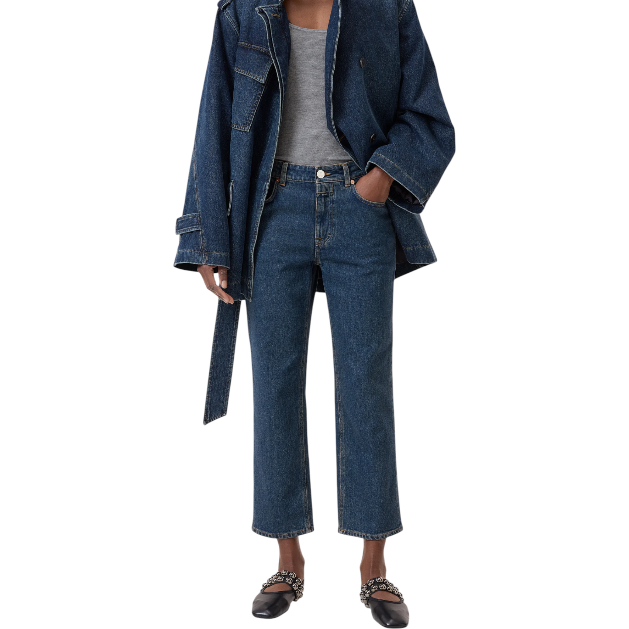 Milo-jeans i blød, elastisk denim med lige pasform, medium talje og cropped benlængde. Klassisk denim-look med en let washed indigo-tone. Indeholder 20% genanvendt bomuld og er fremstillet med bæredygtige farvemetoder.-