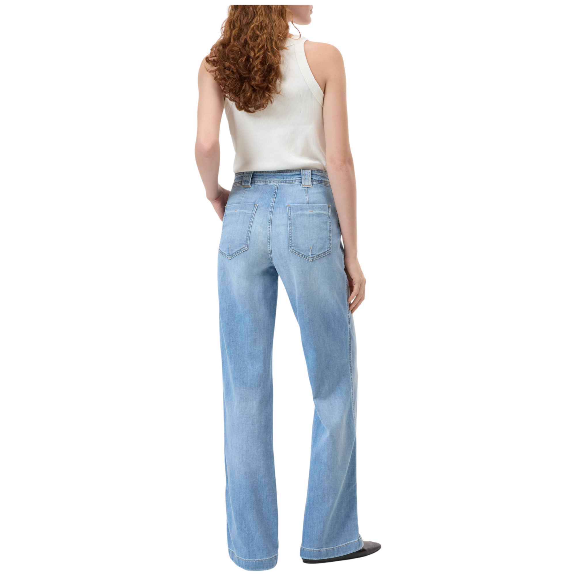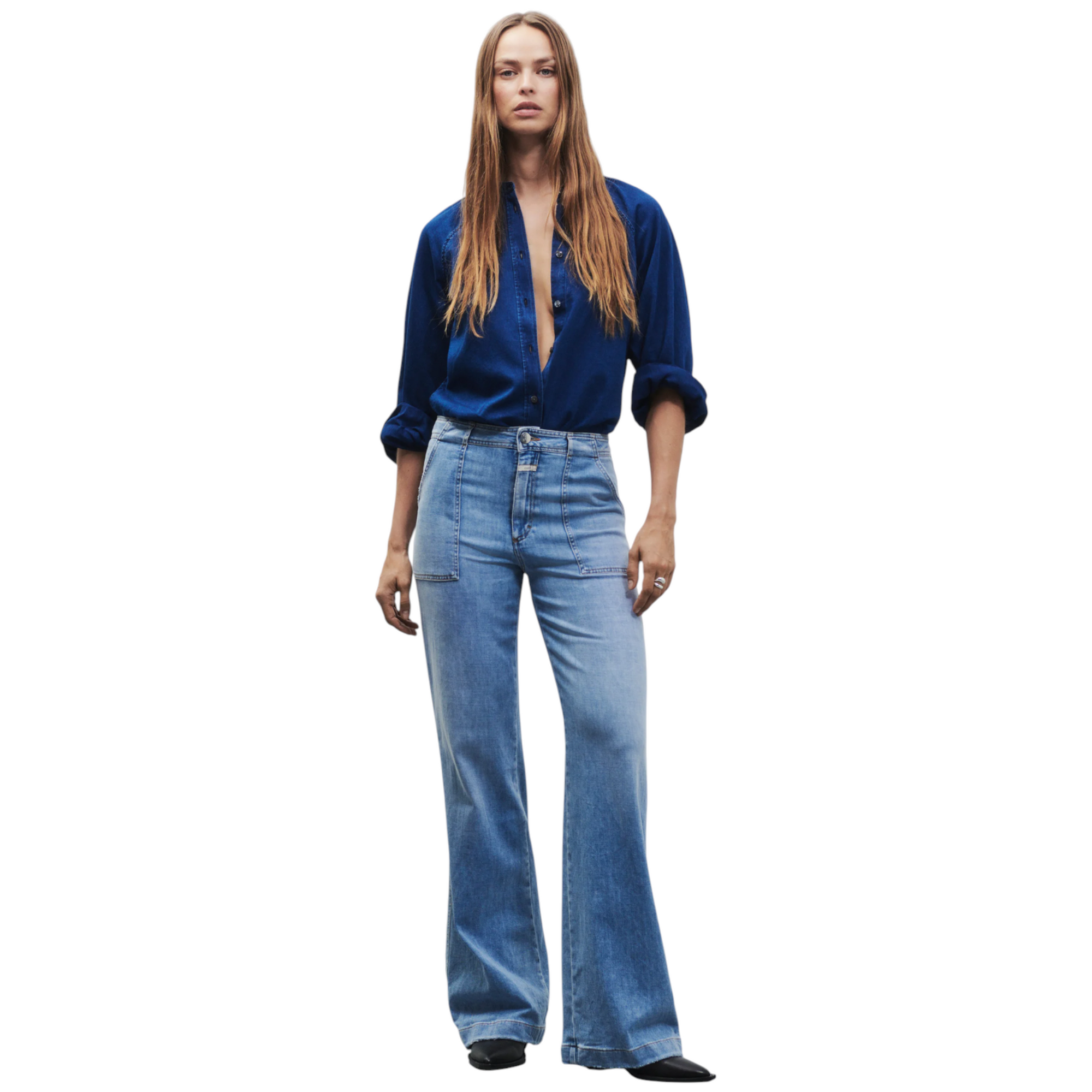 Aria Jeans er fremstillet i Italien af eksklusiv Candiani stretch-denim i regenerativ bomuld. Modellen har høj talje, flare ben, lange ben og påsyede forlommer, som giver et moderne og komfortabelt fit uden at gå på kompromis med det klassiske denim-look.