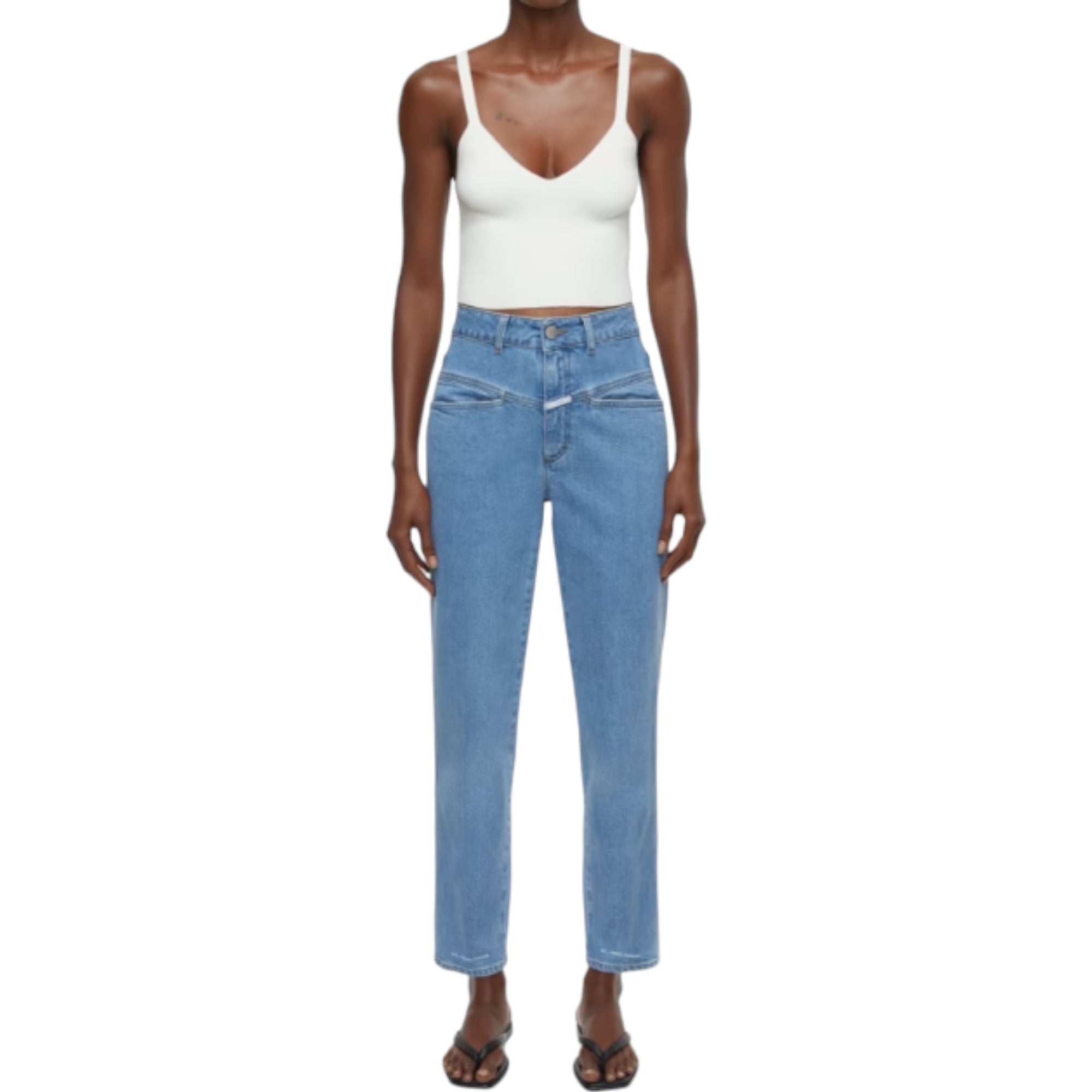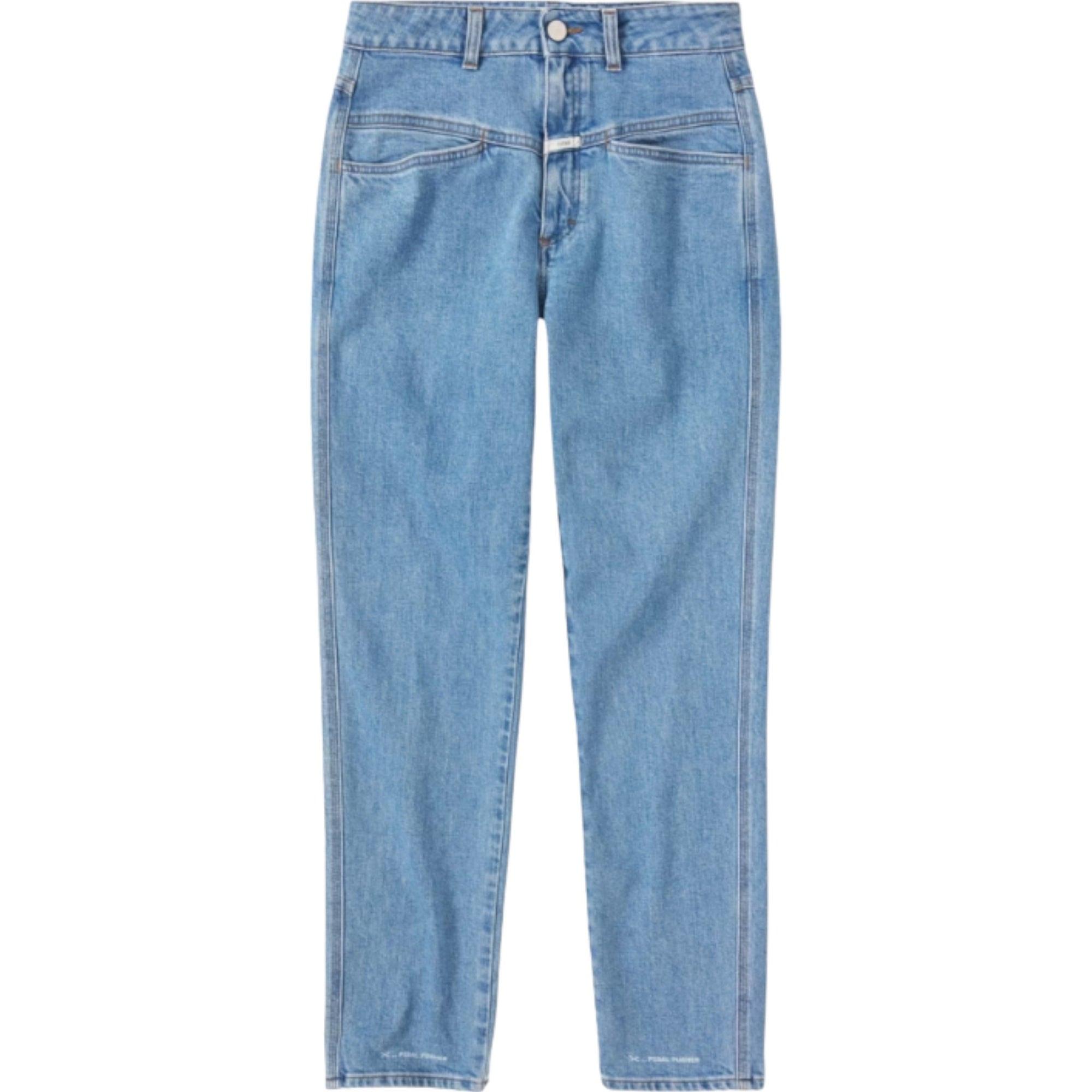 Closed jeans with buttoned and concealed zipper closure, logo at the back, front logo, appliquéd logo, patch detail, belt loops, side pockets, back patch pocket, ankle length.