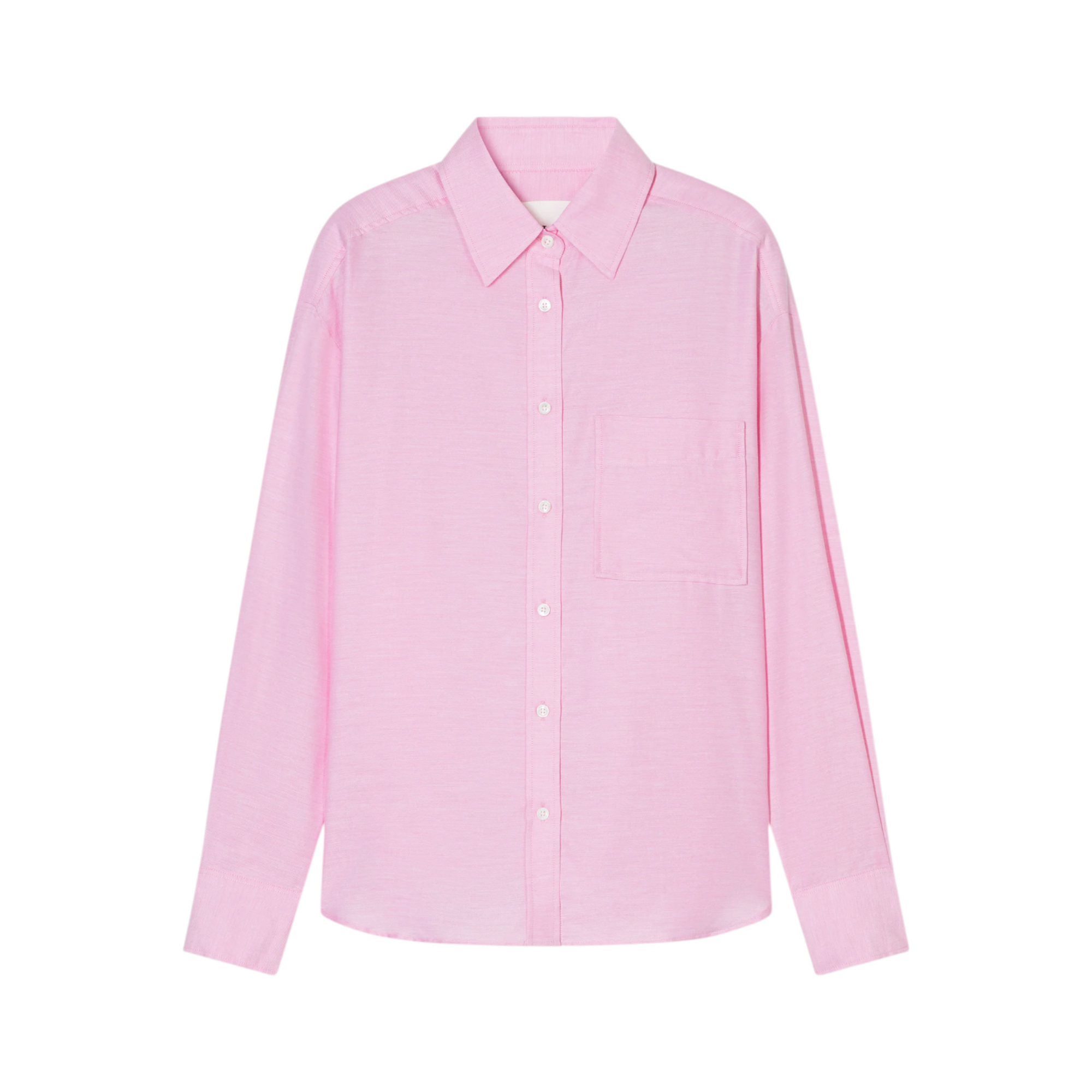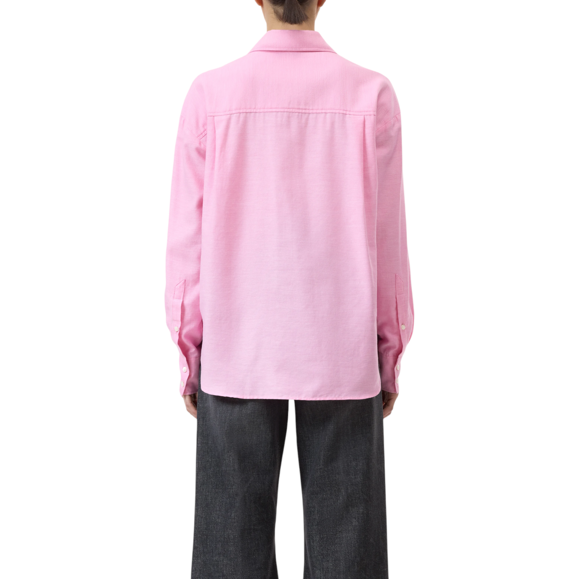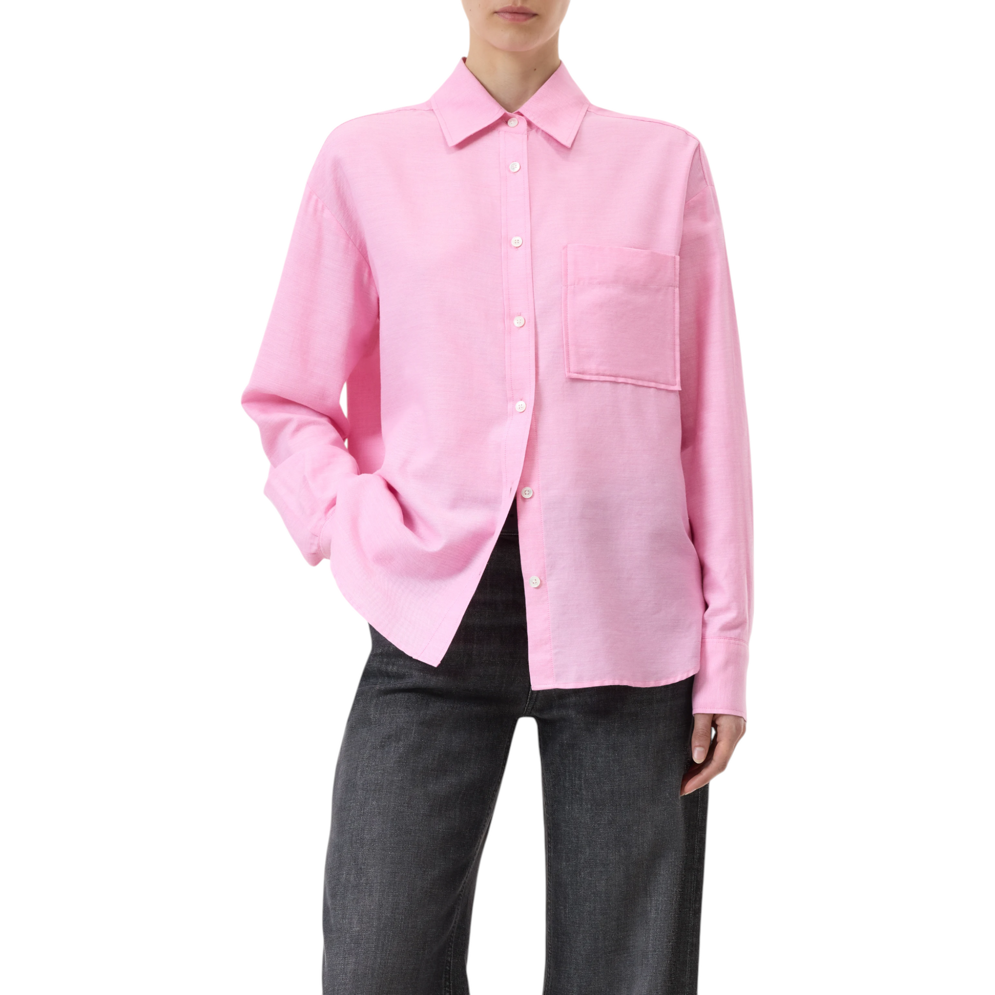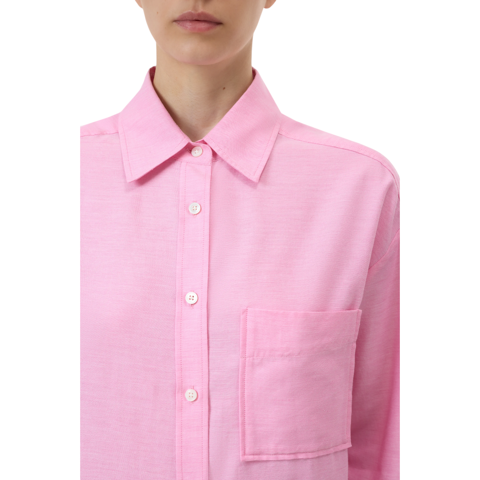 Eksklusiv oversized skjorte i en blød bomuld-kashmir blanding med let transparent kvalitet. Designet med brystlomme, perlemorsknapper, afrundet kant og karakteristisk diagonal syning. En elegant style med læg i ryggen, fremstillet i Portugal. -