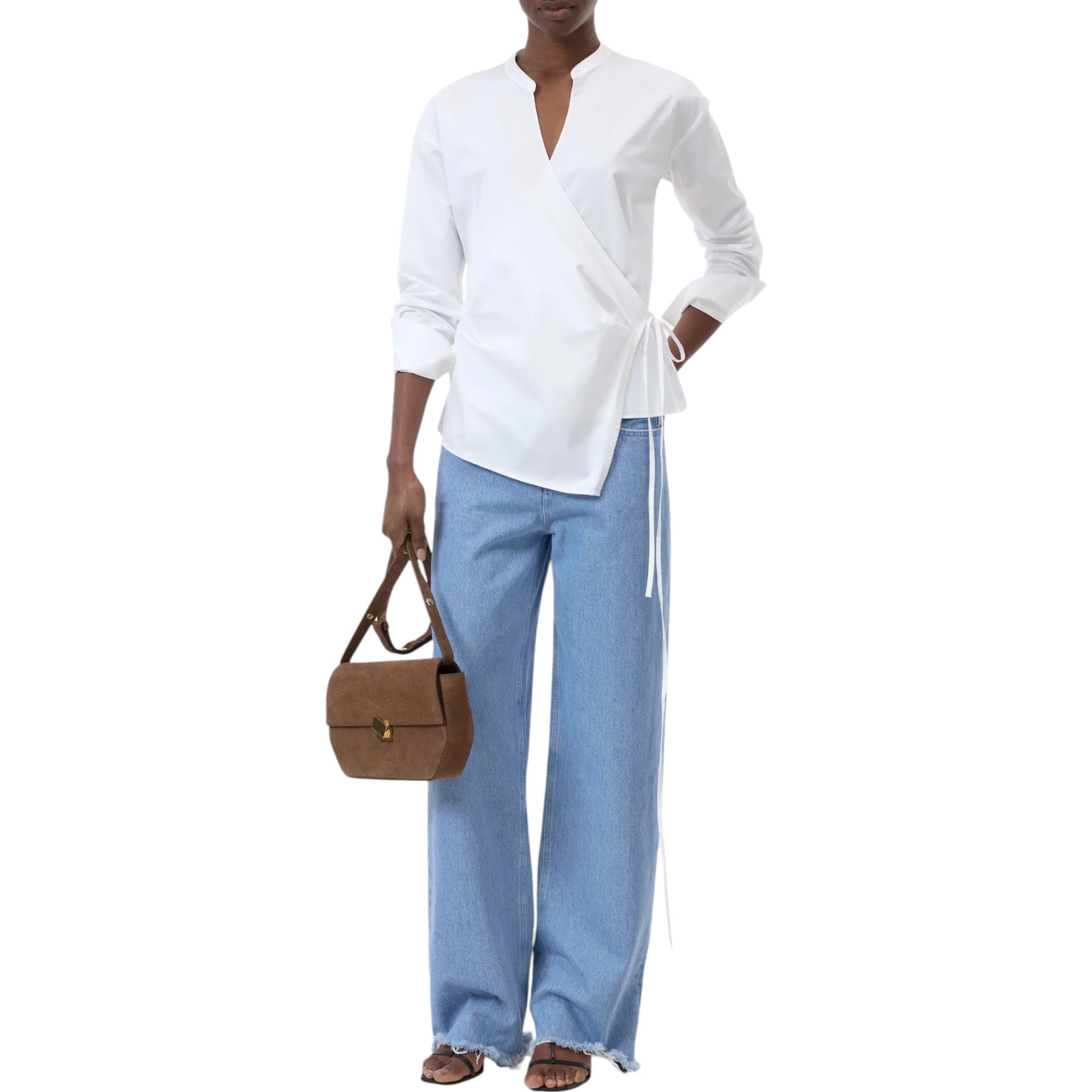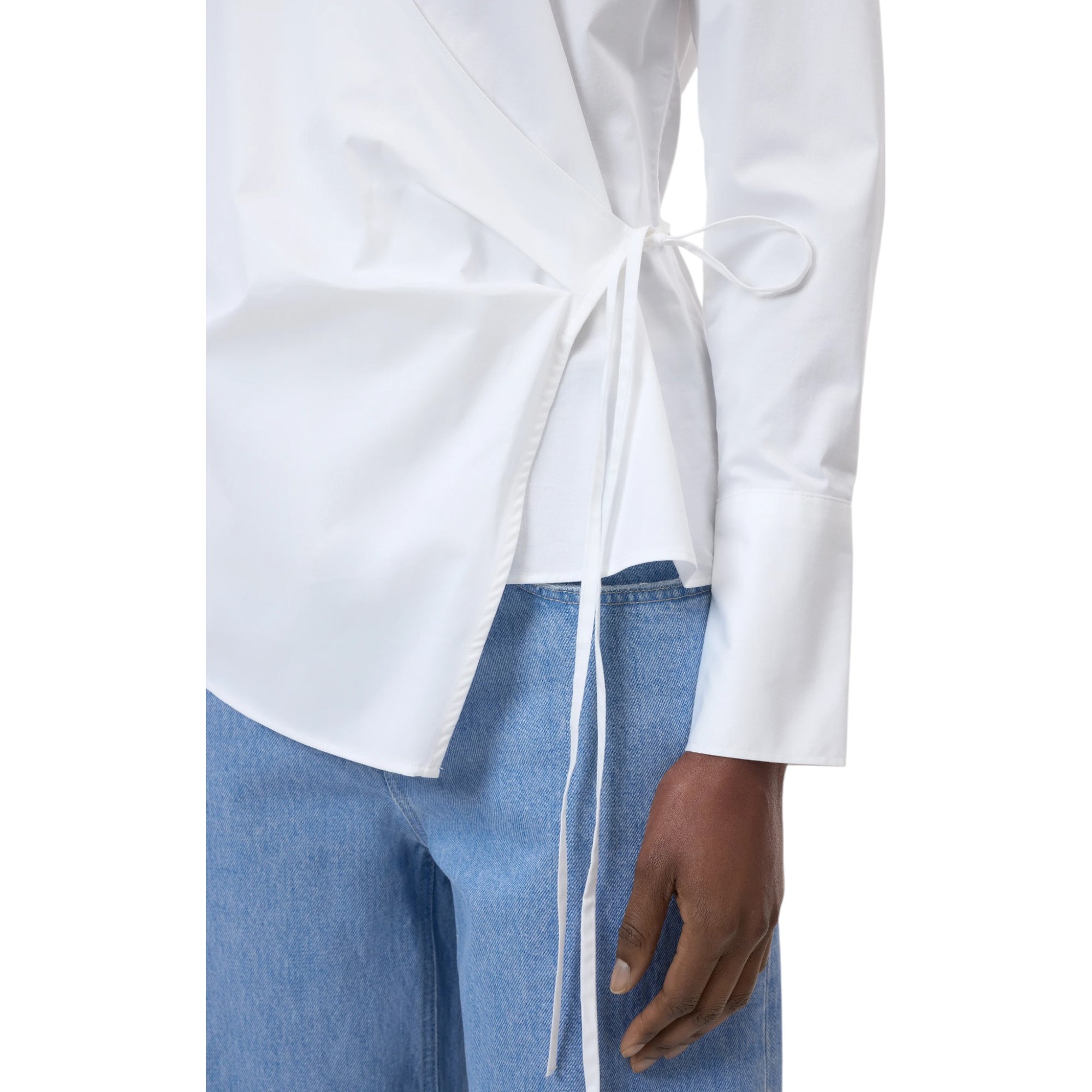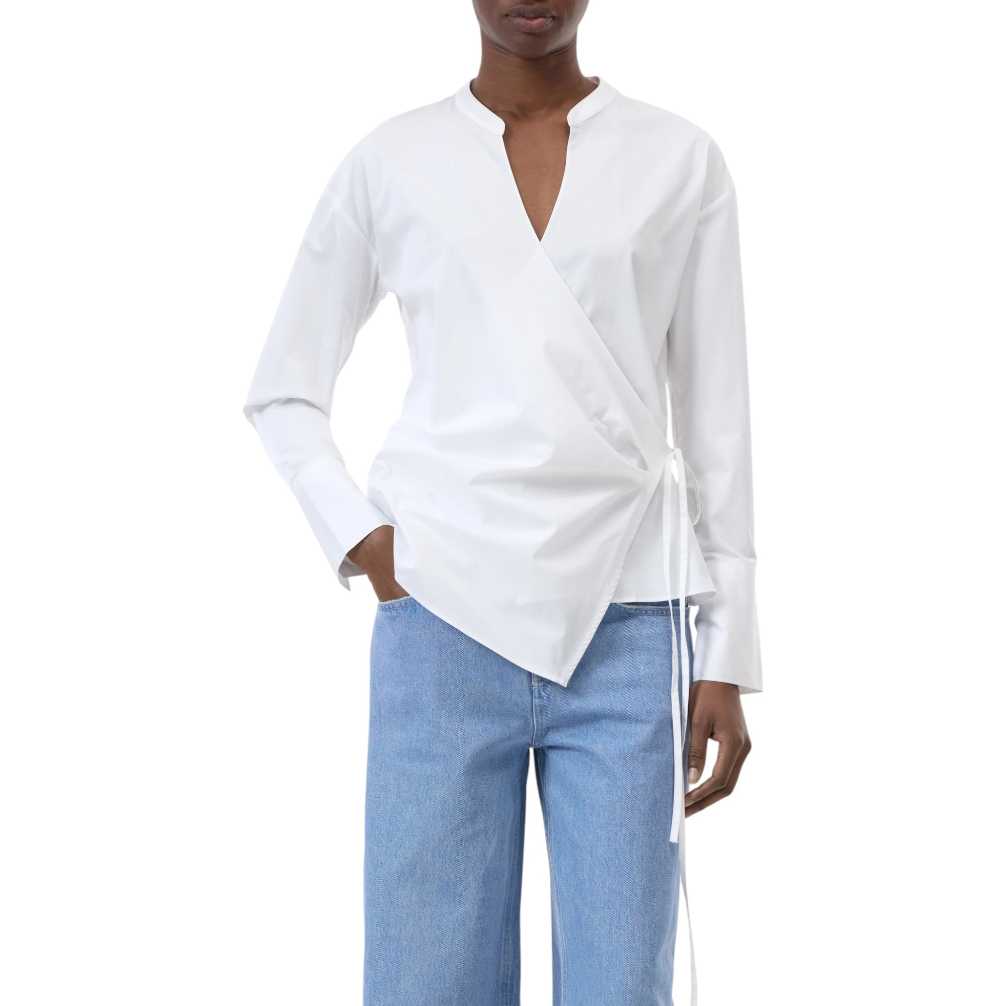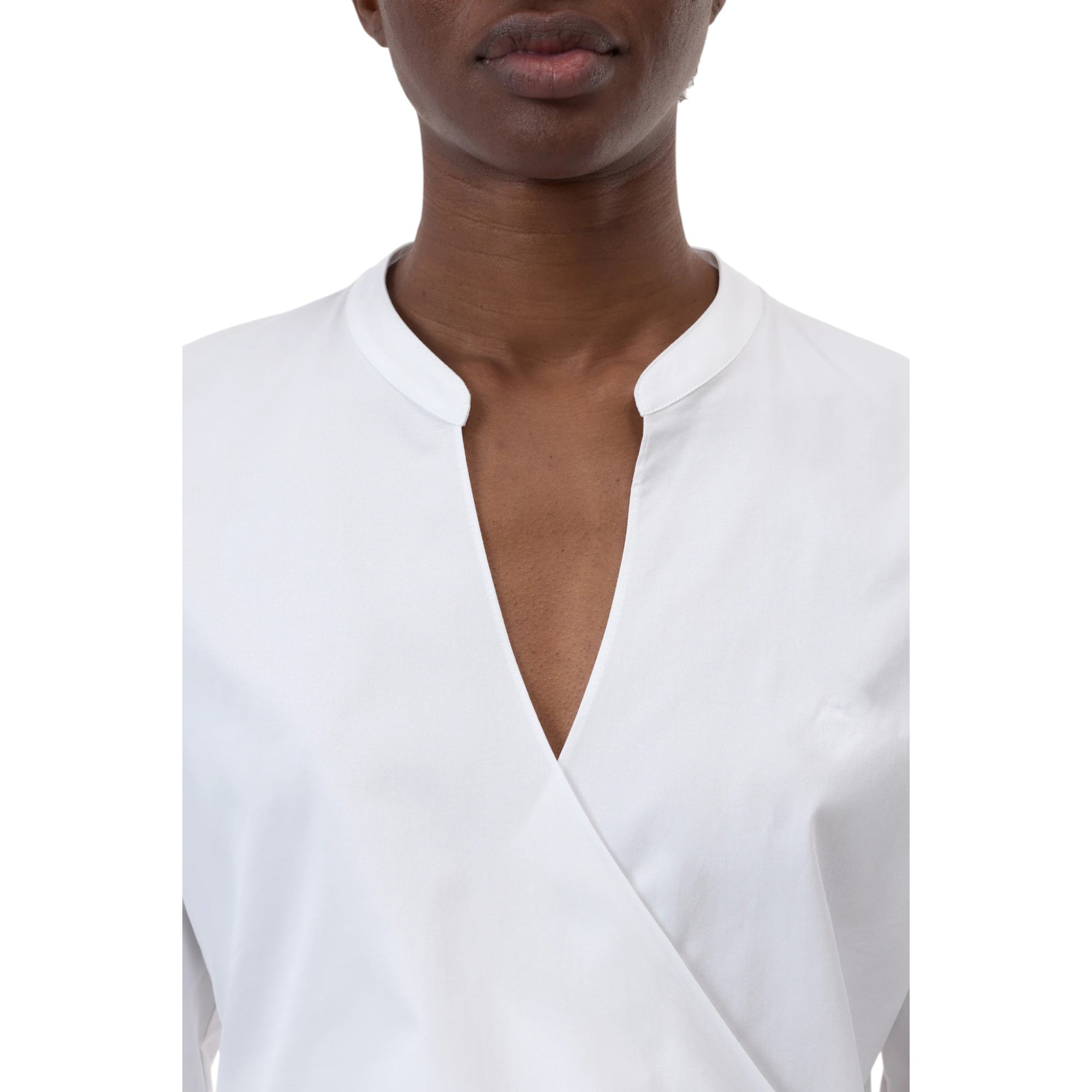 I smuk bomuldspoplin kvalitet med et rent look og papirpræg: slå bluse i normal pasform. Omslagsdetaljen i taljehøjde skaber en naturlig taljelinje. En lille stand-up krave, V-udskæring, brede manchetter og nylonknapper præger stilen yderligere. Fremstillet og samlet i Portugal.